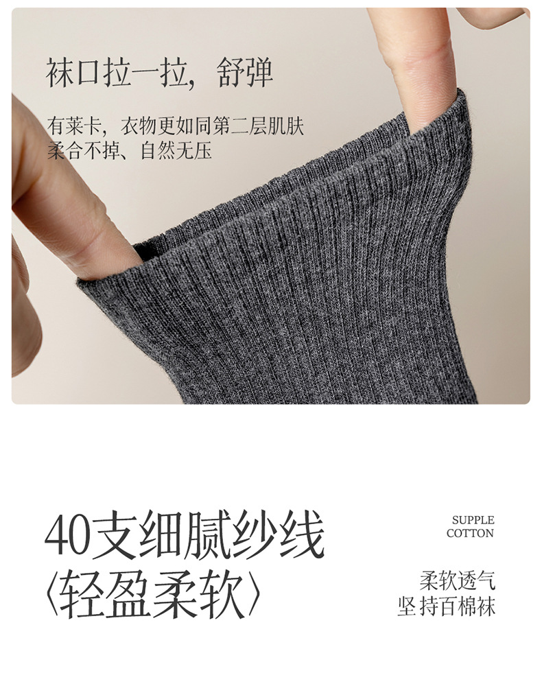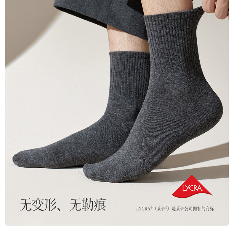 雀说5双装男士100%棉中筒袜新品纯棉防臭吸汗运动AL 商品图3