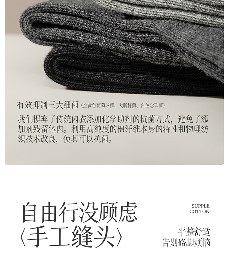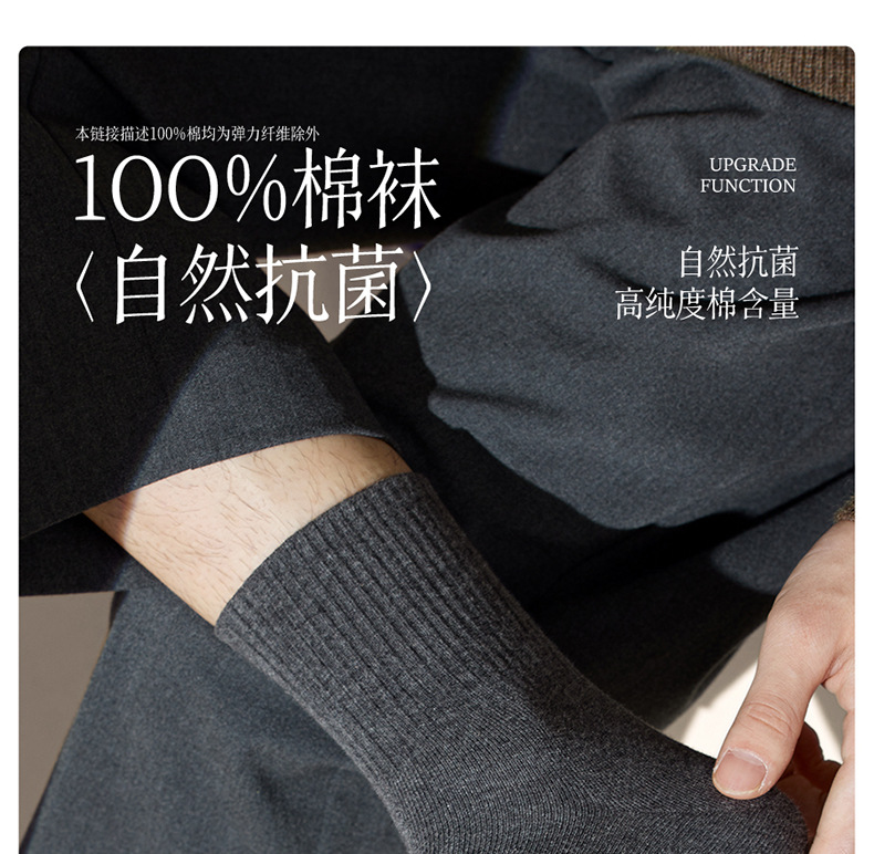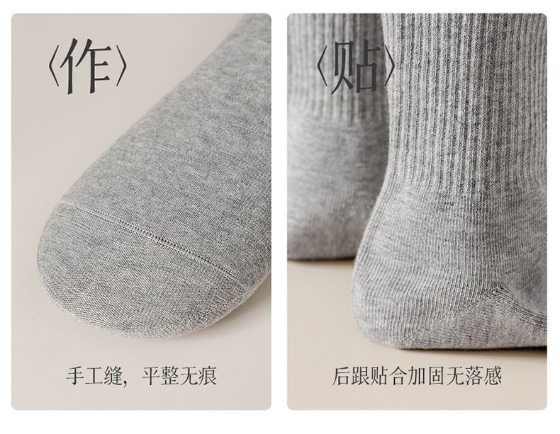 雀说5双装男士100%棉中筒袜新品纯棉防臭吸汗运动AL 商品图4