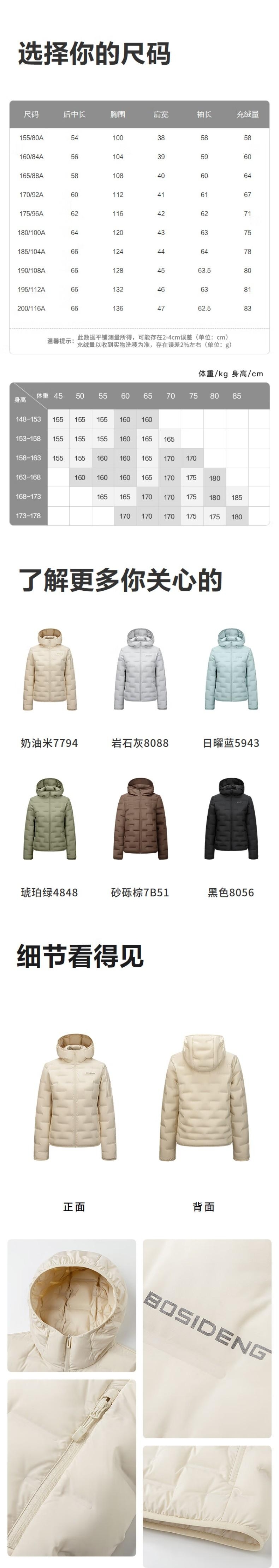 波司登 女短款连帽长袖外套羽绒服 B250131036