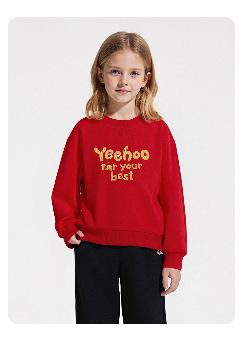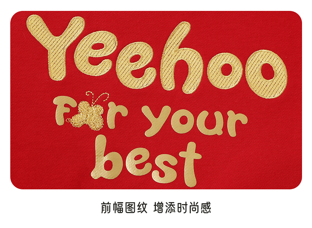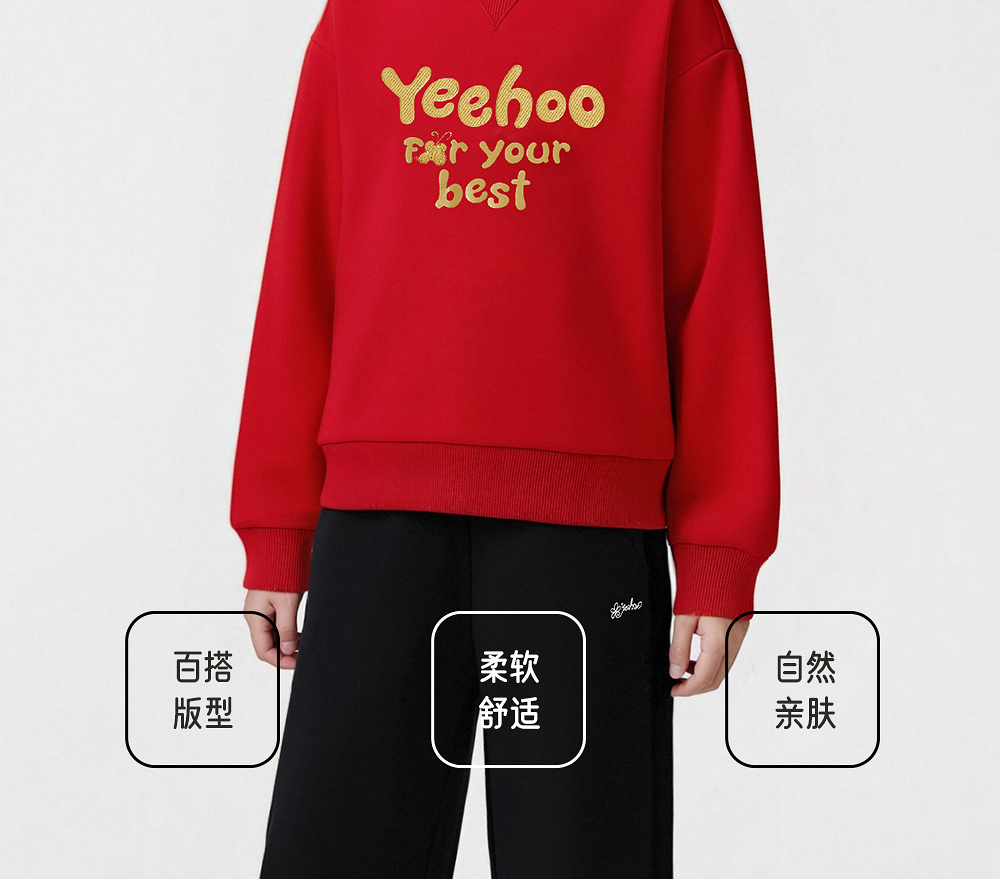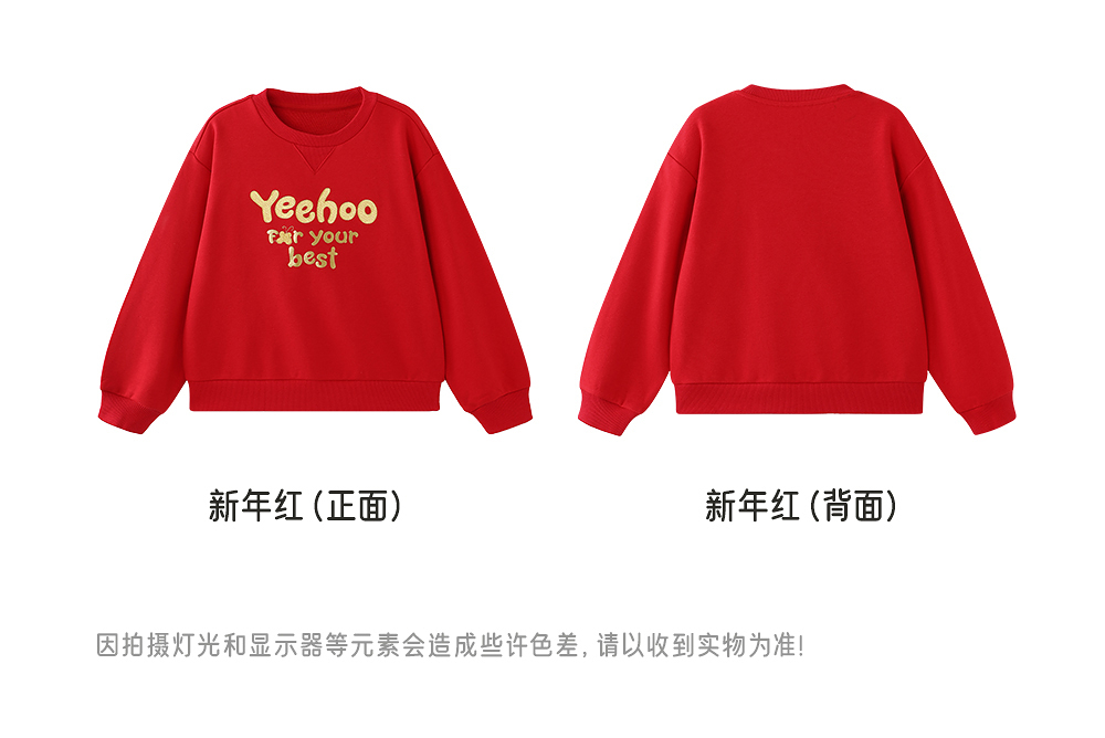 英氏儿童卫衣绒衫秋冬保暖舒适女童圆领卫衣新年喜庆拜年服新款