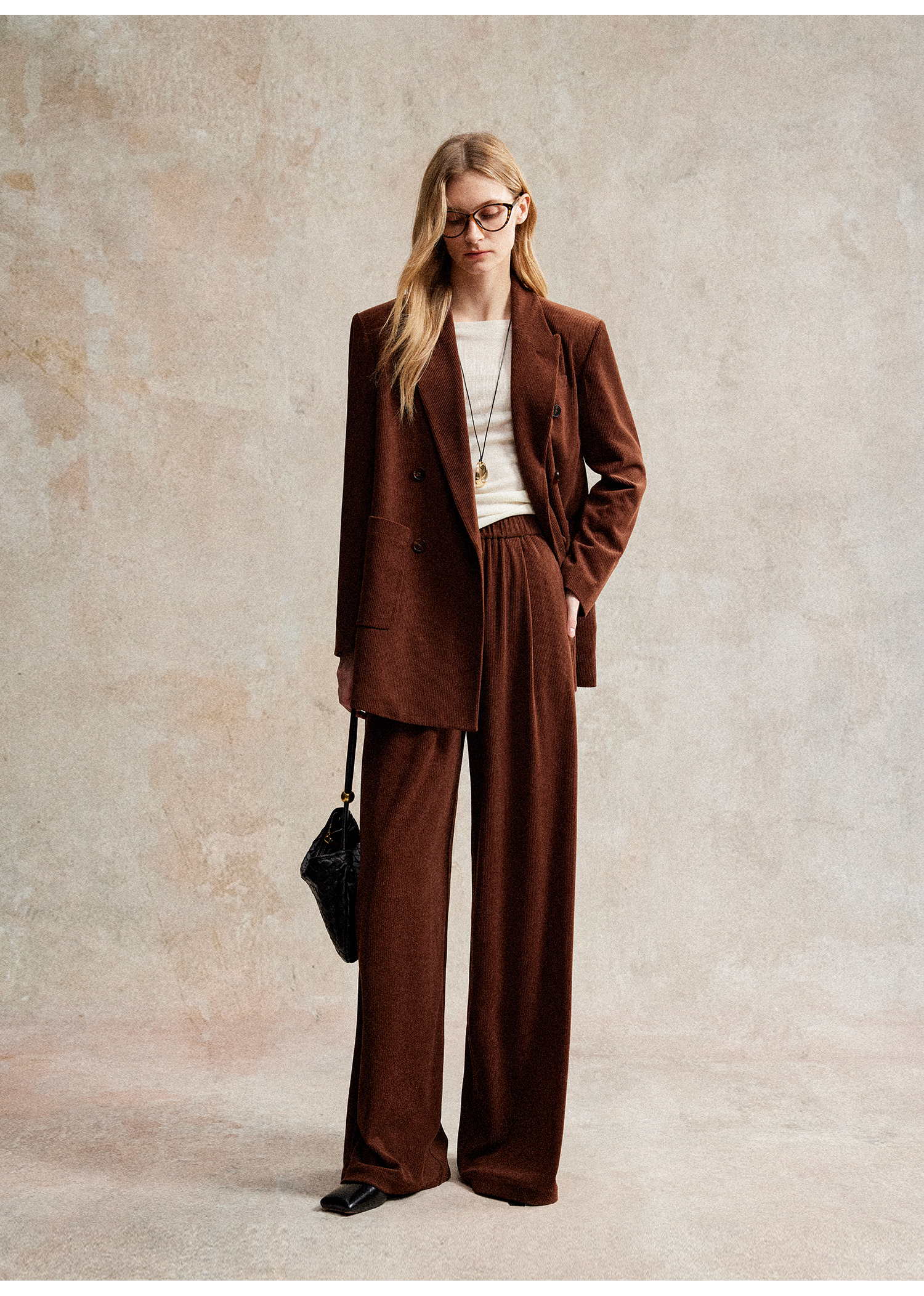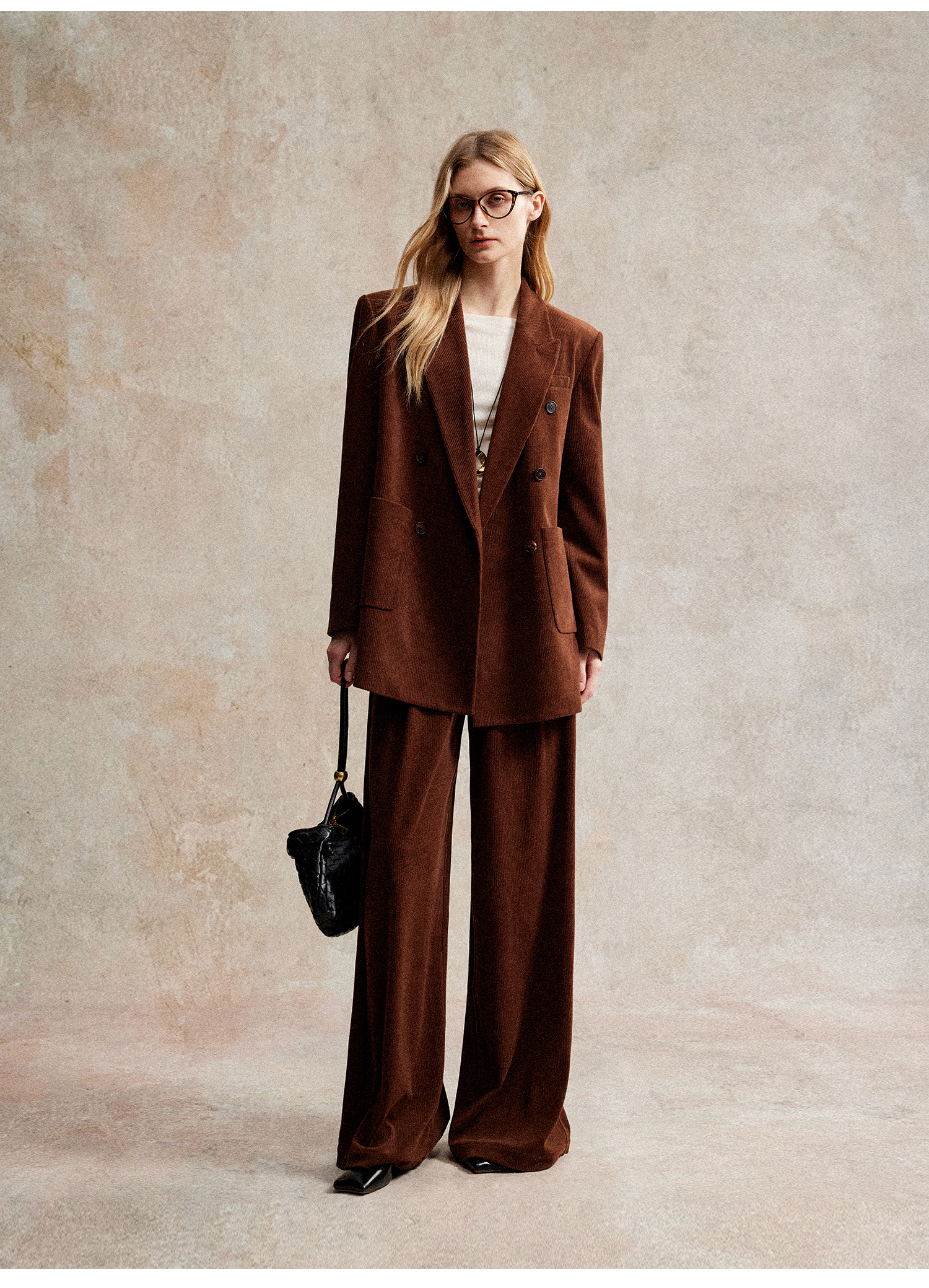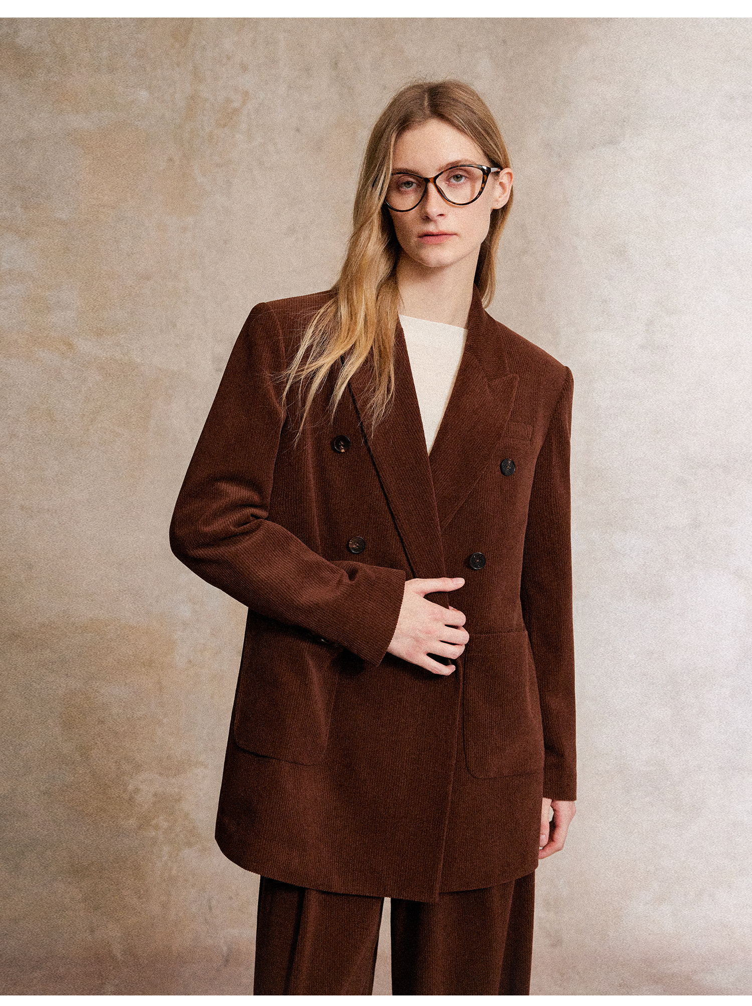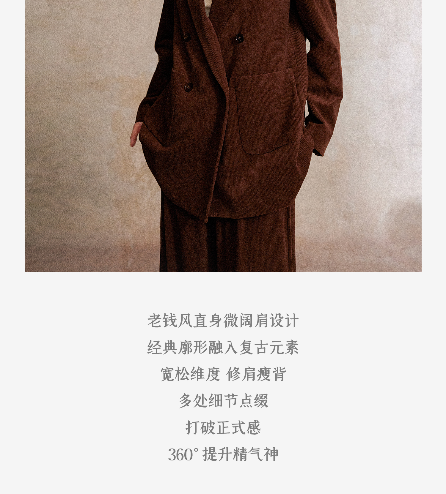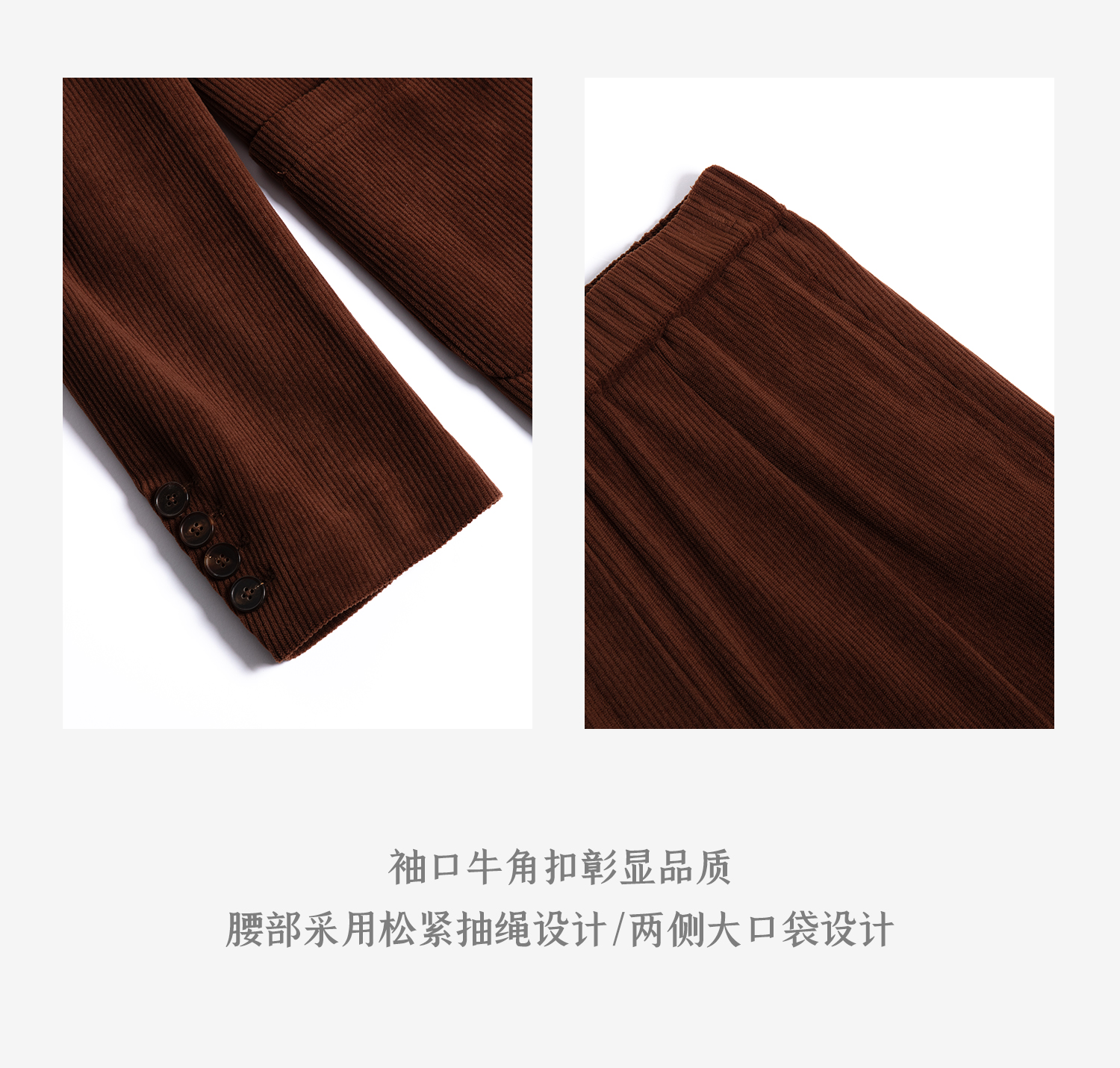 西嘉|得体风职场复古宽肩廓形灯芯绒西装外套+直筒西裤套装女秋冬WT2503029