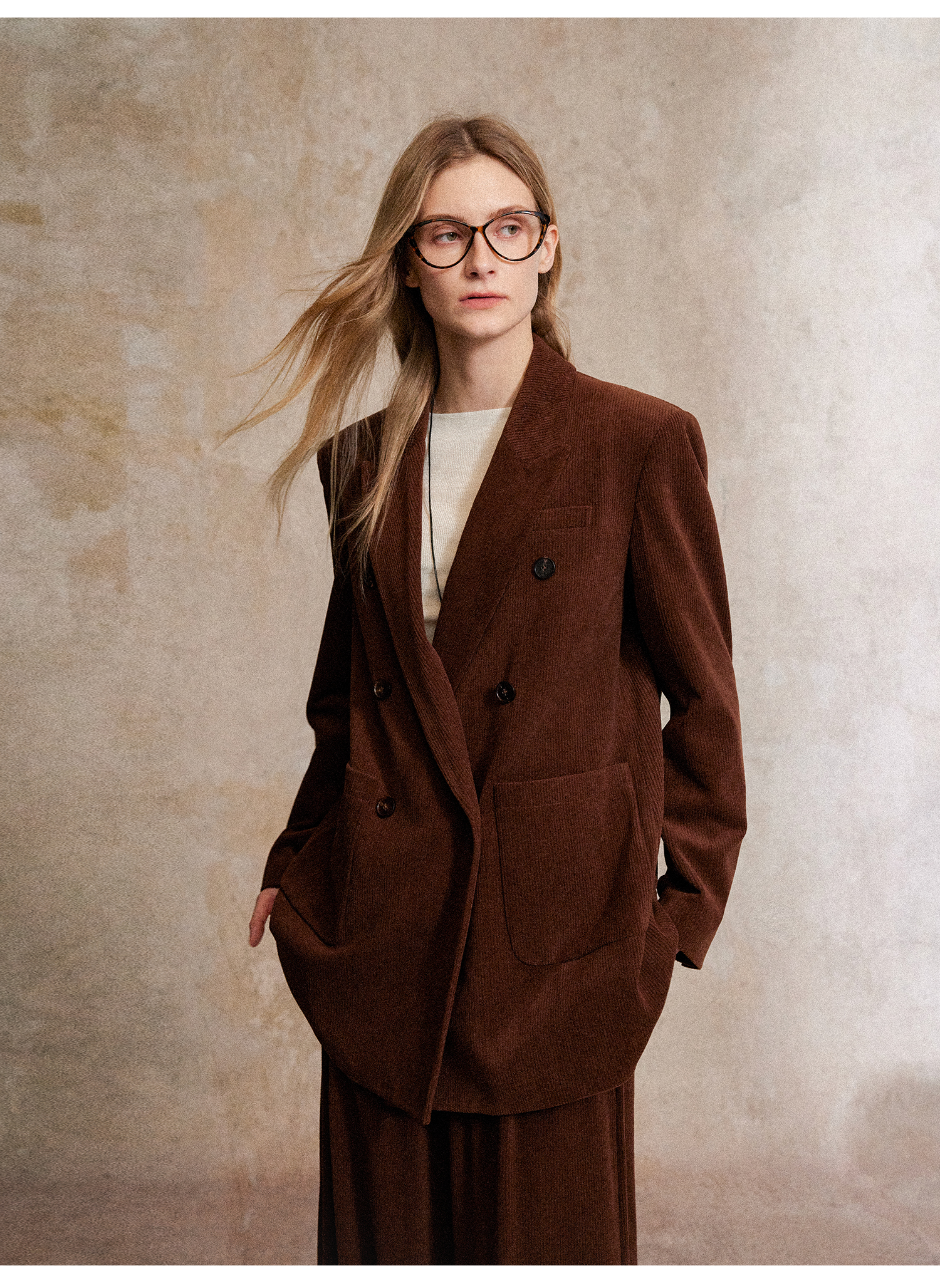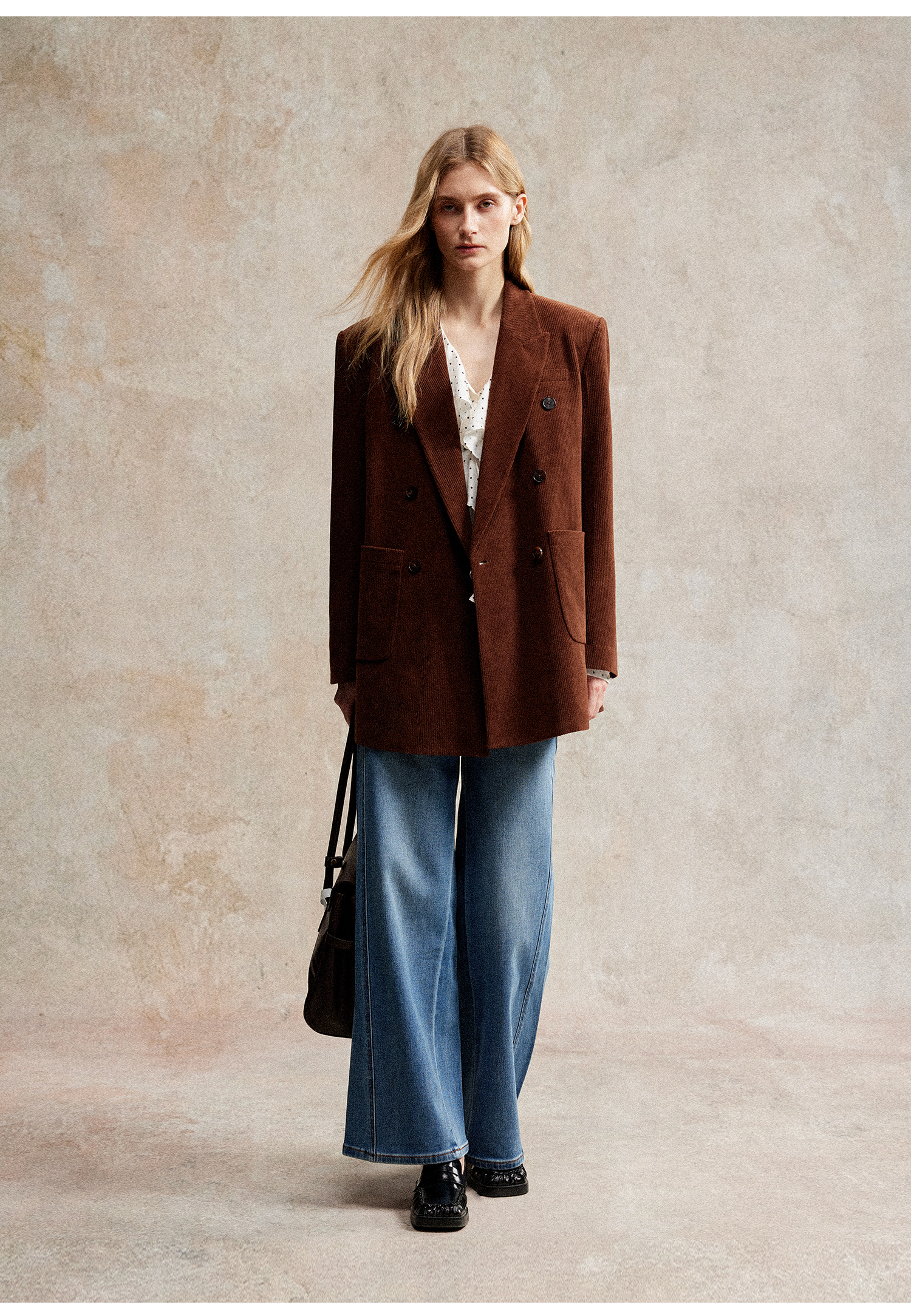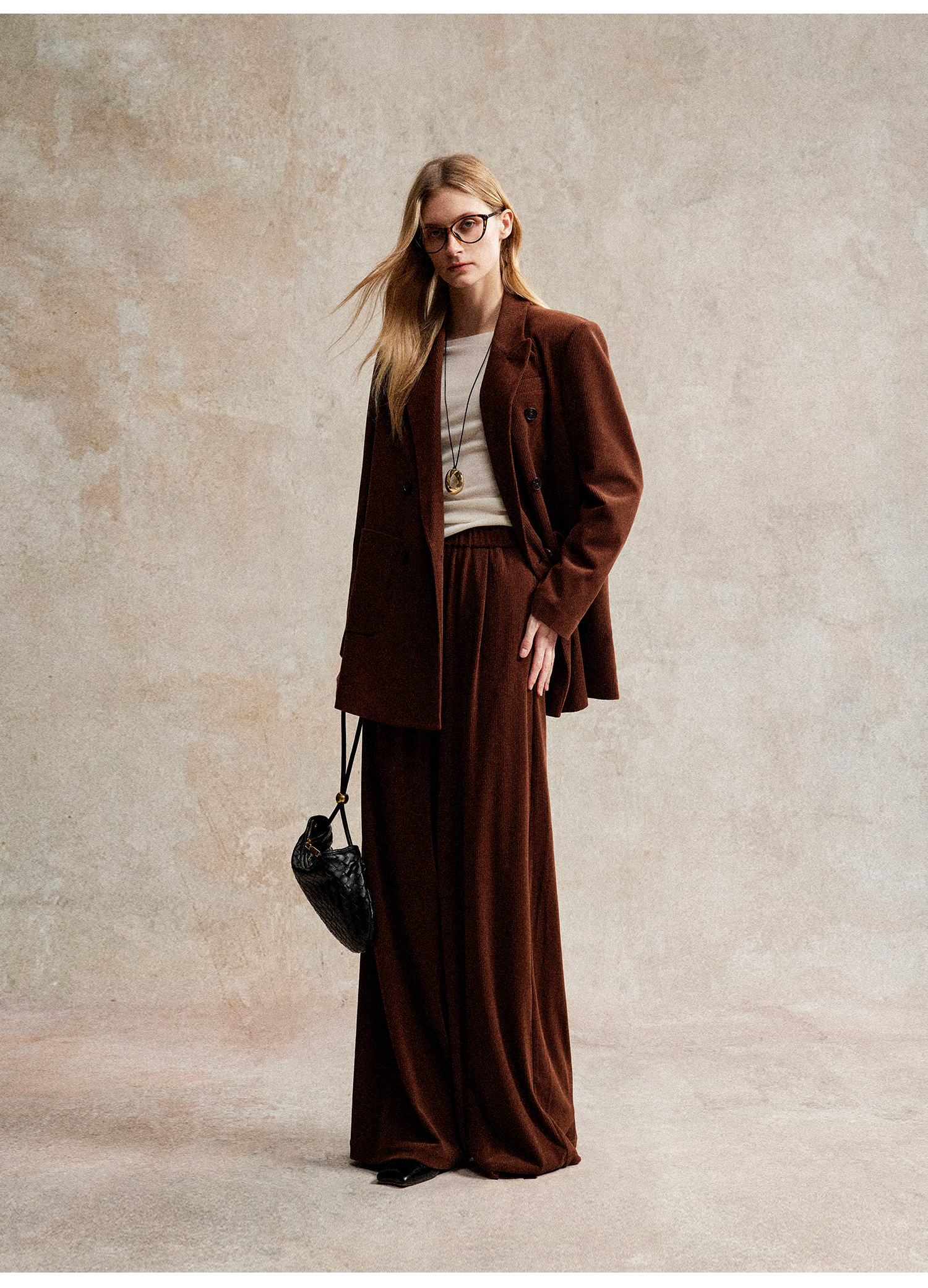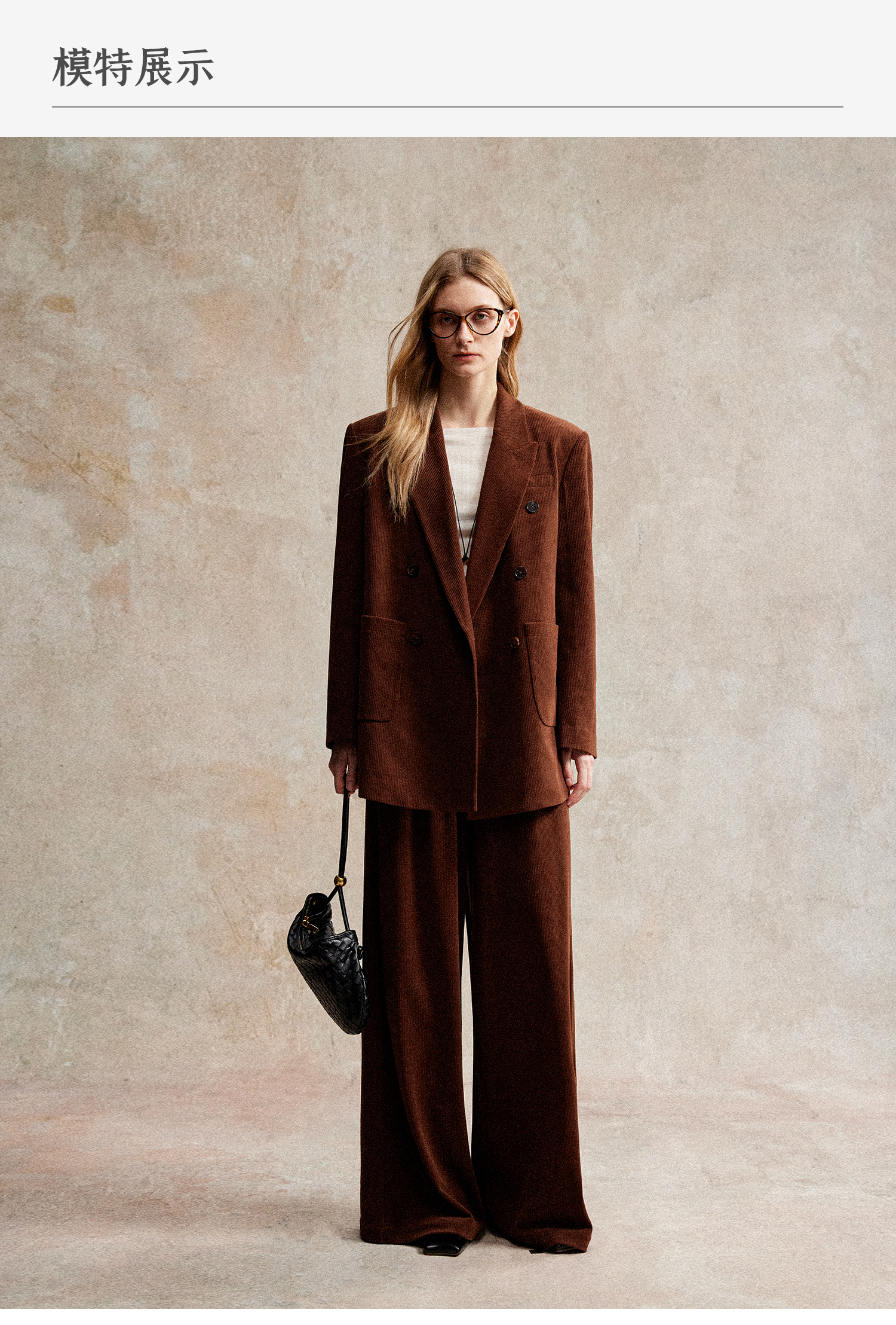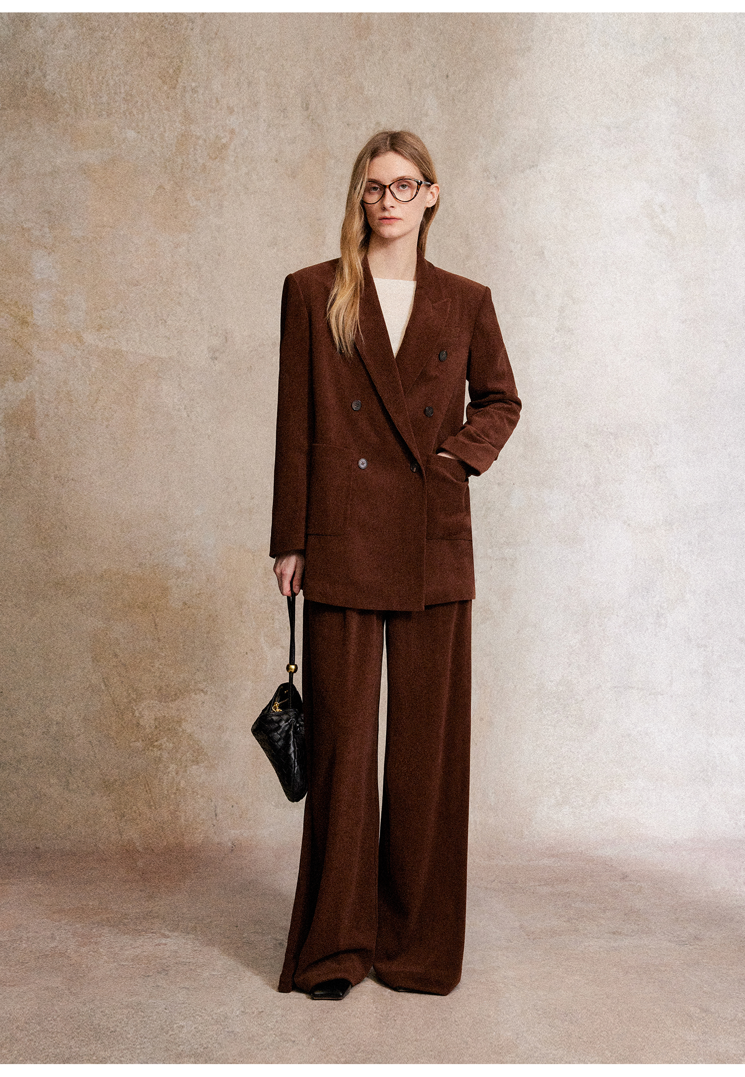 西嘉|得体风职场复古宽肩廓形灯芯绒西装外套+直筒西裤套装女秋冬WT2503029