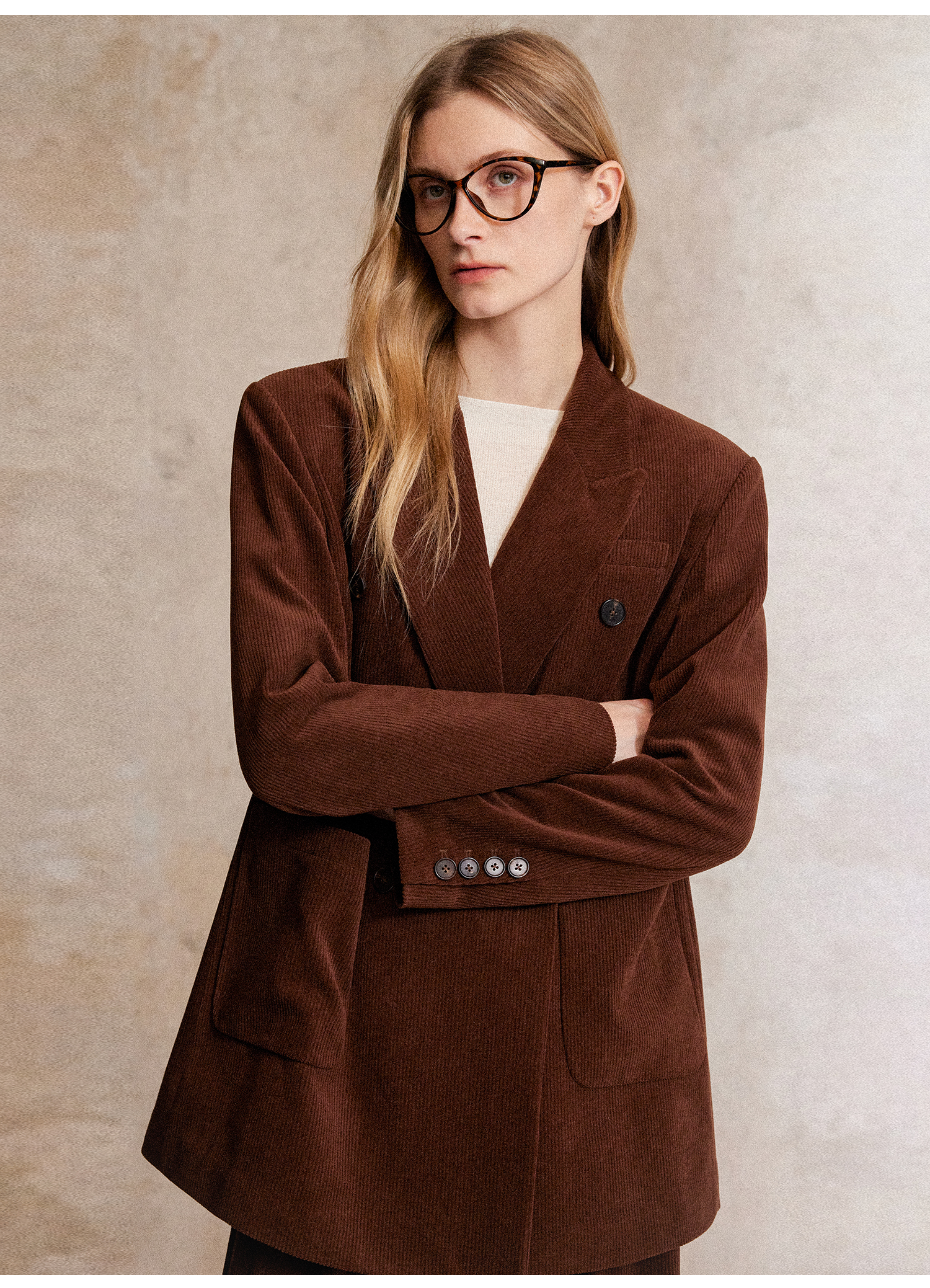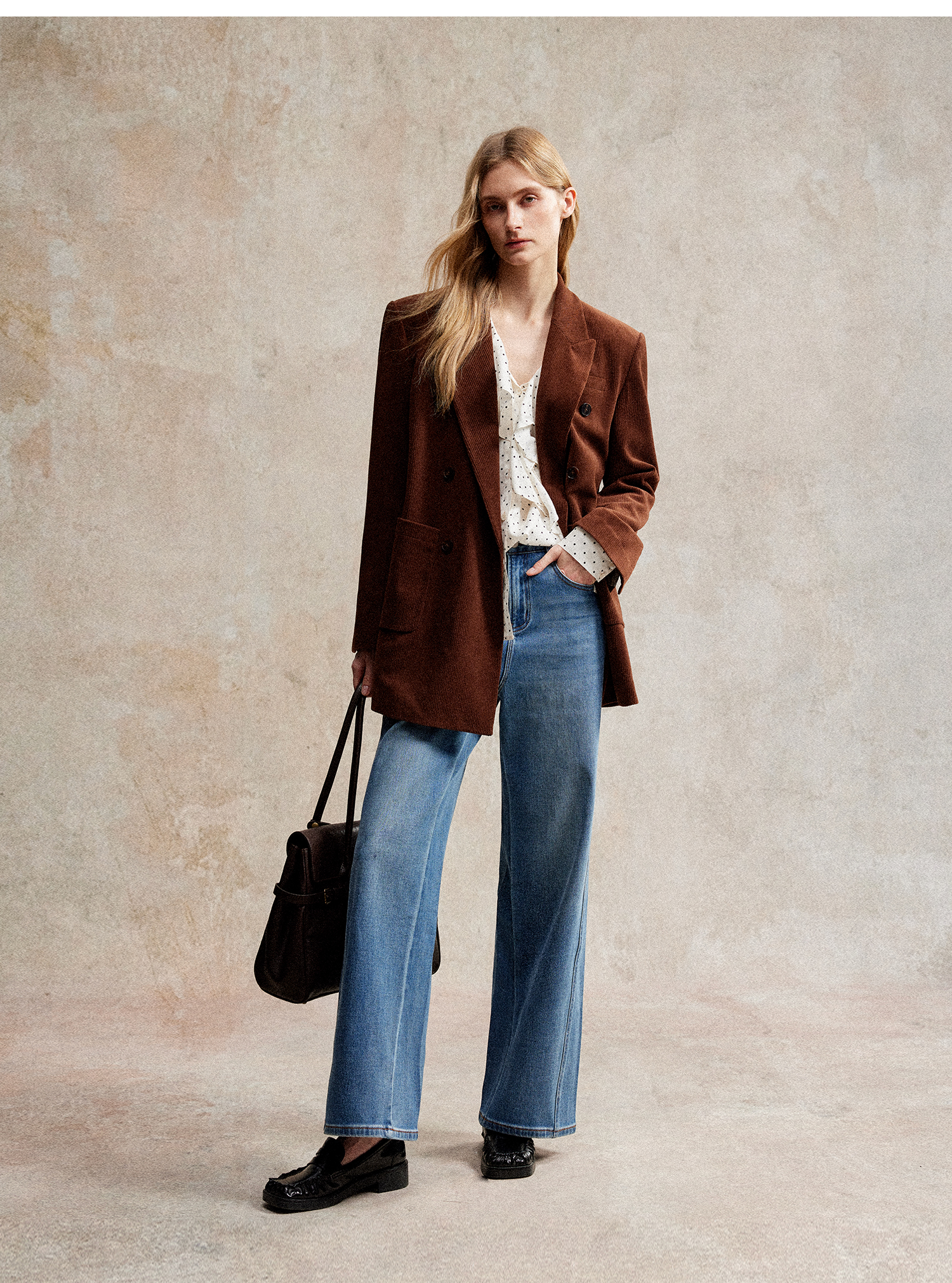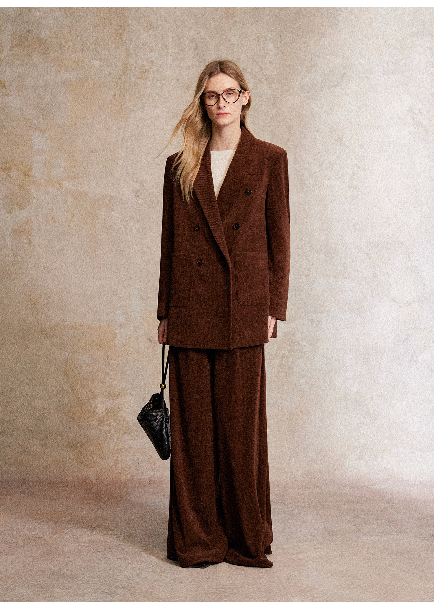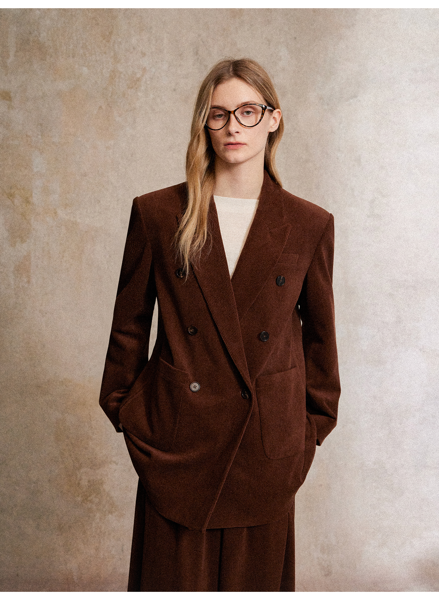 西嘉|得体风职场复古宽肩廓形灯芯绒西装外套+直筒西裤套装女秋冬WT2503029