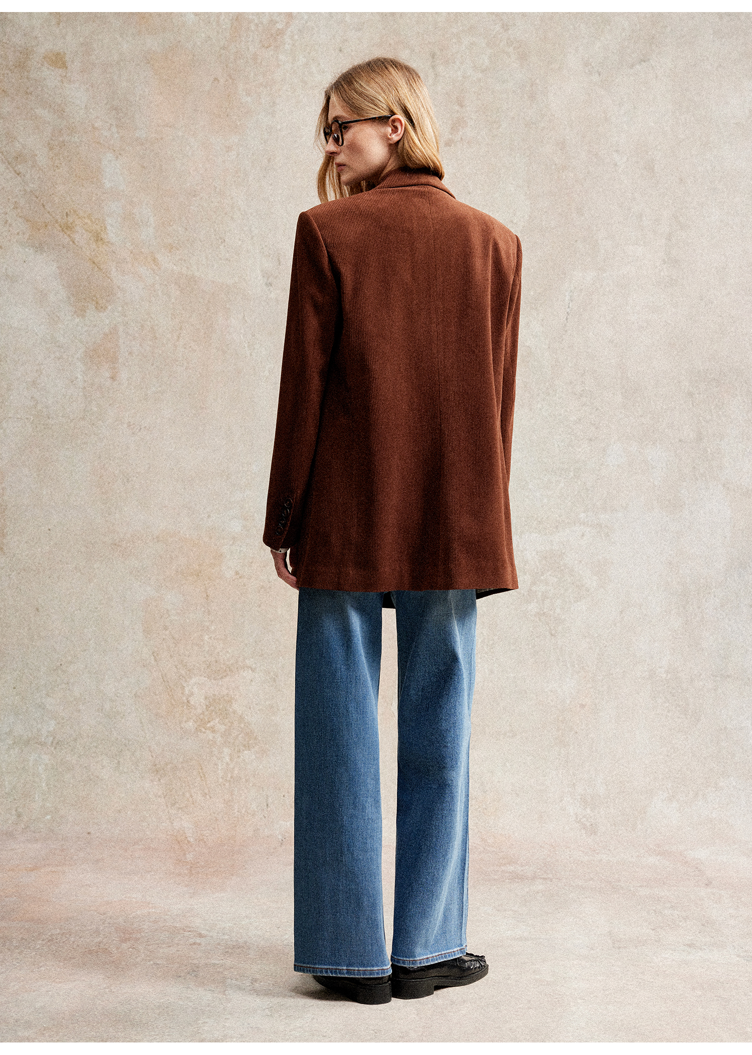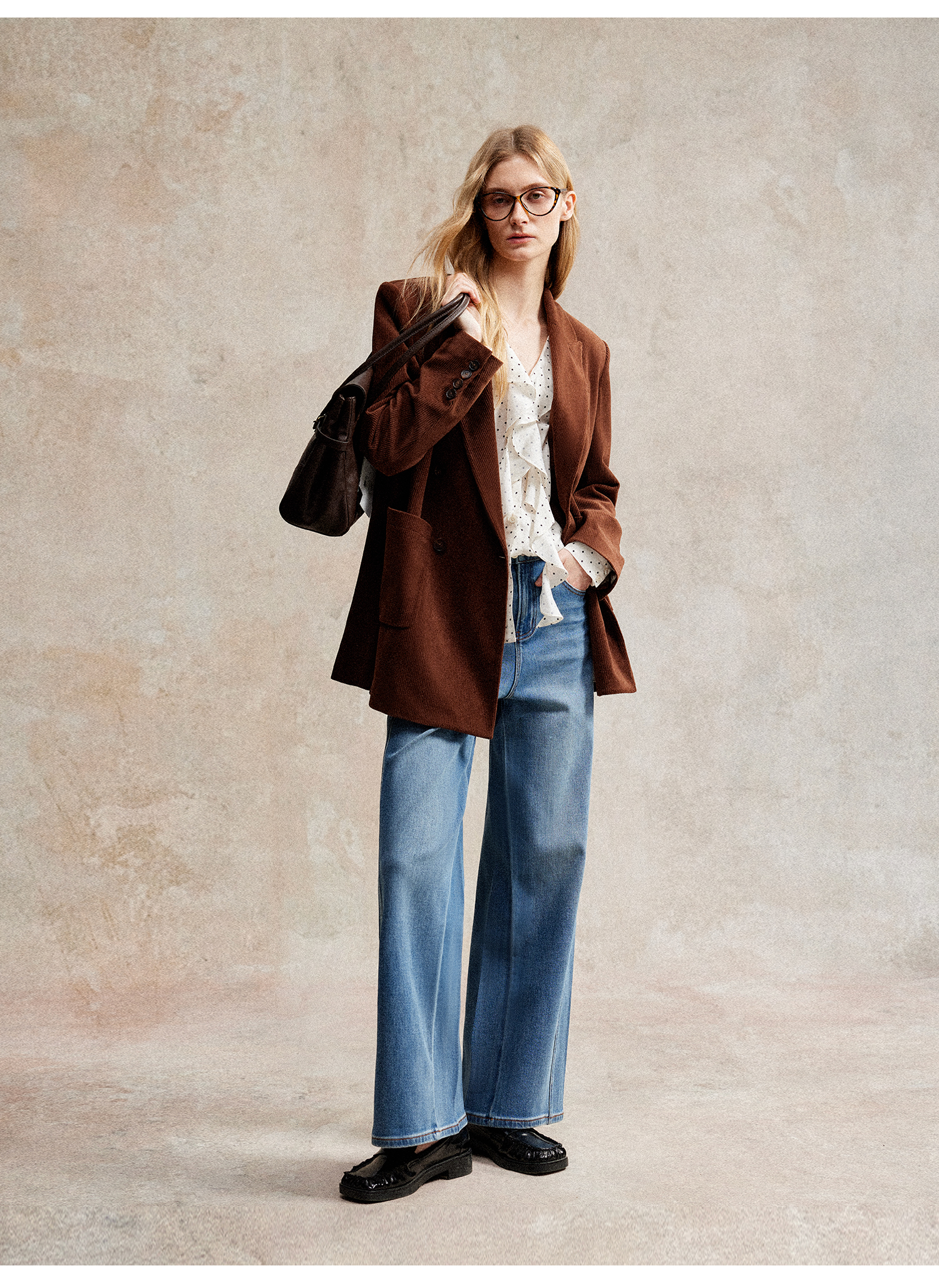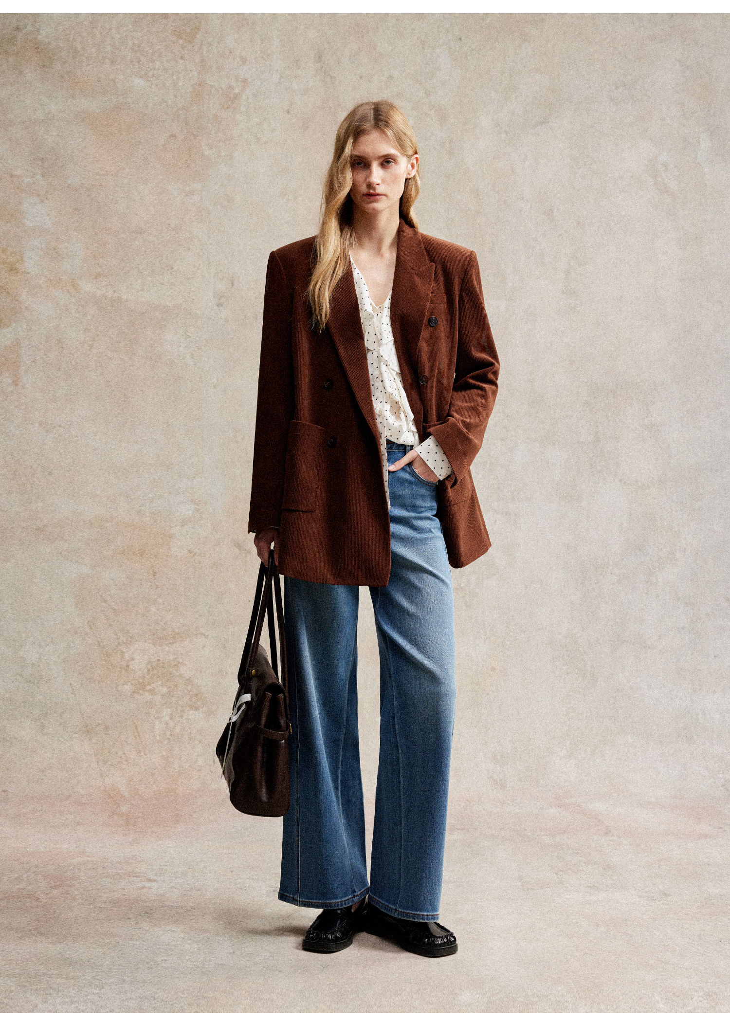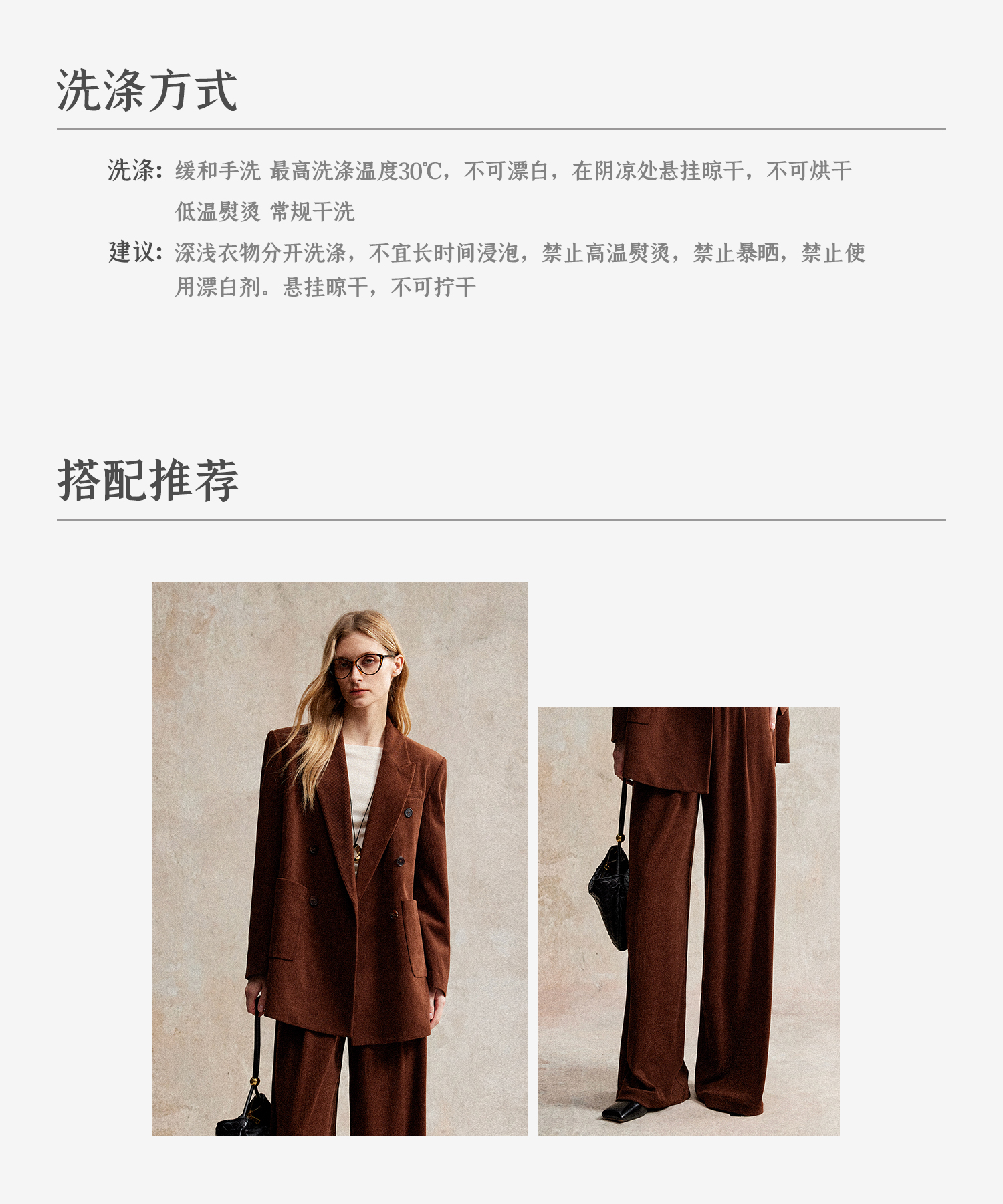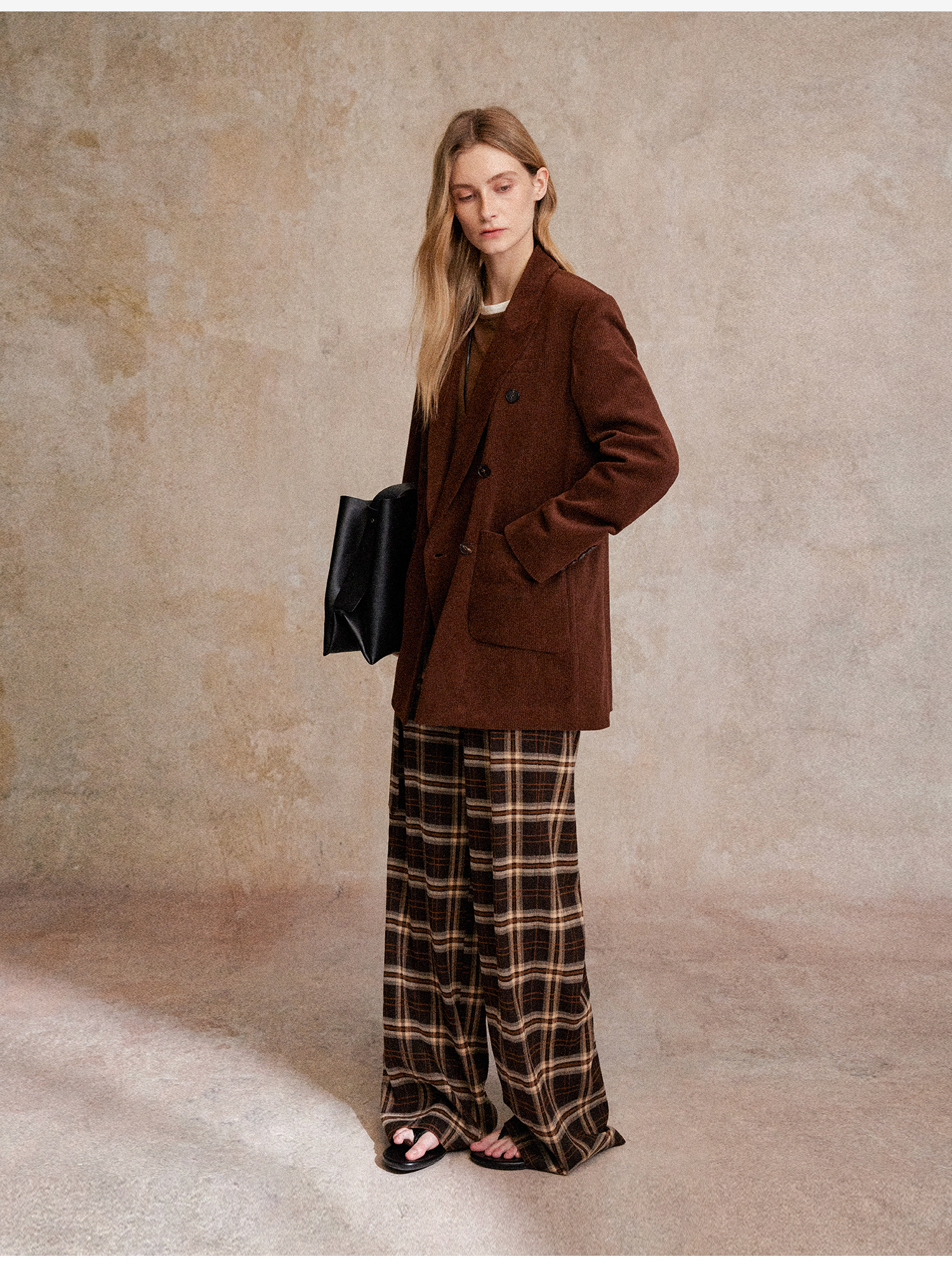 西嘉|得体风职场复古宽肩廓形灯芯绒西装外套+直筒西裤套装女秋冬WT2503029