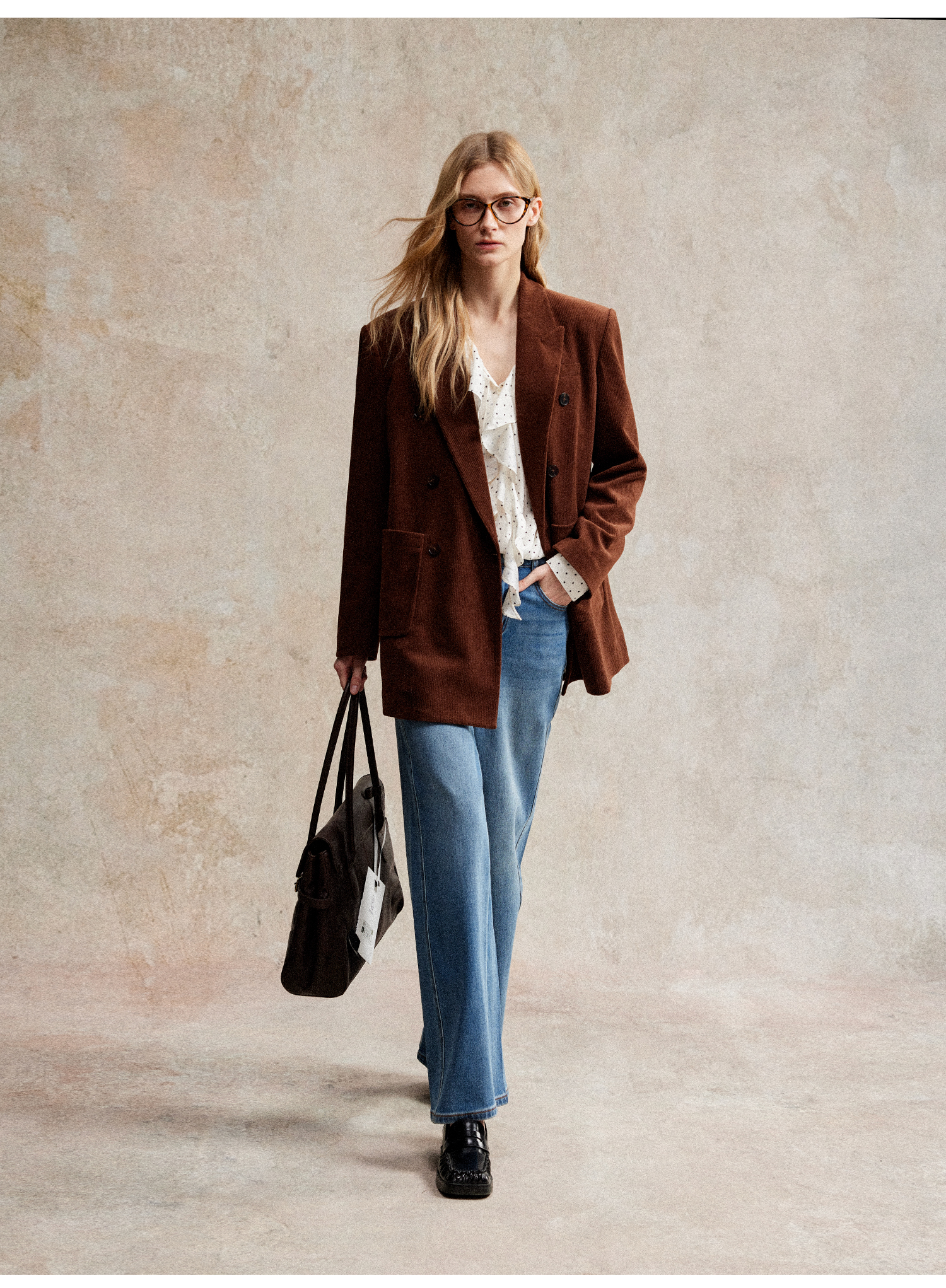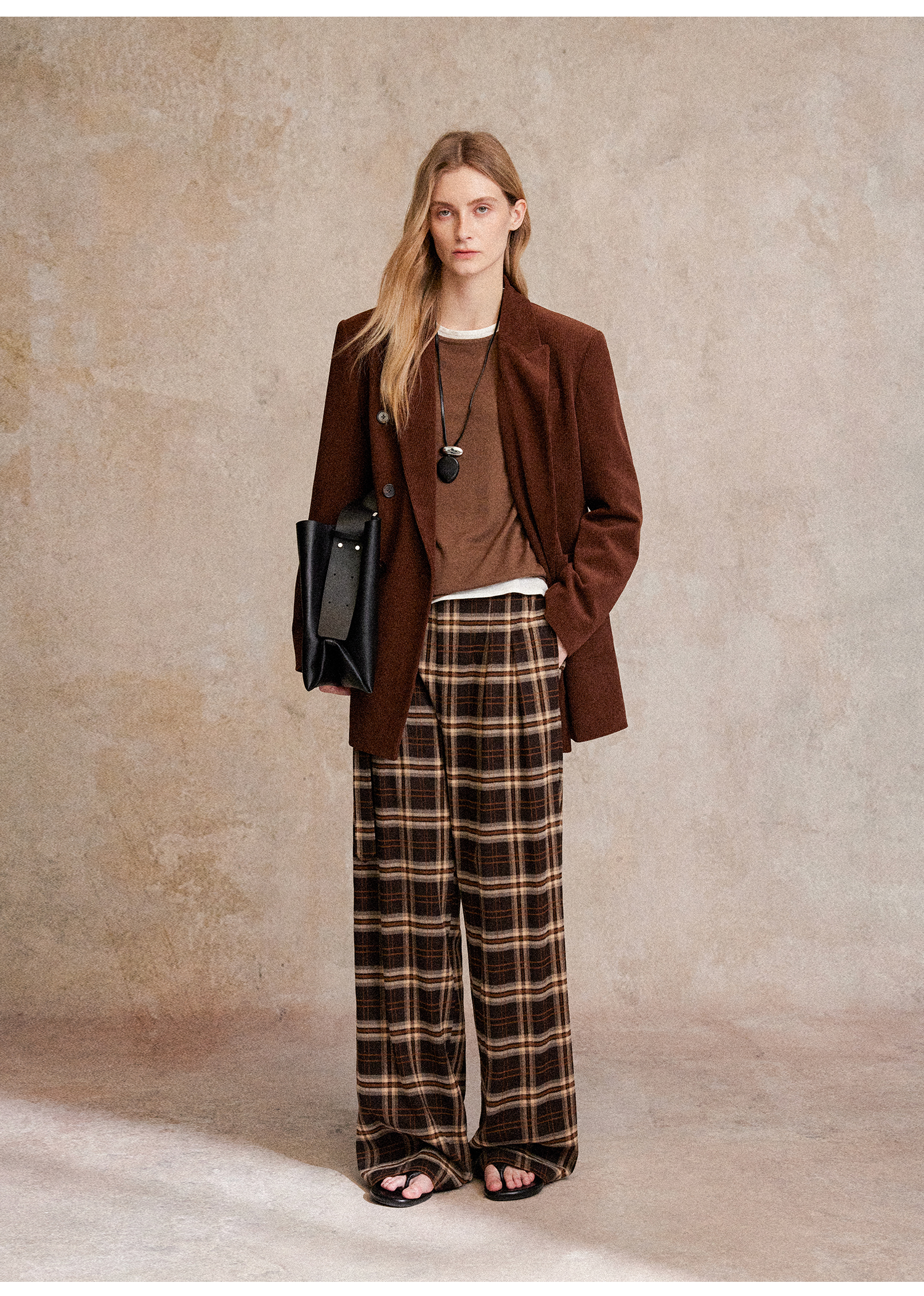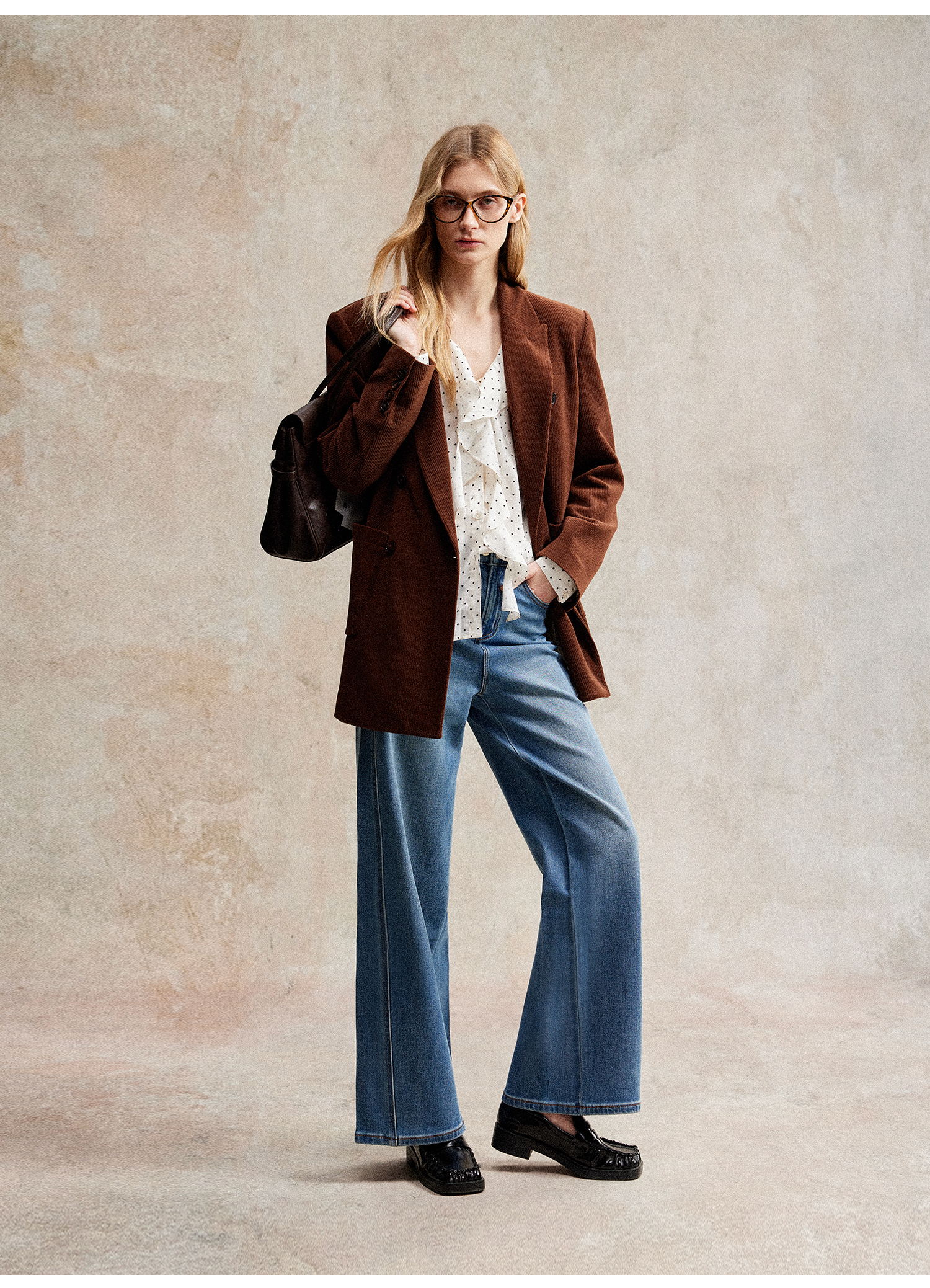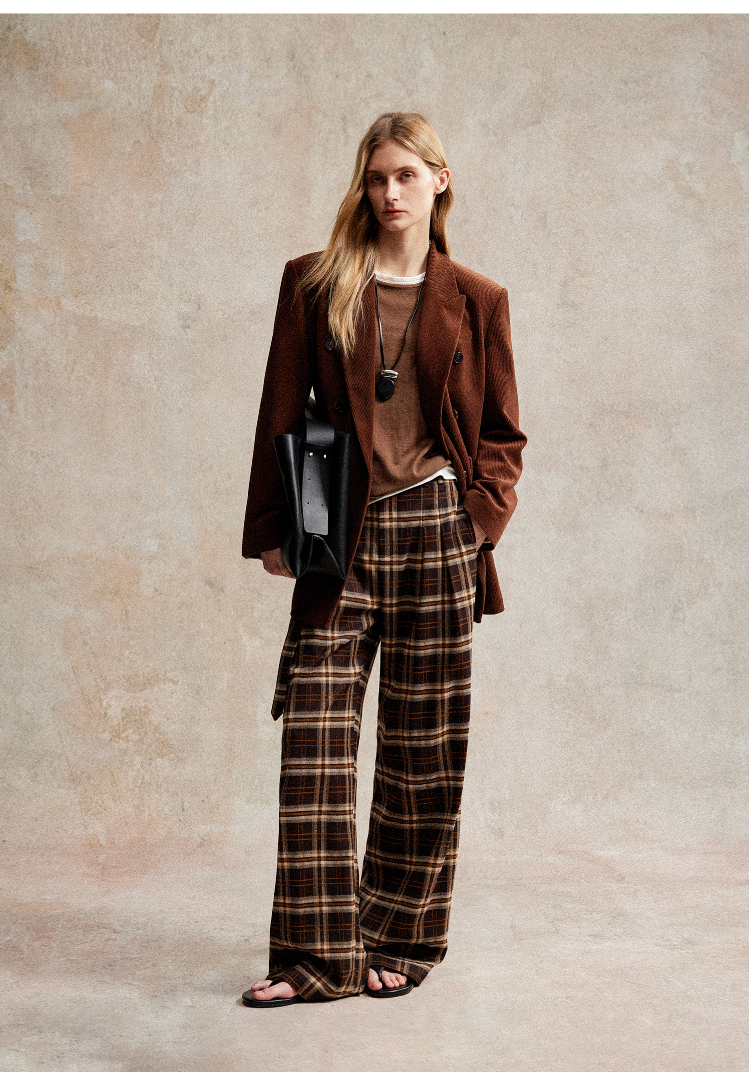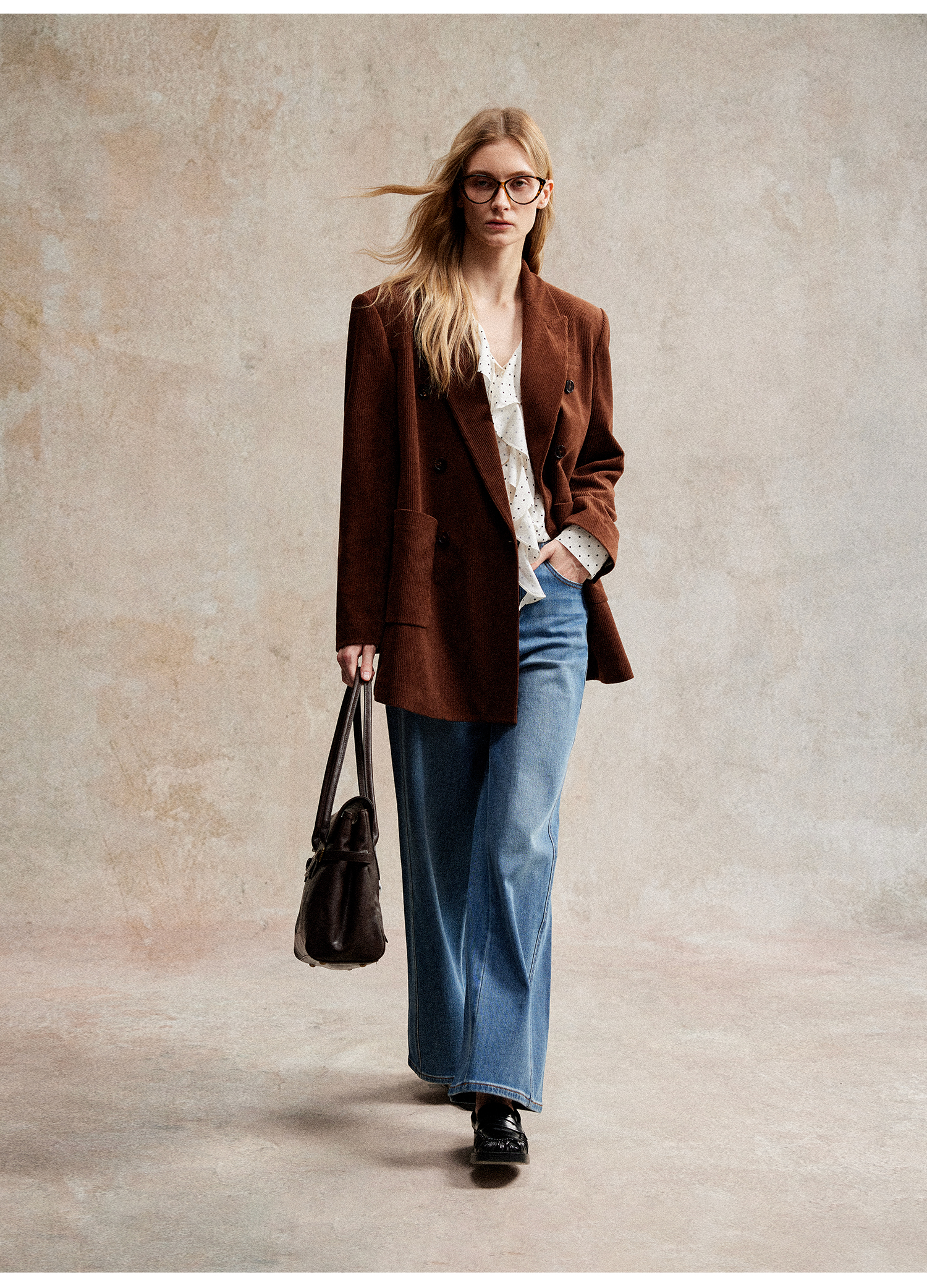 西嘉|得体风职场复古宽肩廓形灯芯绒西装外套+直筒西裤套装女秋冬WT2503029