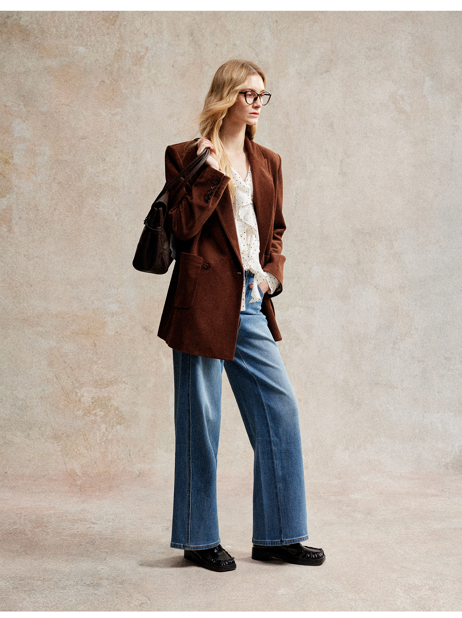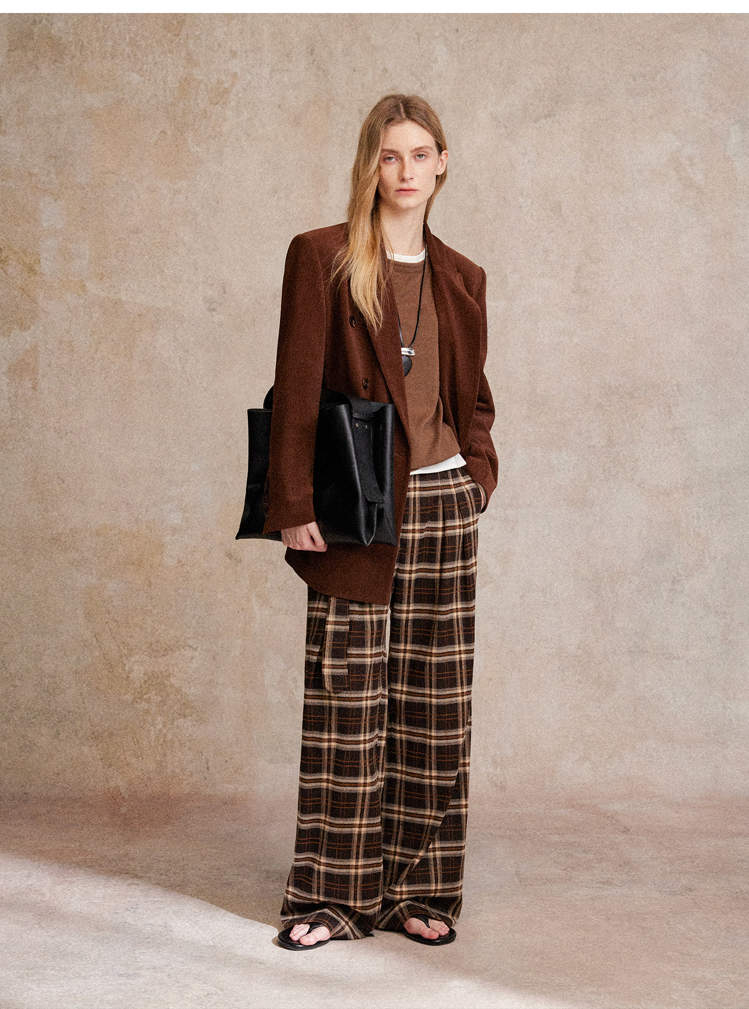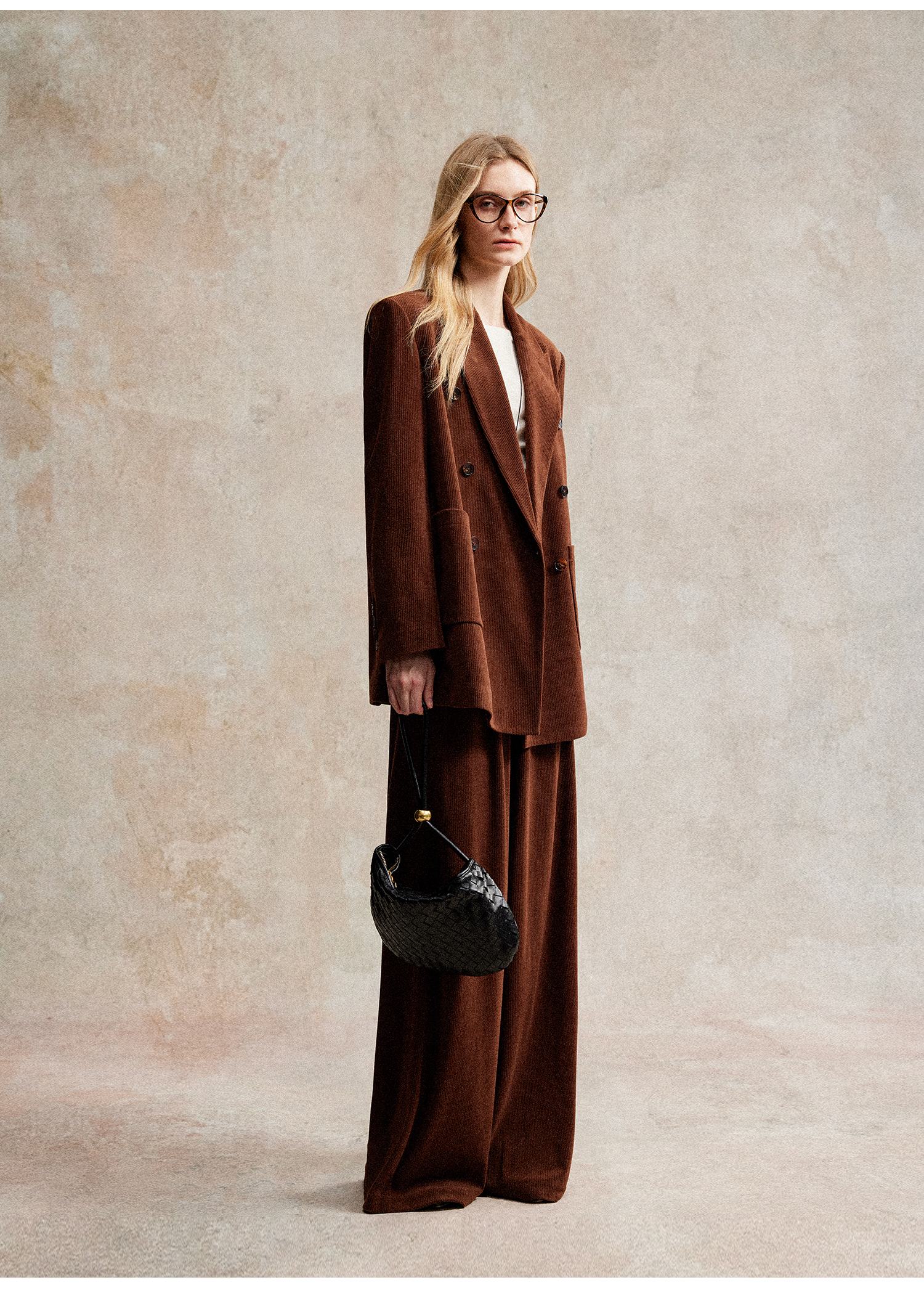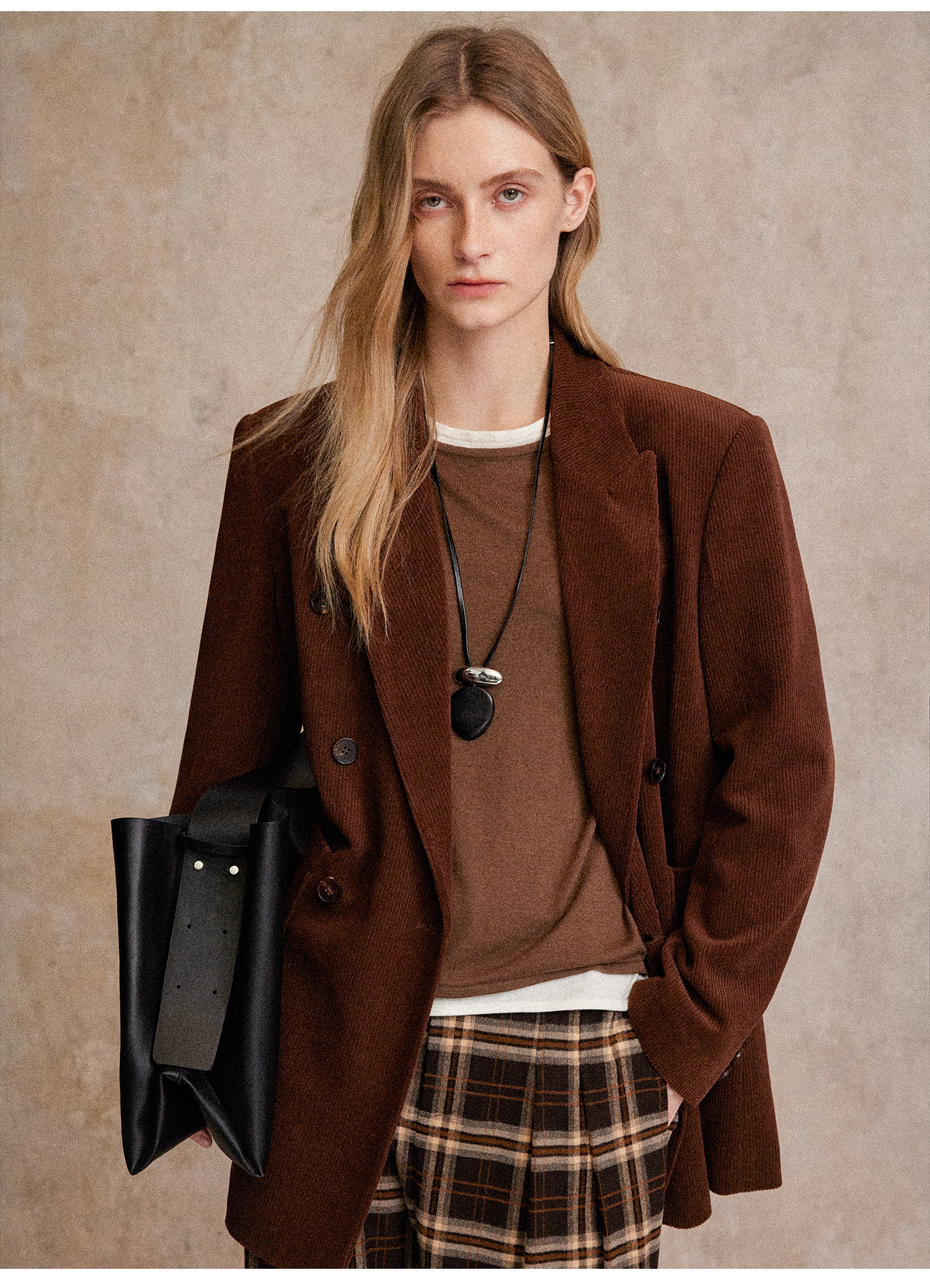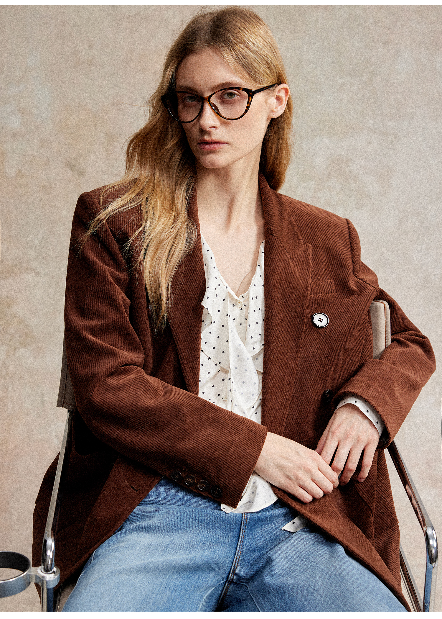 西嘉|得体风职场复古宽肩廓形灯芯绒西装外套+直筒西裤套装女秋冬WT2503029
