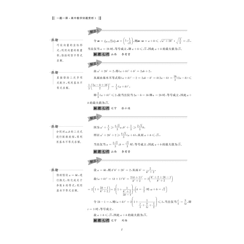 《一题一课.高中数学好题赏析3》是继《一题一课.高中数学好题赏析》、《一题一课.高中数学好题赏析2》后一本全新的、来源于教学实践的解题指导类图书。书中每一道例题均给出了多种解法(每一种解法均包含“点拨”)及 “赏析”。“点拨”说明这种解法的基本思路、解题步骤,“详细解答”则给出解题的具体过程及答案,“赏析”对该道题的多种解法进行点评。
