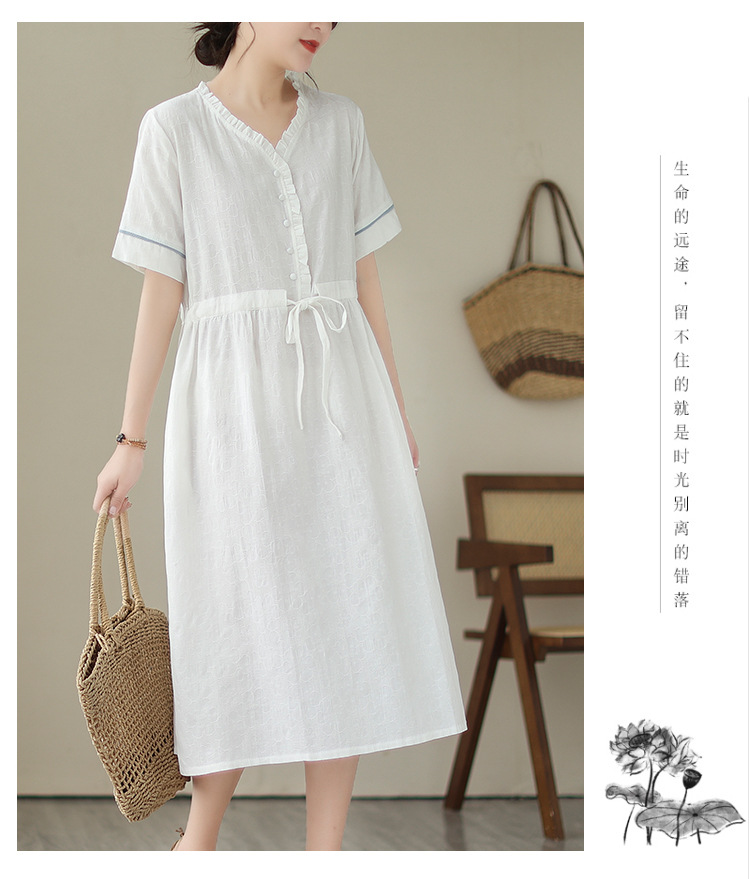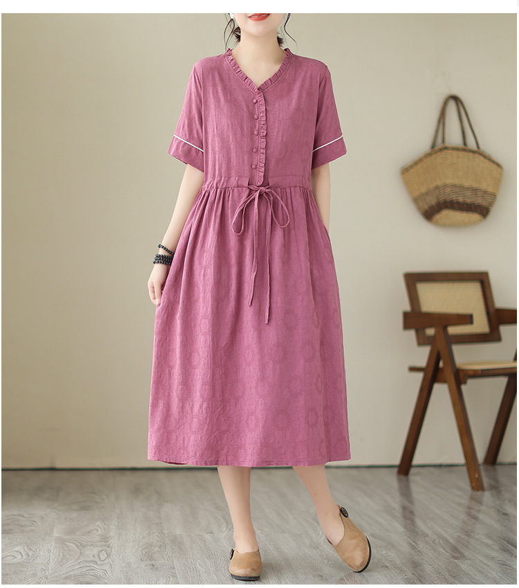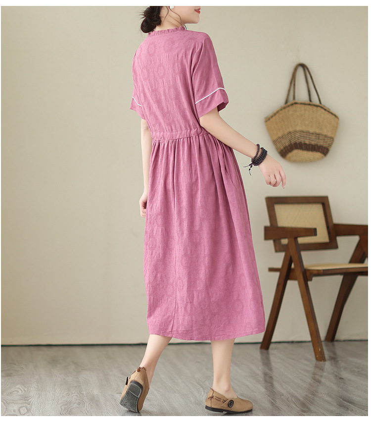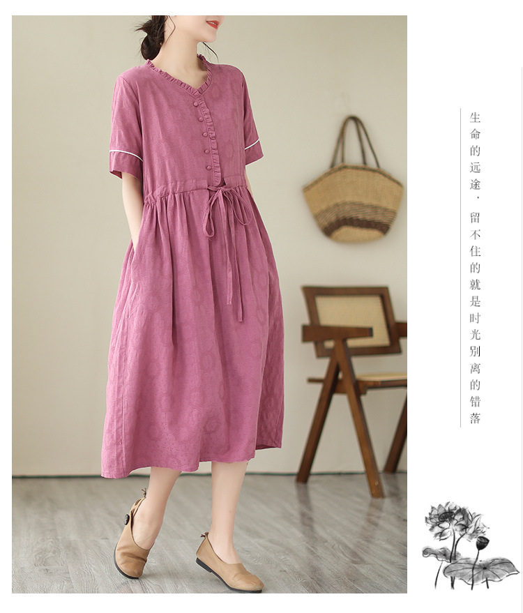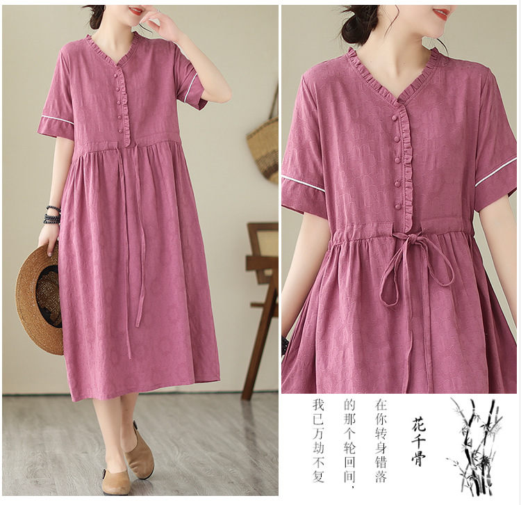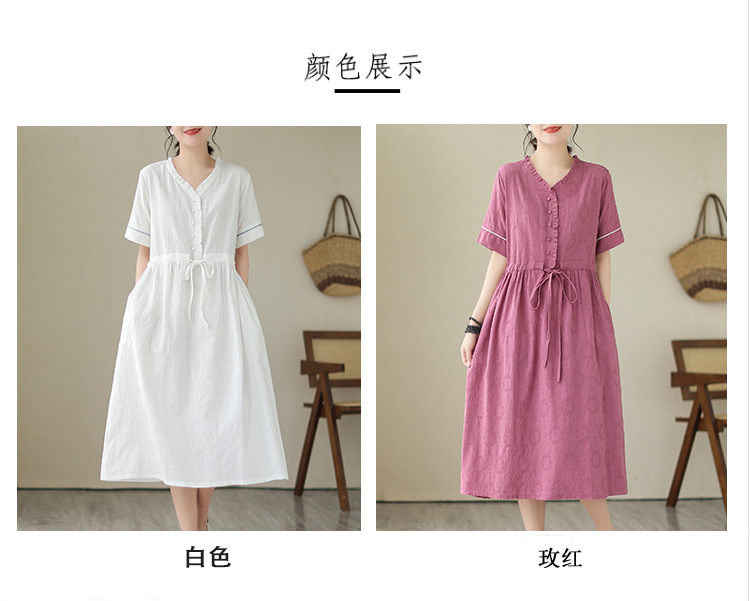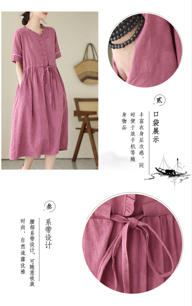 GYH 521提花民族风棉麻收腰宽松显瘦中长连衣裙
