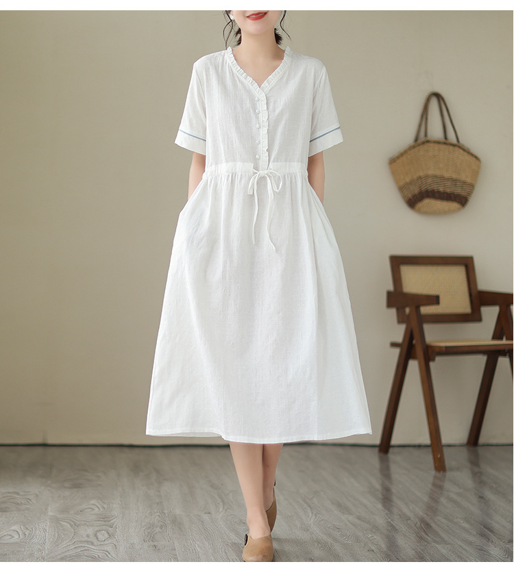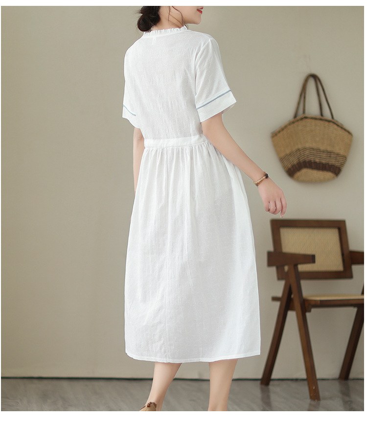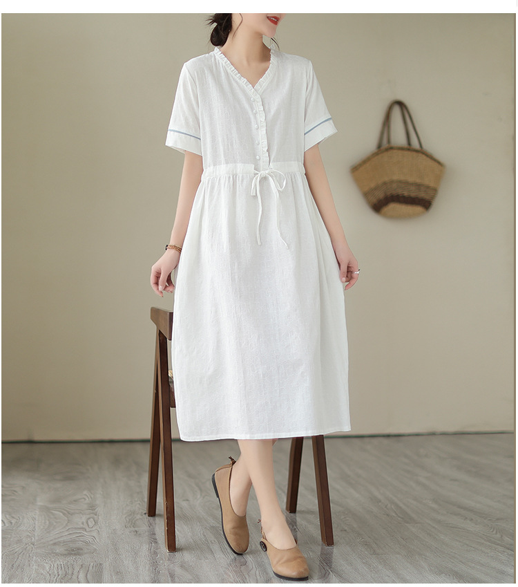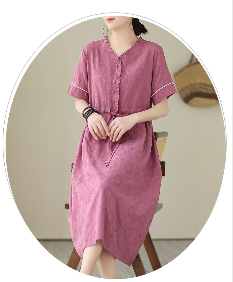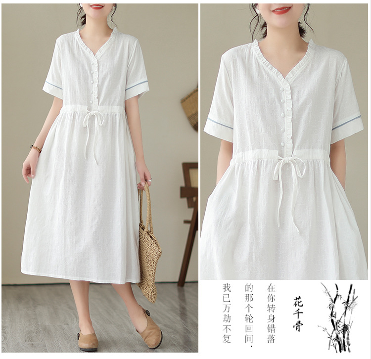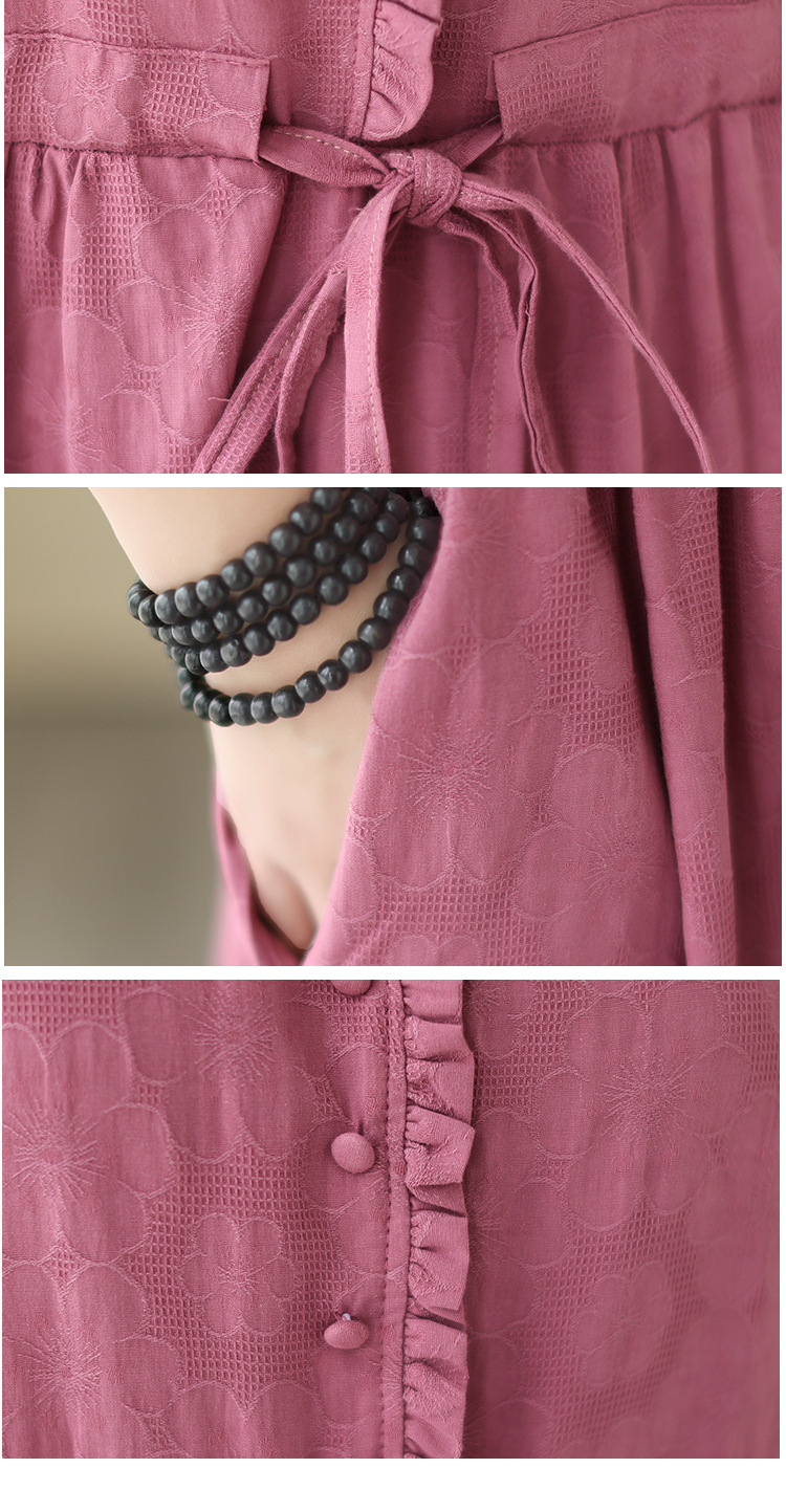 GYH 521提花民族风棉麻收腰宽松显瘦中长连衣裙