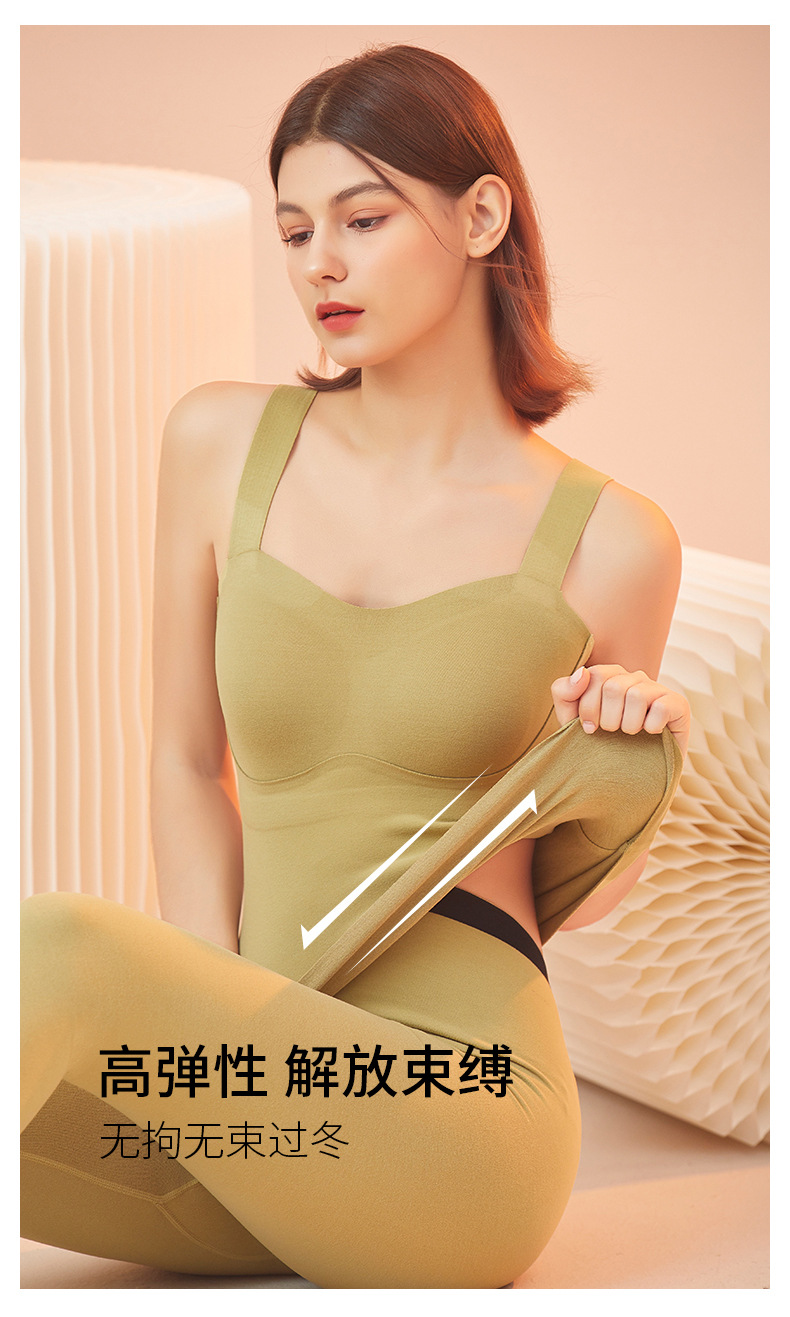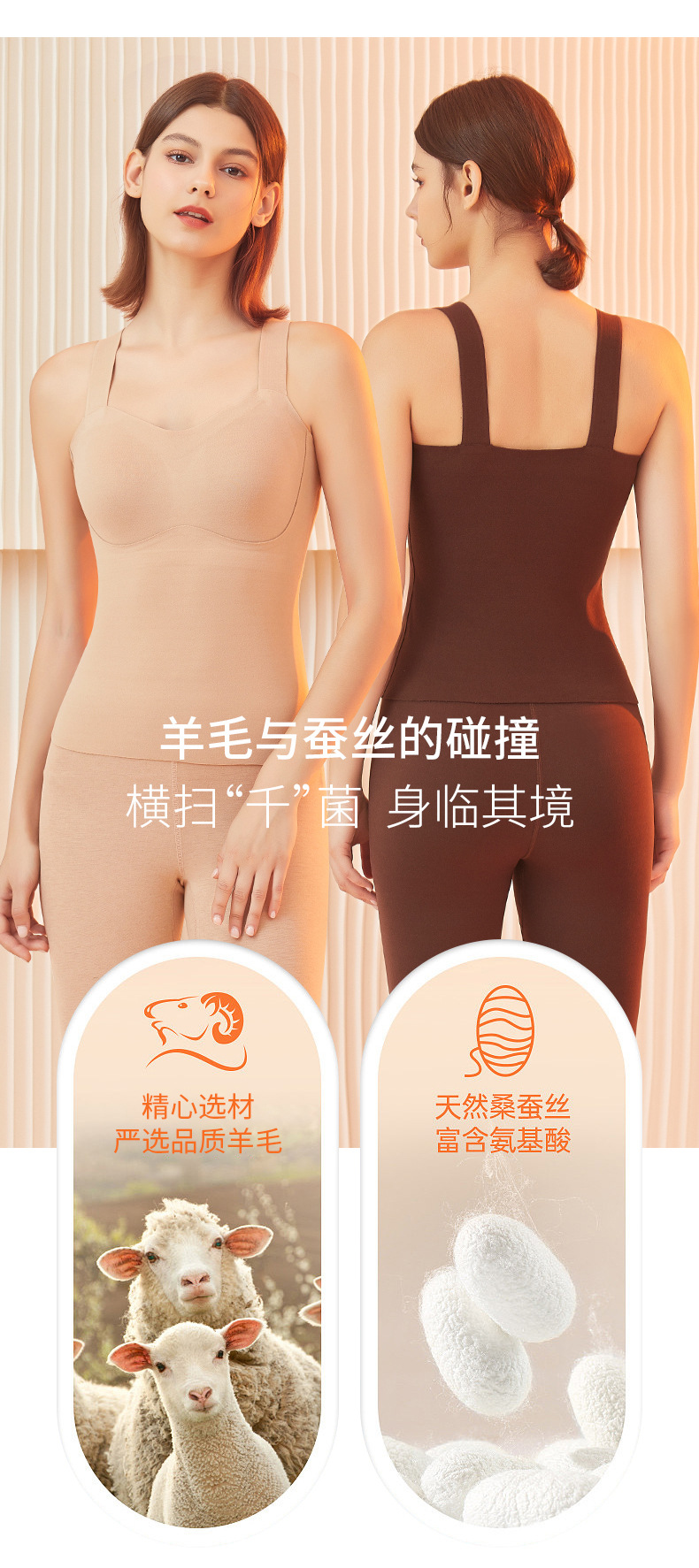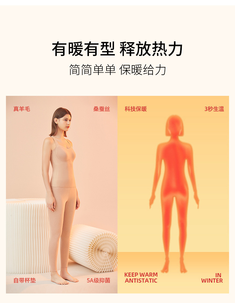 热卖69.9开秒❗️❗️❗️【免穿文胸❗️奢材养肤 | 锁温速暖 | 抑螨净味】无痕羊绒蚕丝美肤保暖背心带胸垫抗菌自发热恒温女士秋冬速暖内衣。hb