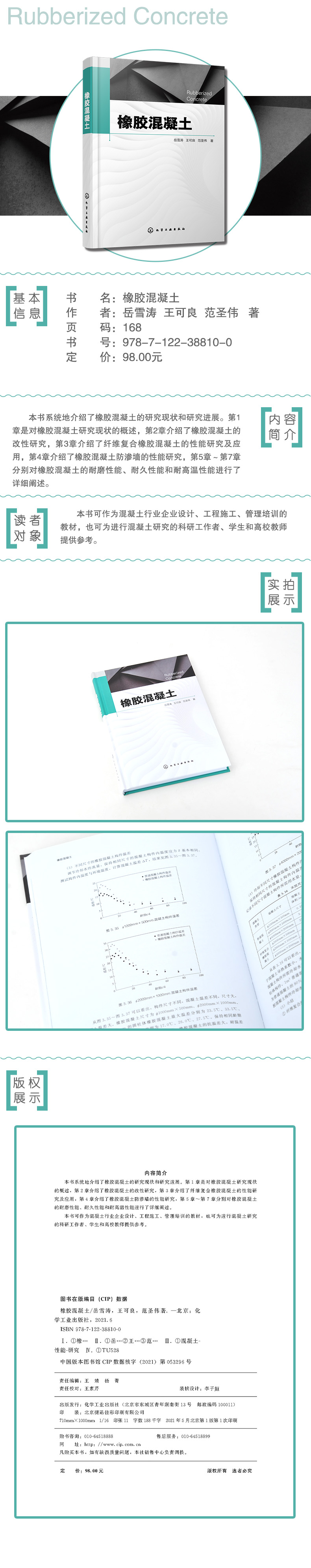 本书系统地介绍了橡胶混凝土的研究现状和研究进展。第1章是对橡胶混凝土研究现状的概述,第2章介绍了橡胶混凝土的改性研究,第3章介绍了纤维复合橡胶混凝土的性能研究及应用,第4章介绍了橡胶混凝土防渗墙的性能研究,第5章~第7章分别对橡胶混凝土的耐磨性能、耐久性能和耐高温性能进行了详细阐述。