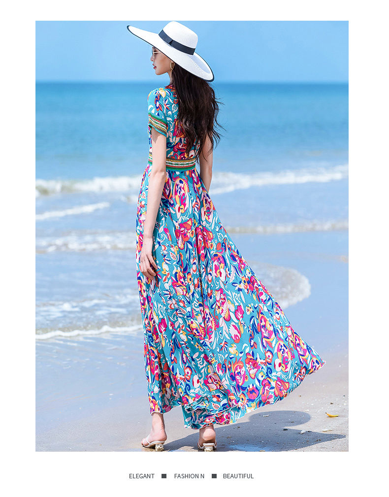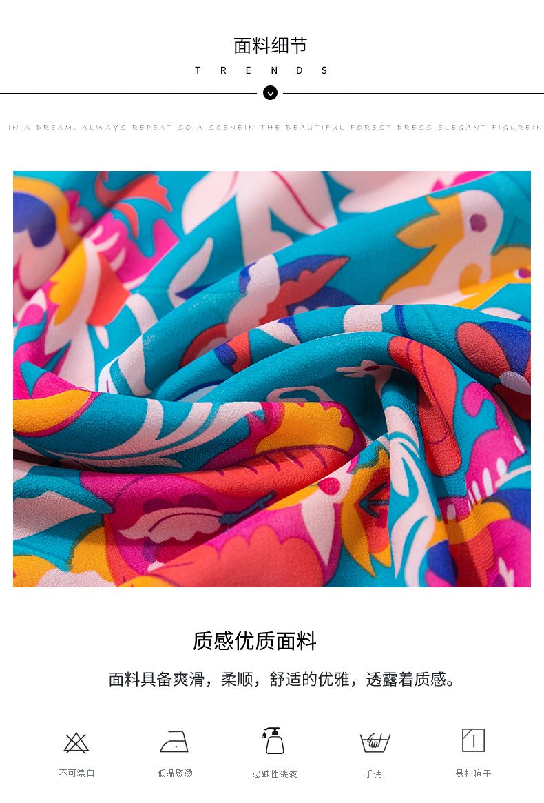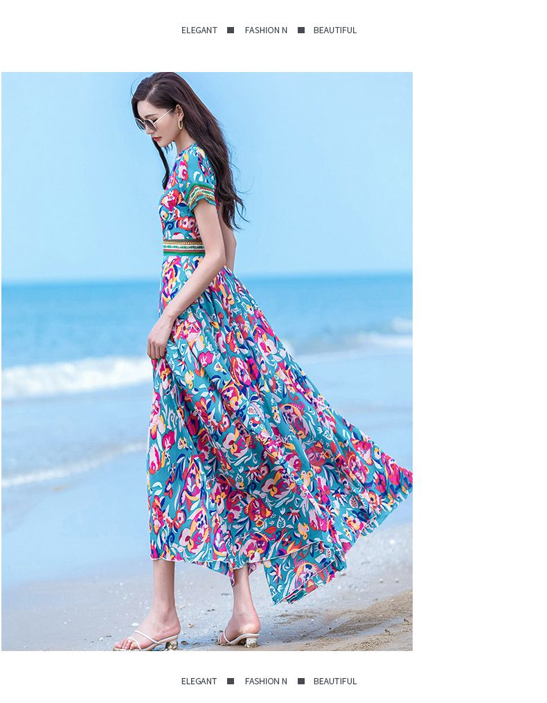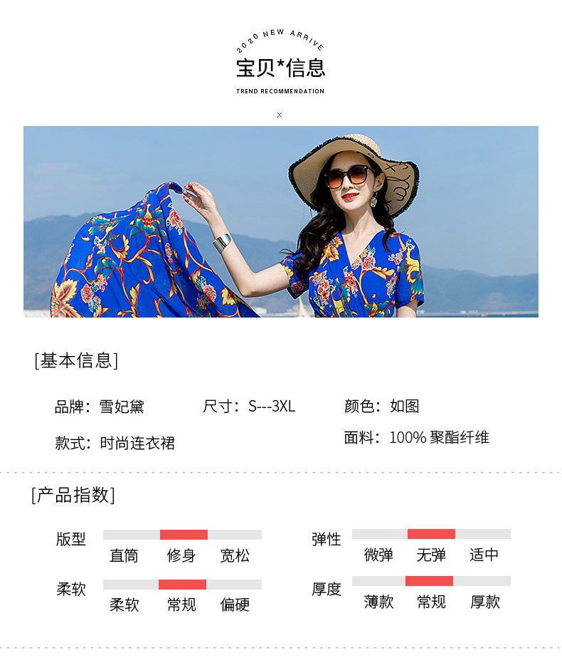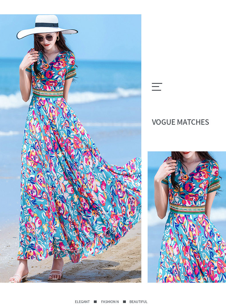 DD-印花雪纺连衣裙女2023新款夏季气质修身显瘦短袖到脚踝大摆长裙子
