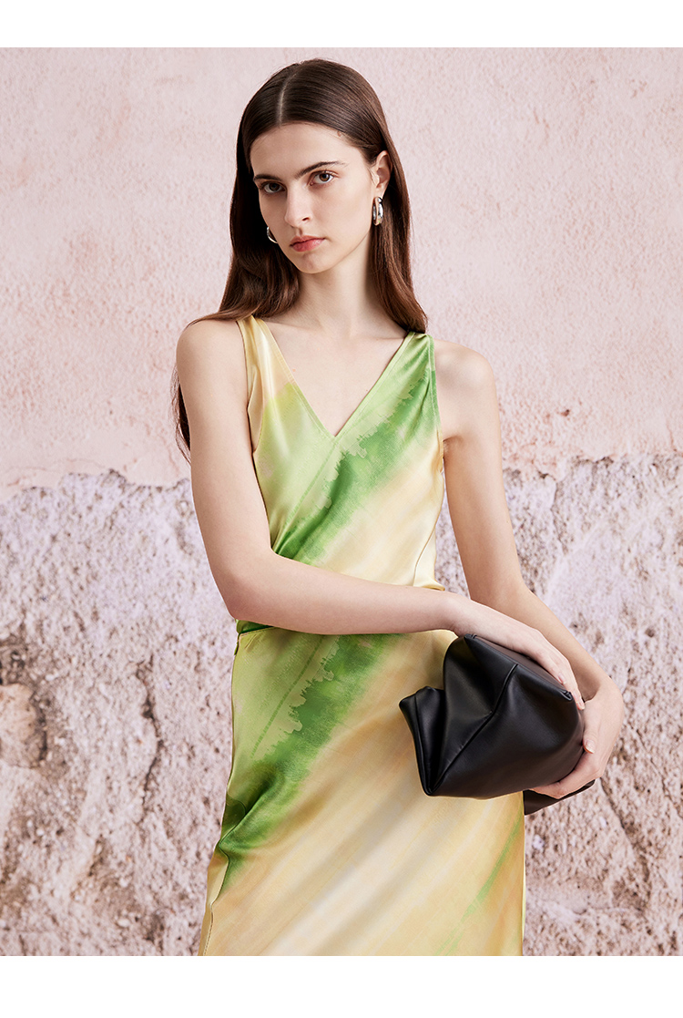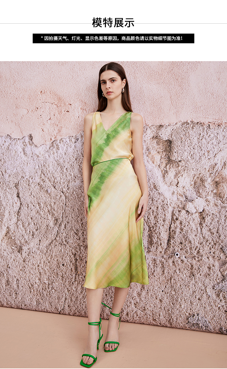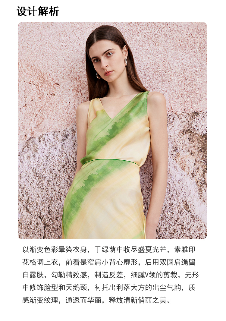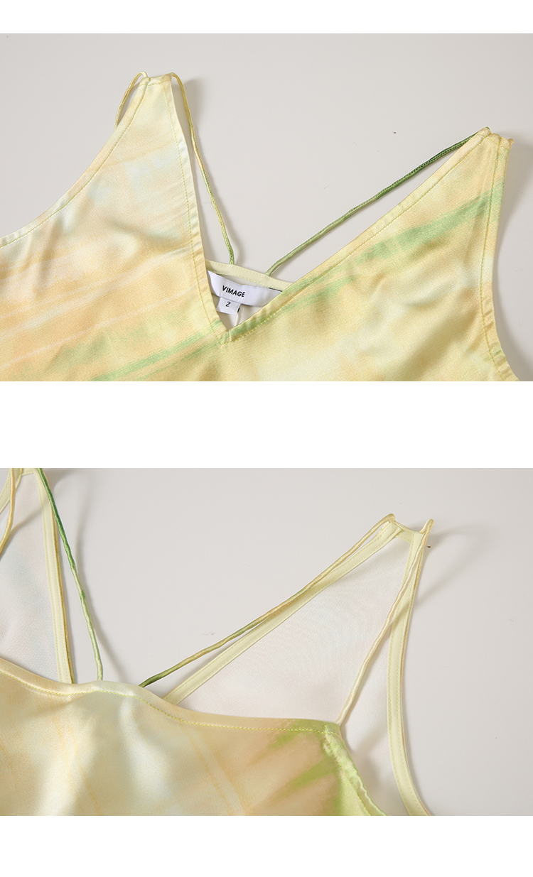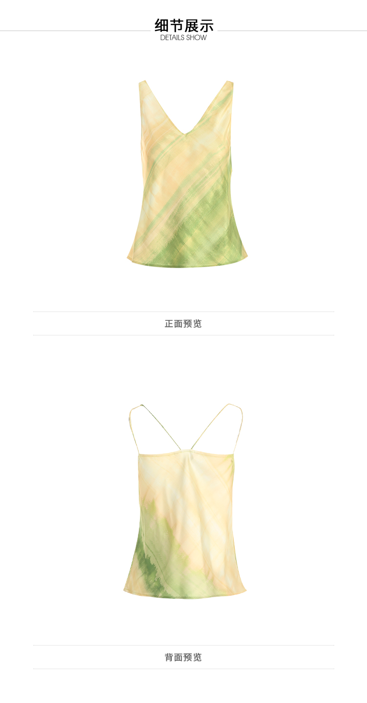 VIMAGE纬漫纪夏季新款晕染V领显瘦气质无袖上衣V2113720