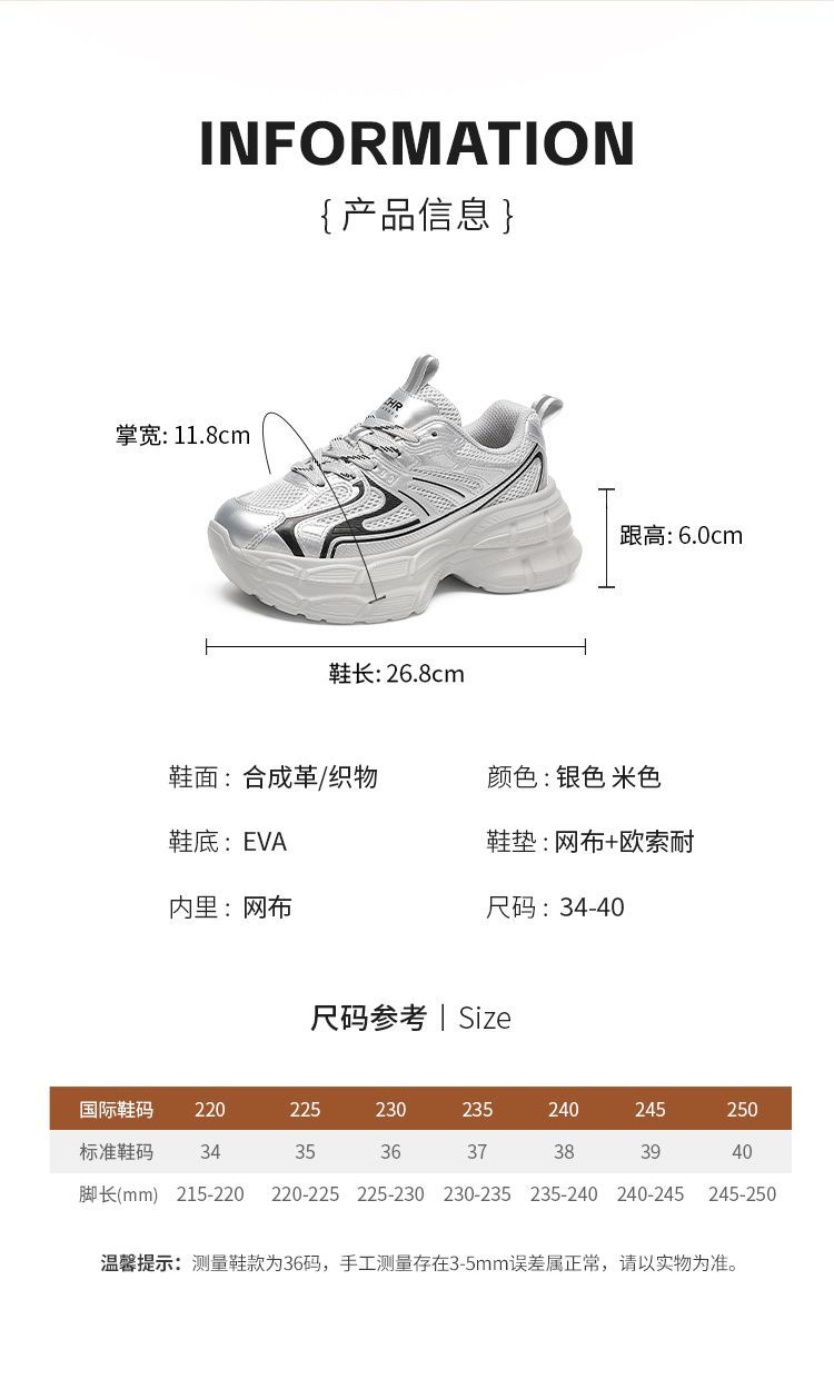 ZHR则则银色厚底增高老爹鞋情侣同款运动休闲鞋秋季户外百搭女鞋