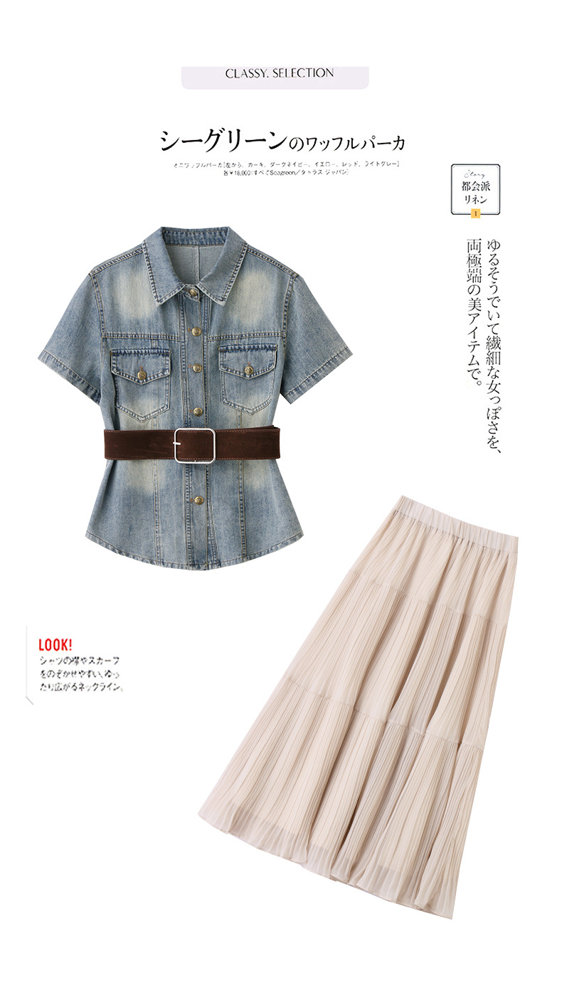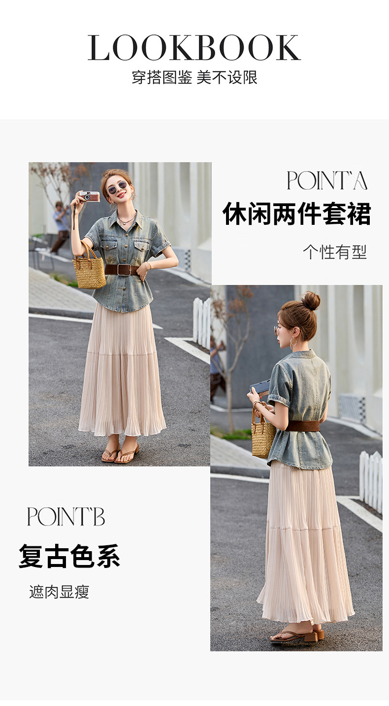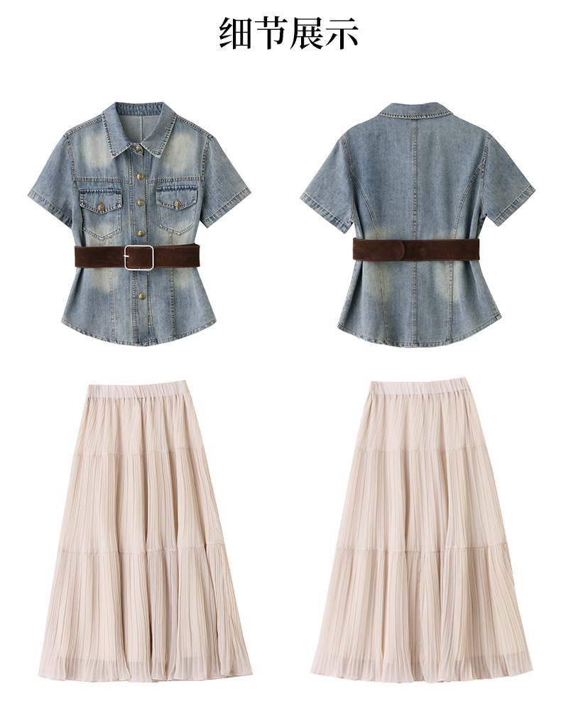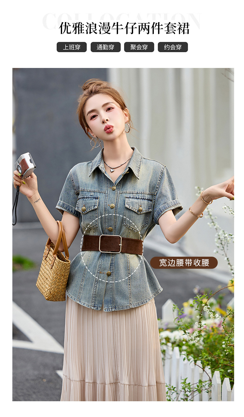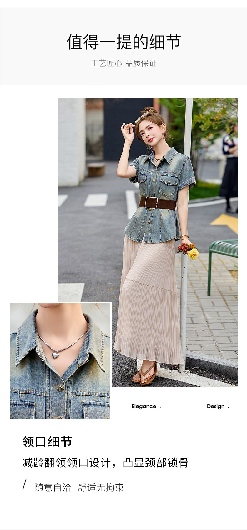 2025新款气质一整套穿搭小个子牛仔Polo领短袖衬衫半身裙套装MYL2521