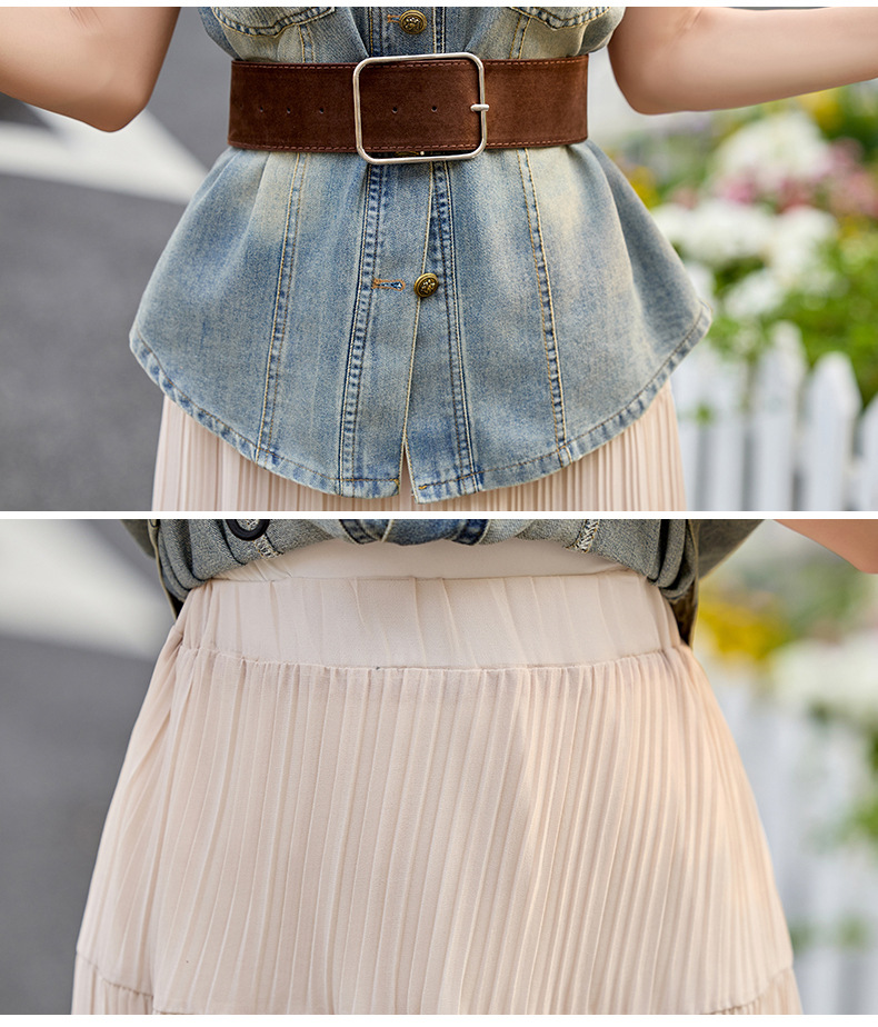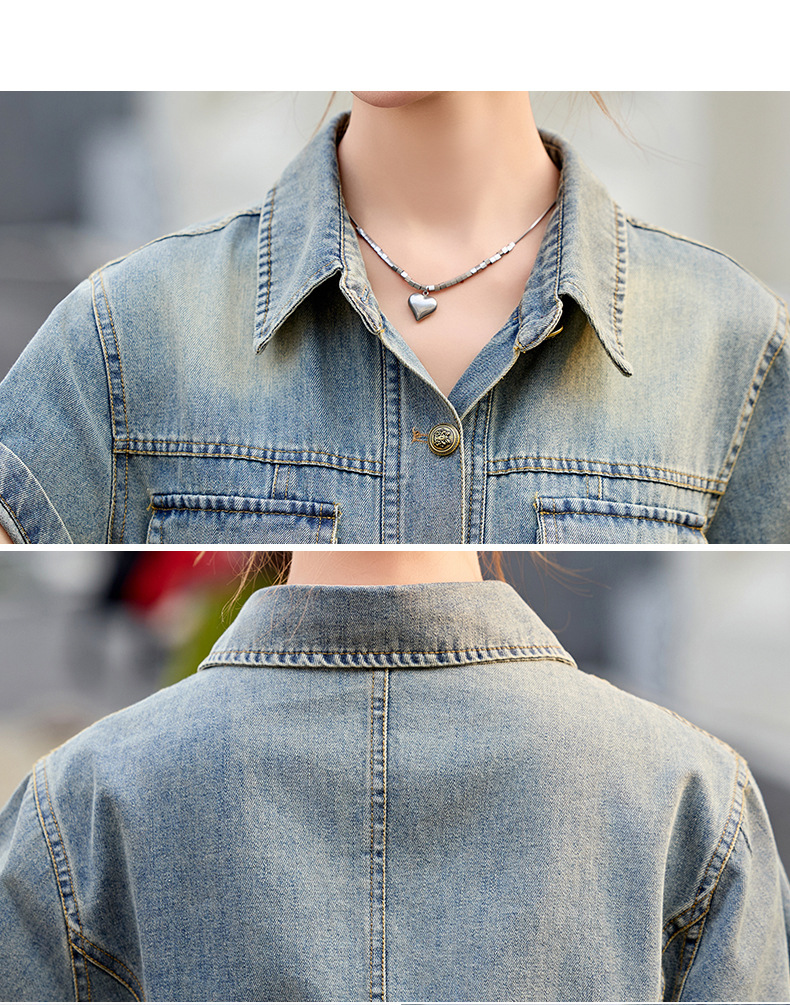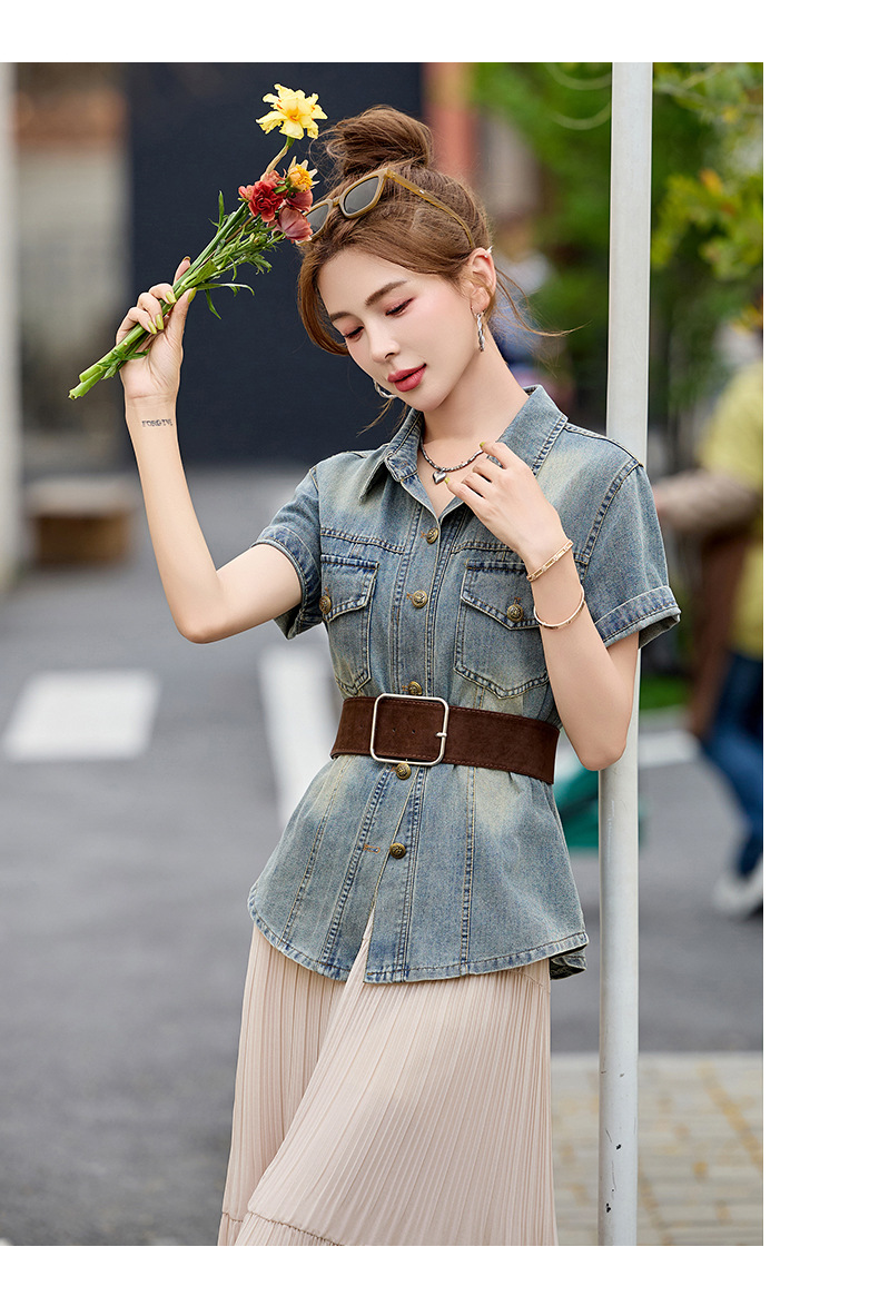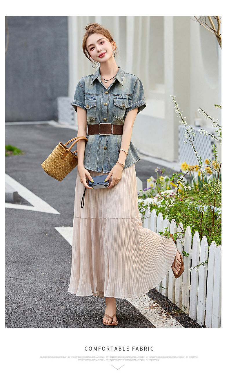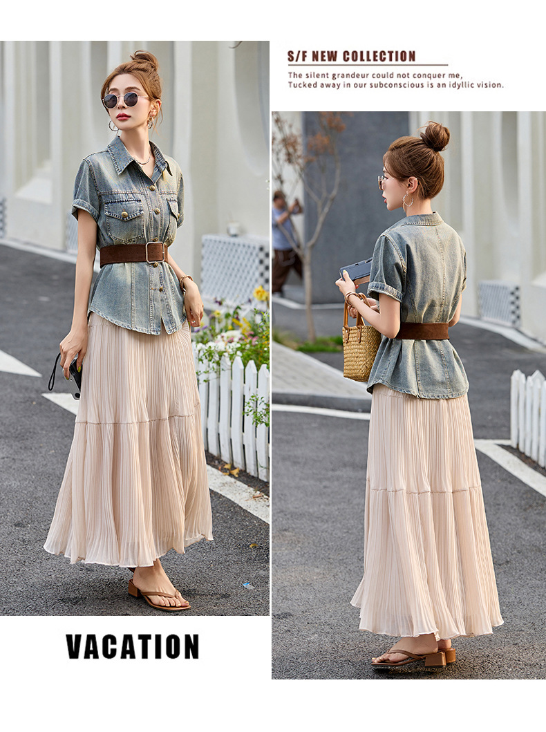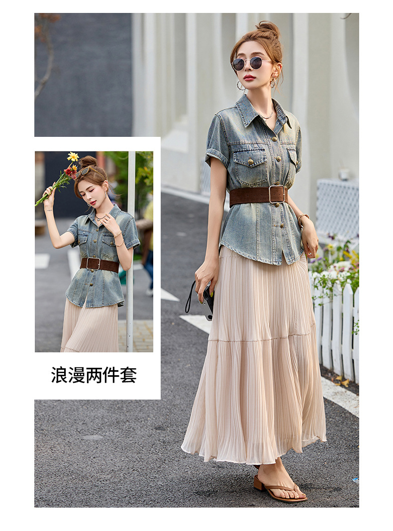 2025新款气质一整套穿搭小个子牛仔Polo领短袖衬衫半身裙套装MYL2521