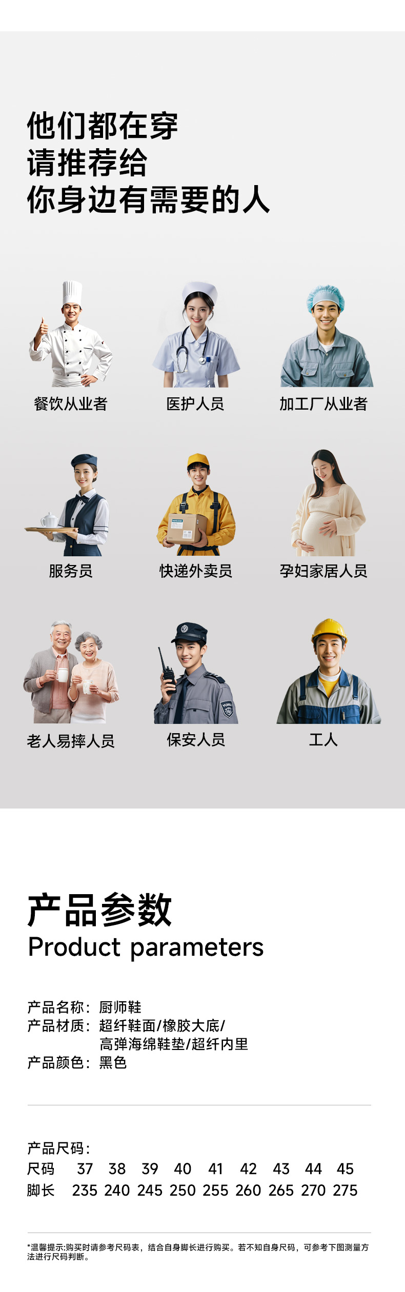 厨师鞋专业防滑款 无钢头无中底不防砸不防刺防滑SRC橡胶底