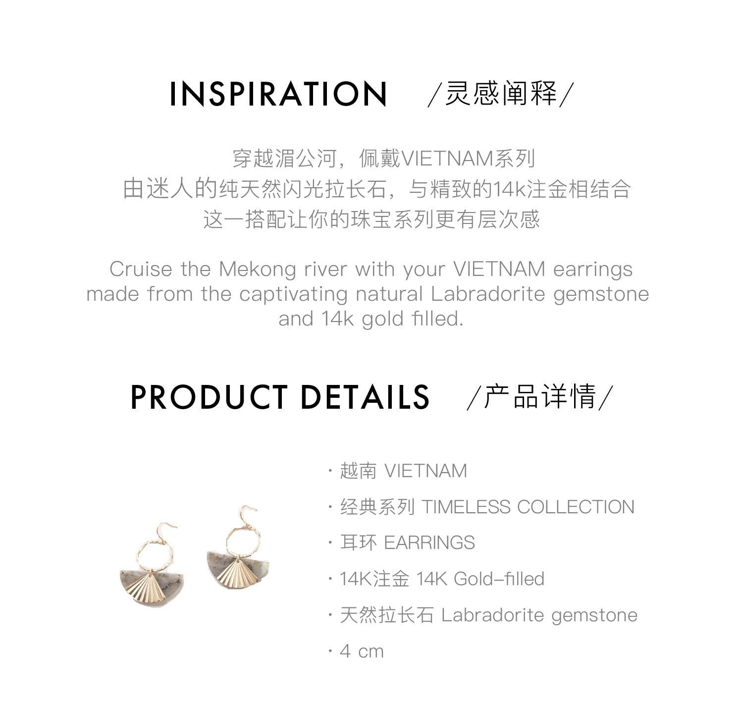 ZOAJE TIMELESS系列半月形拉长石耳环/项链VIETNAM