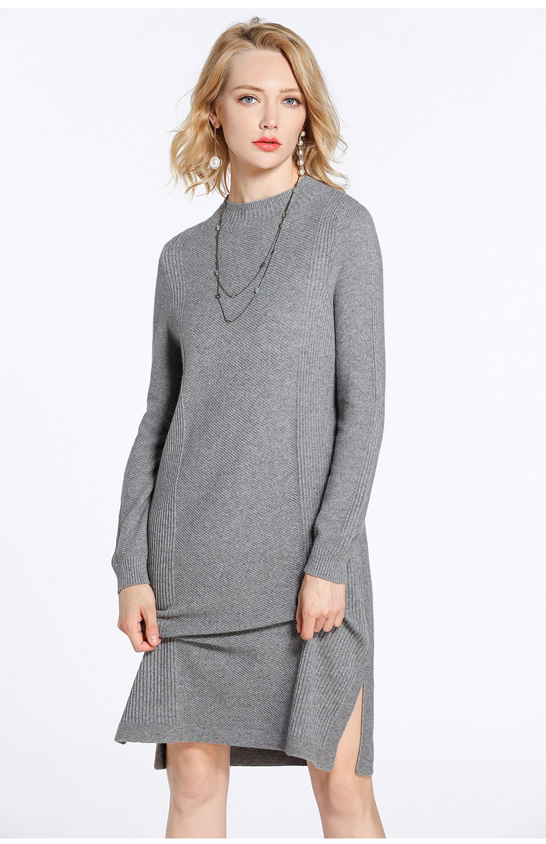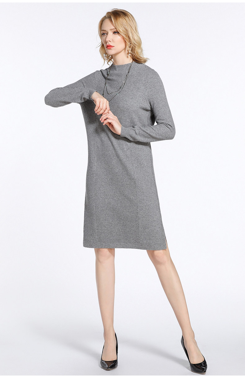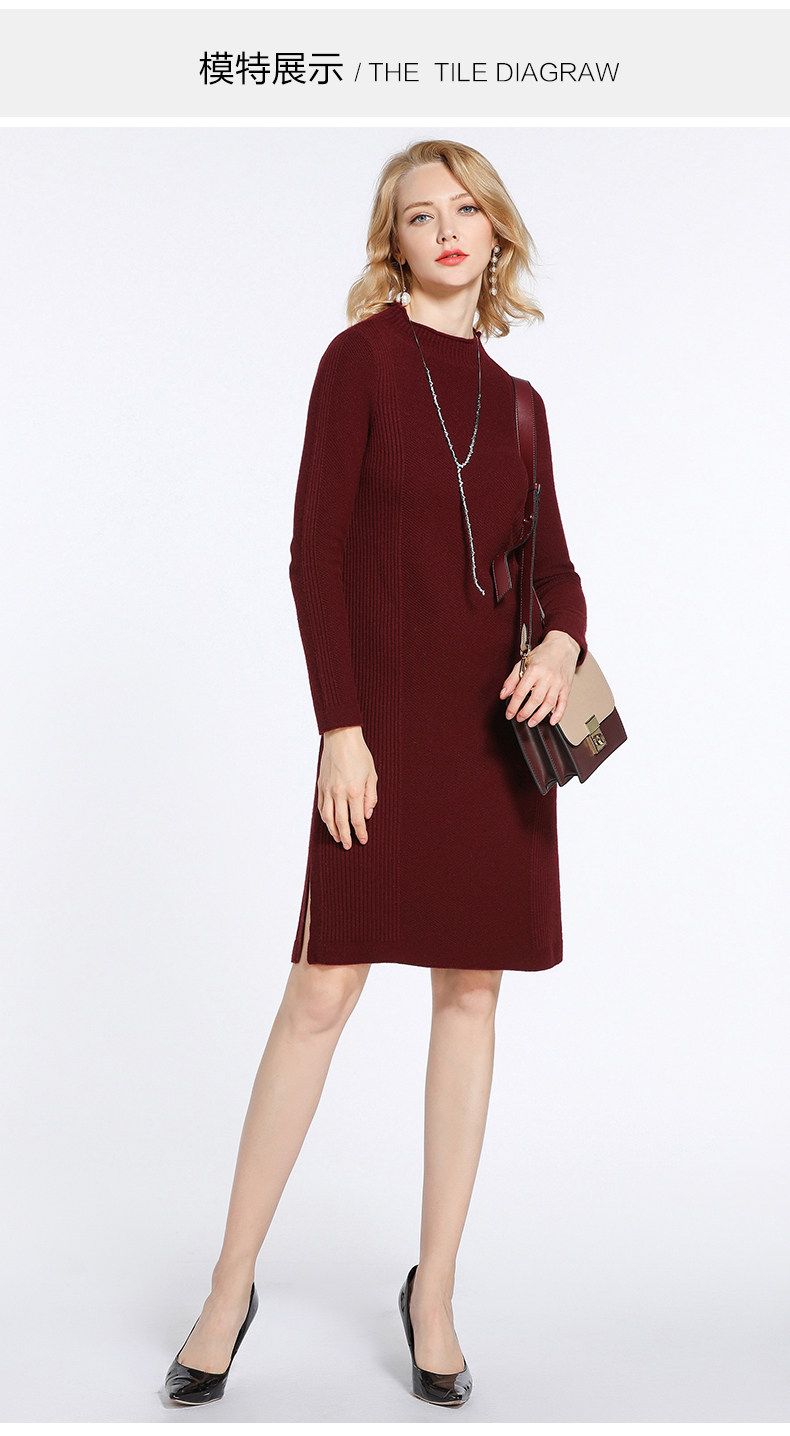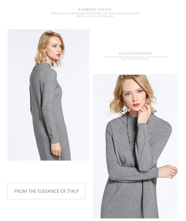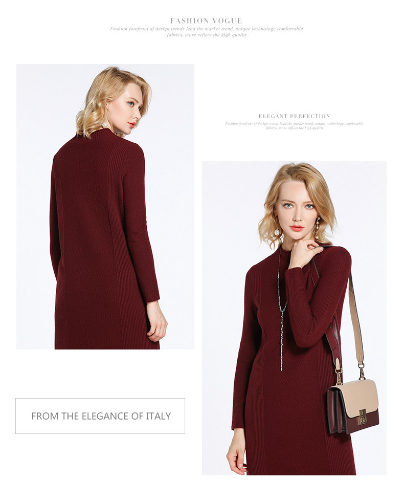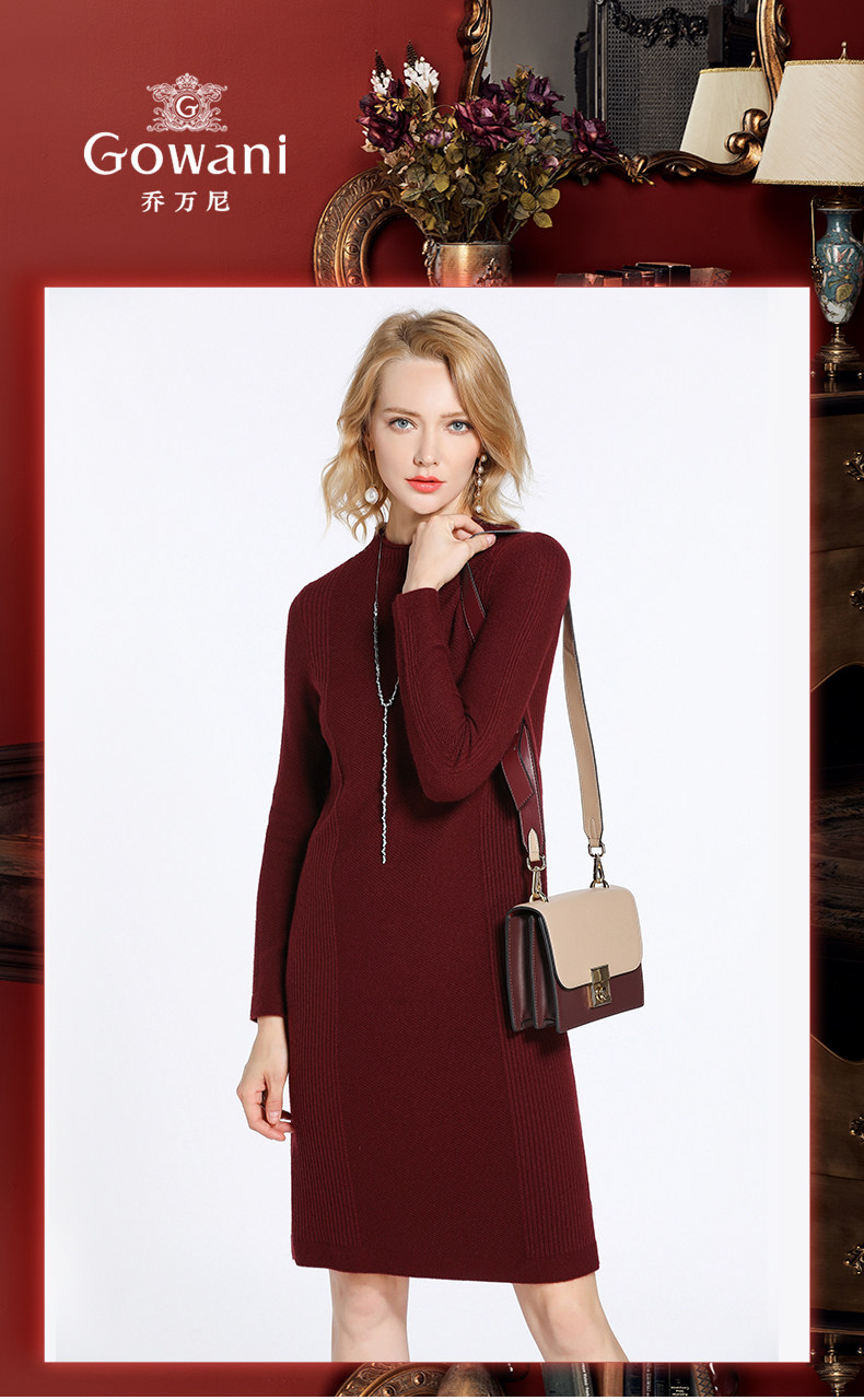 【两色可选】乔万尼连衣裙女秋冬季修身直筒气质羊毛针织打底裙中长款EB4M002
