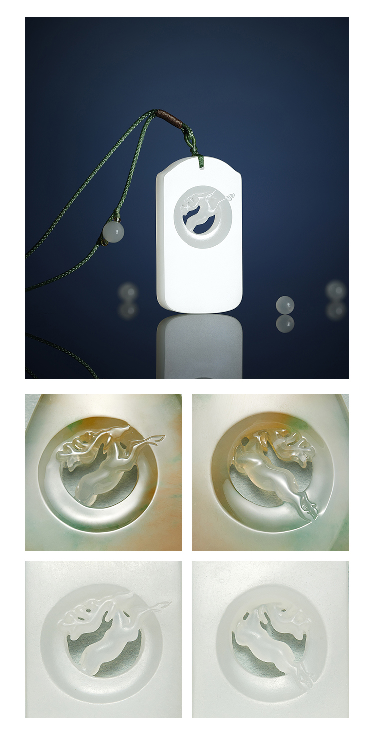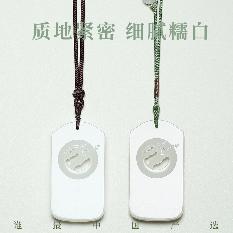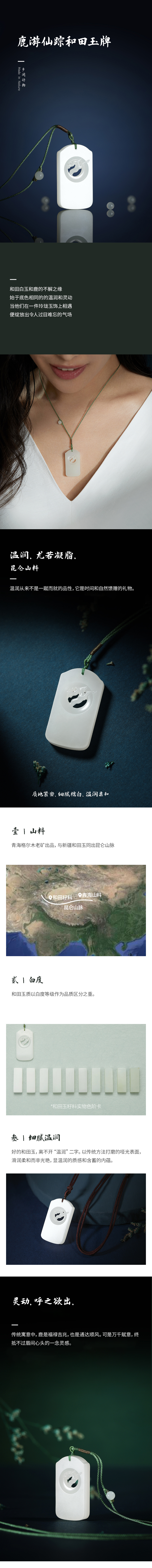 和田玉白玉鹿游仙踪玉牌 细腻糯白 温润灵动