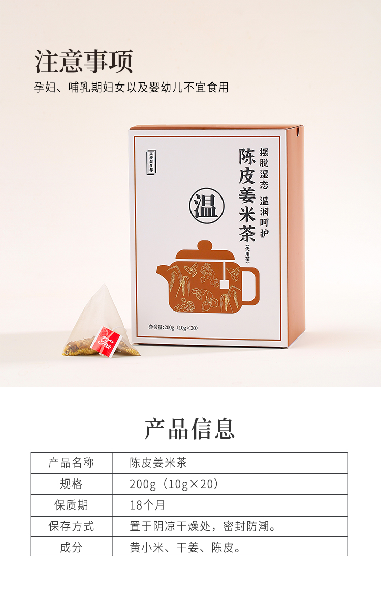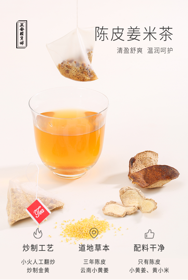 正安 陈皮姜米茶 源于圣济总录古方研发 湿气脾胃温暖着凉驱寒闹肚子 汤方办公室出游茶饮茶包 姜米茶 200g/盒(10g*20包)