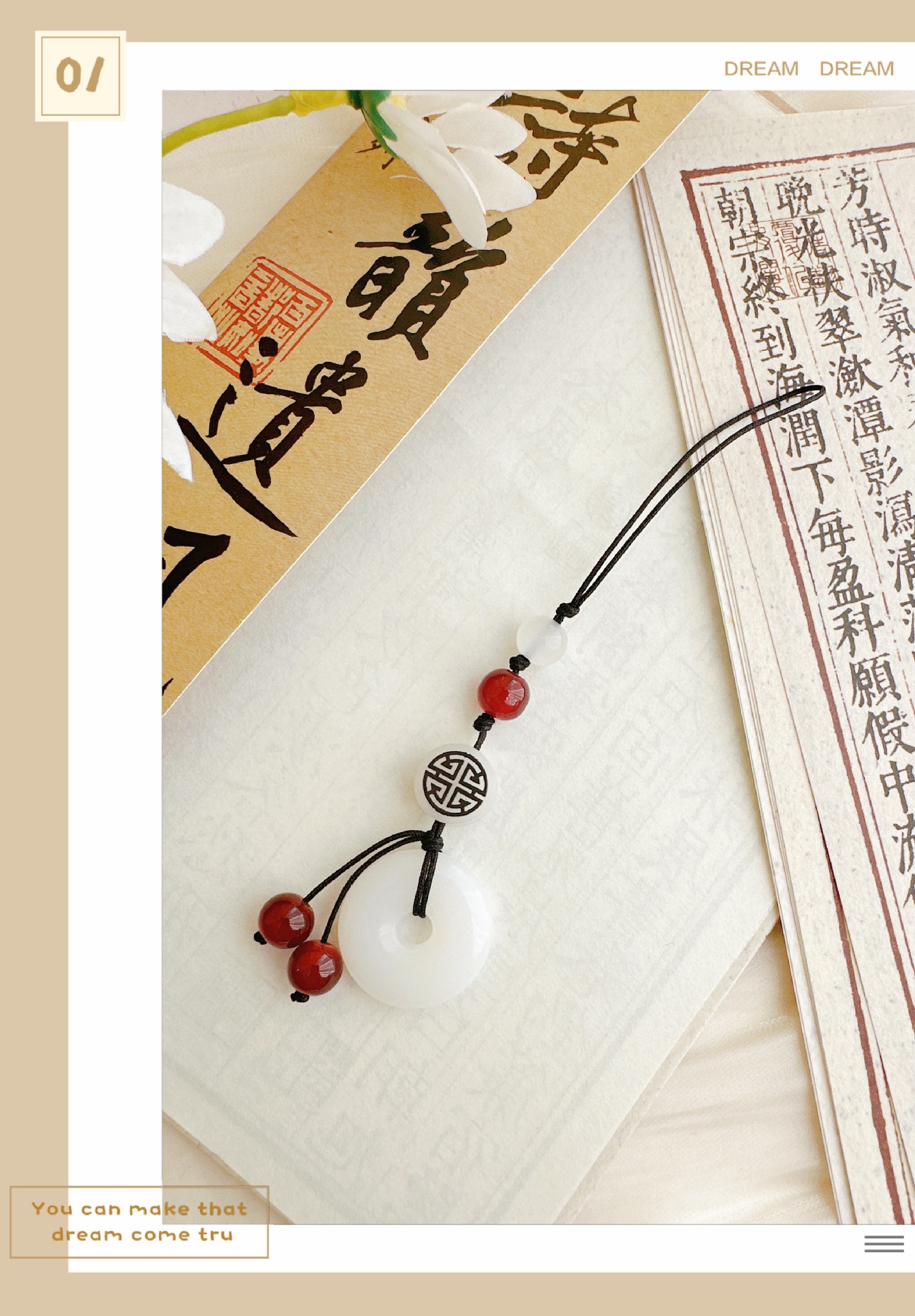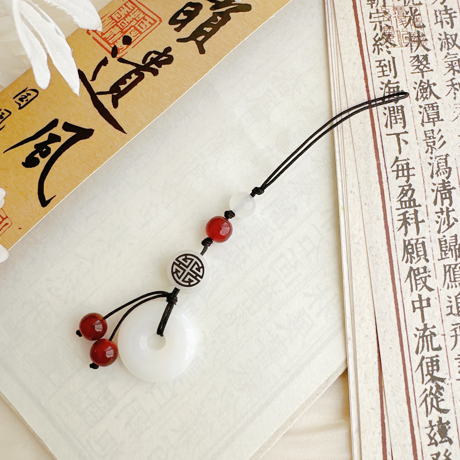 新中式古风国风仿玉平安扣菩提琉璃珠手机挂饰挂件饰品个性钥匙扣