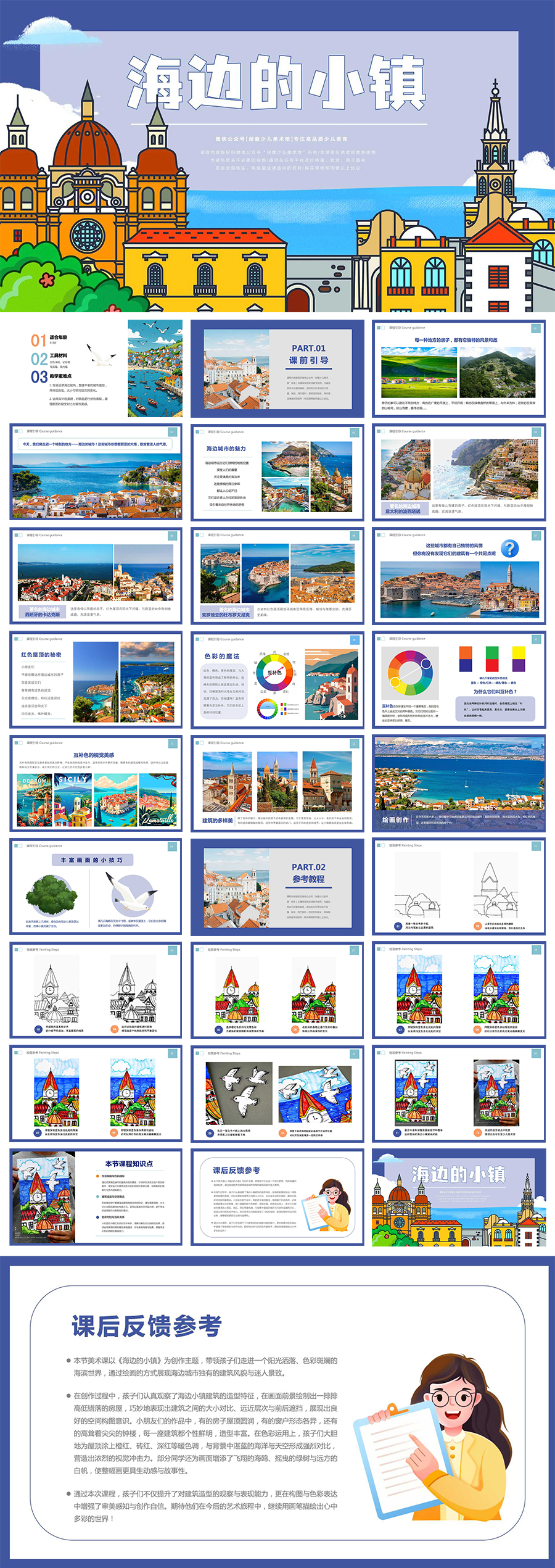 《互补色的魅力:夏日的海边小镇》房子建筑海鸥夏天【自动发货:下单后,点击手机短信中收到的链接,即可获取文件下载的链接;如有任何问题,可添加客服微信hm33268获得帮助】
