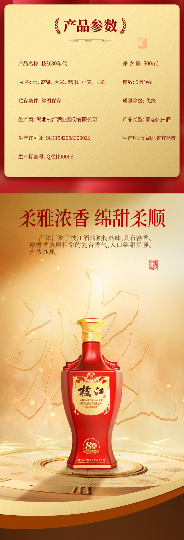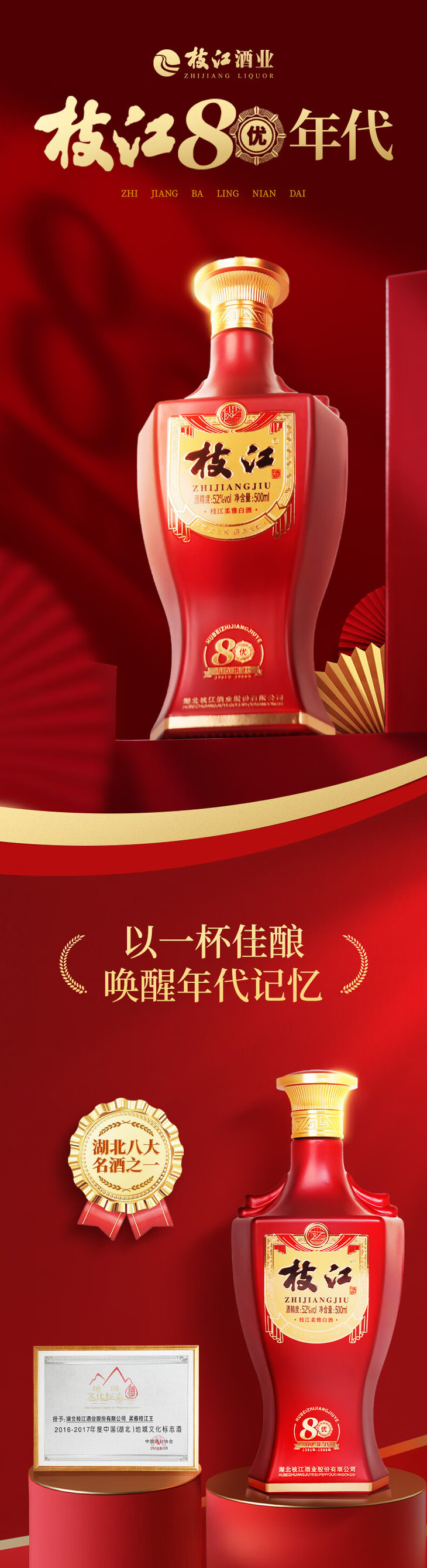 【大事观澜】 枝江50年代、枝江80年代坚持纯粮固态发酵、传承匠心技艺,以高品质致敬经典。酒体汇聚了枝江酒的独特韵味,具有窖香、粮糟香层层相融的复合香气,入口绵甜柔顺、自然协调。 枝江50年代、枝江80年代选用能唤醒年代记忆的外观设计。枝江50年代的瓶身图案用代表工业大建设的齿轮元素来彰显年代感,用手绘形式的枝江酒业标志性大楼来纪念1952年更名为“枝江县酒厂”这一重要事件。枝江80年代的视觉元素以仿奖章的图案寓意枝江酒业获得的辉煌荣誉:“1988年枝江大曲和枝江小曲双双获湖北省金钟奖,被定为湖北八大名酒之一”。瓶身外观设计,在颇具时代感的同时也完美契合宴席聚饮场景。 【使用须知】 买二送一限定宴席使用酒活动规则 1、限定宴席场景,宴席前送到酒店; 2、指定区域:伍家、西陵、高新、夷陵、猇亭; 3、赠送的一瓶必须在宴席场景开瓶扫码,酒水按组结算(买二送一,一组为三瓶)。 4、下单之前认真咨询所在团队负责人,最终解除权宜昌在高新区真年份酒类商行。 |