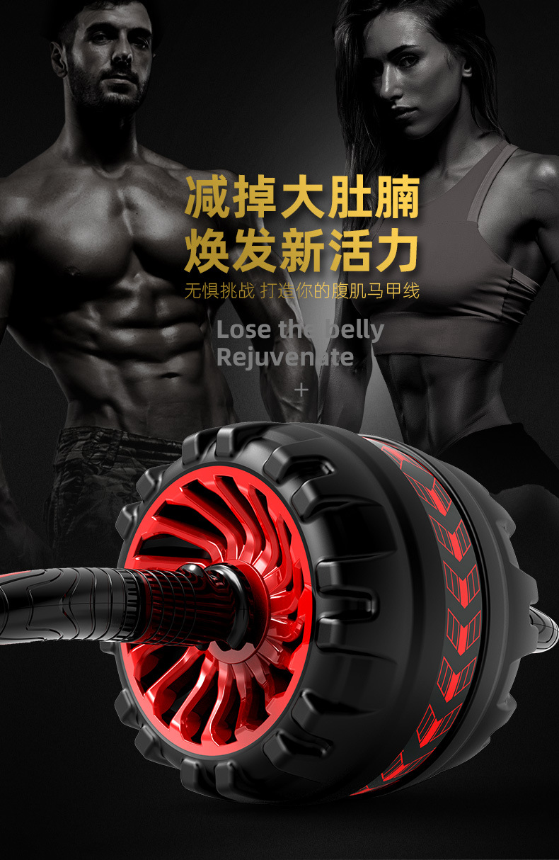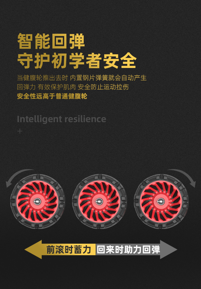 【下单就送加厚跪垫】加强二代静音自动回弹健腹轮,初学者家用健身轮【226-1】