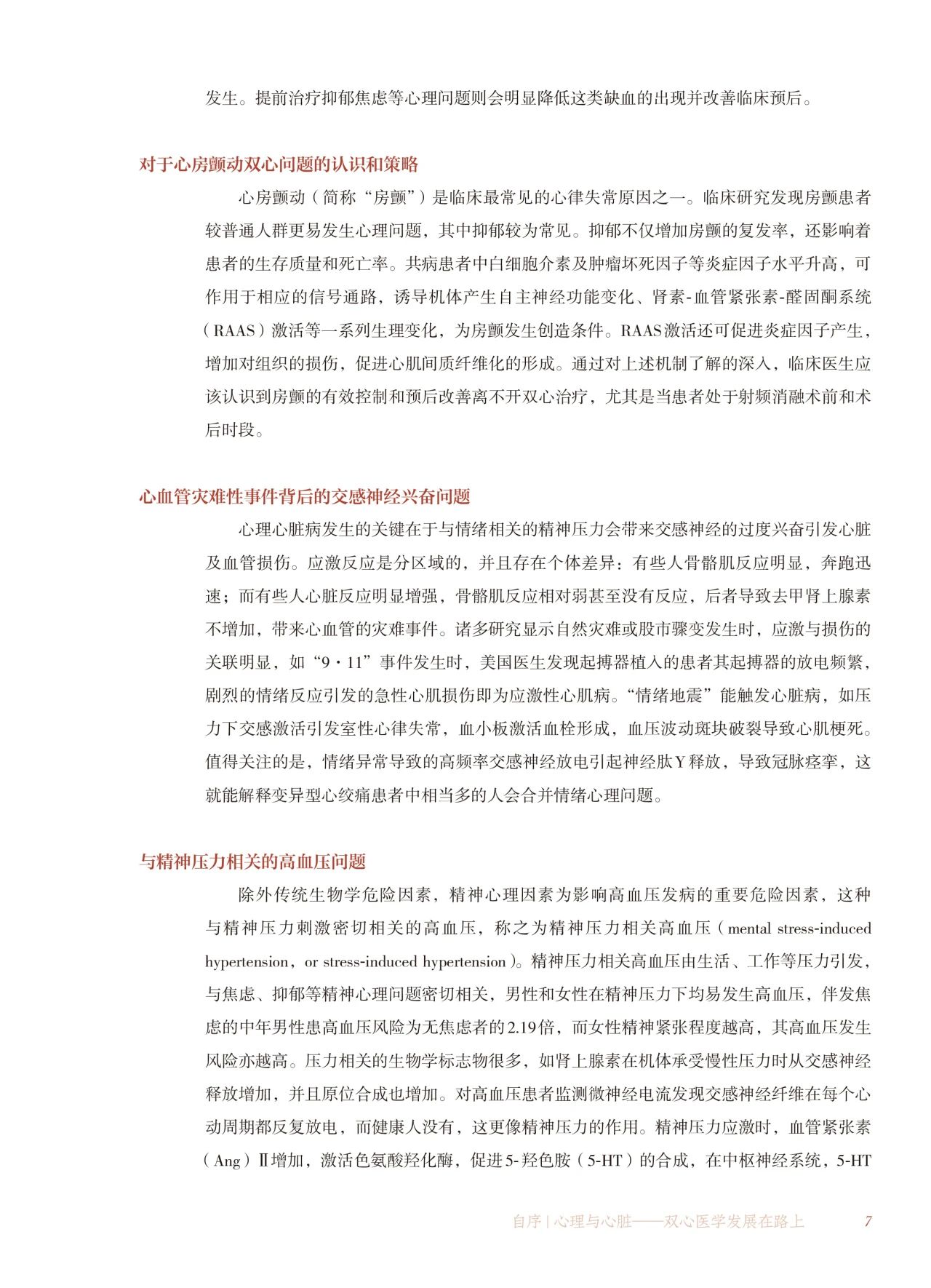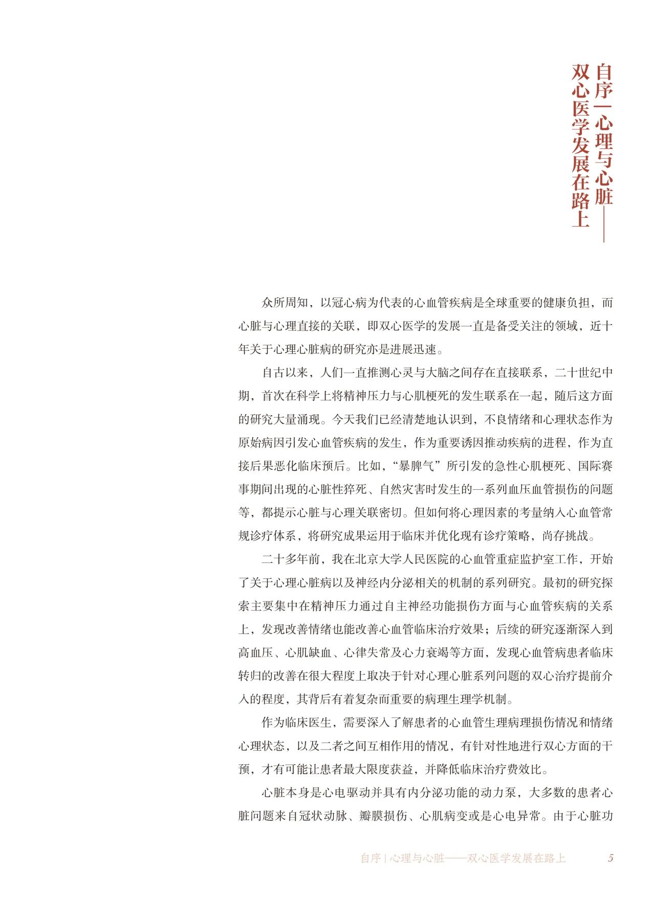 内容包括:临床常见的双心疾病的诊断、治疗及预后;神经调节、基因表达、免疫功能、炎症等在双心疾病发病中的变化;双心疾病的检查和用药规范。本书主要面向广大的临床医生尤其是心内科医生,期望帮助他们深入地认识心理在心血管疾病转归中的作用,及时识别出患者的心理问题,为解决患者的病痛拓展新的思路。