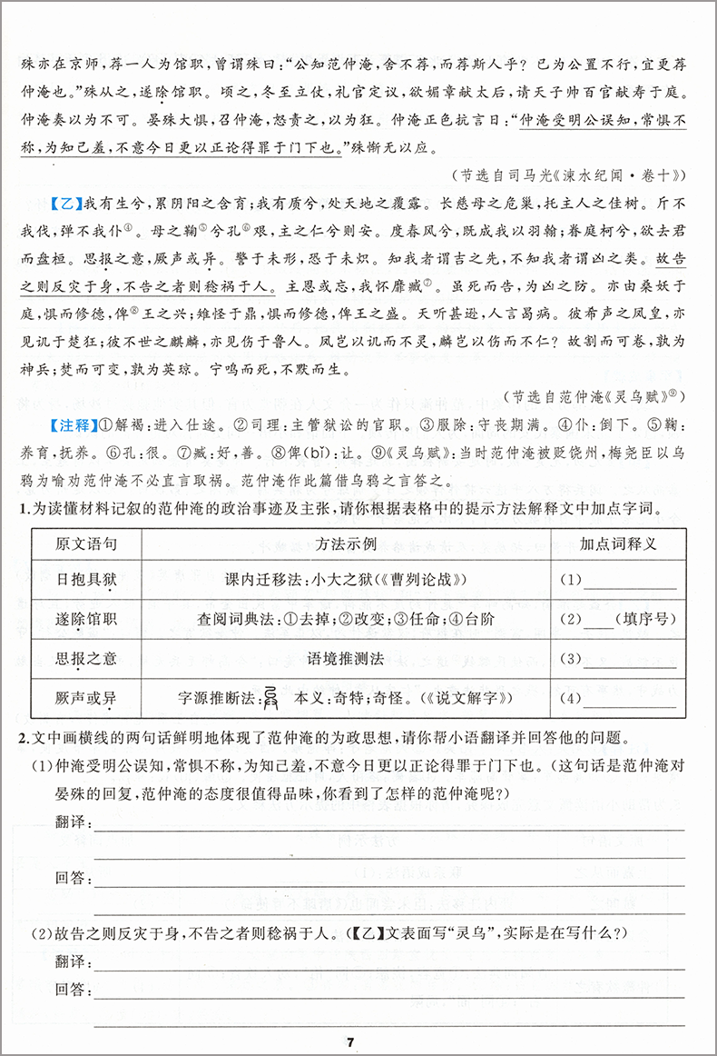 2025初中课外文言文阅读与传统文化七年级八年级九年级中考