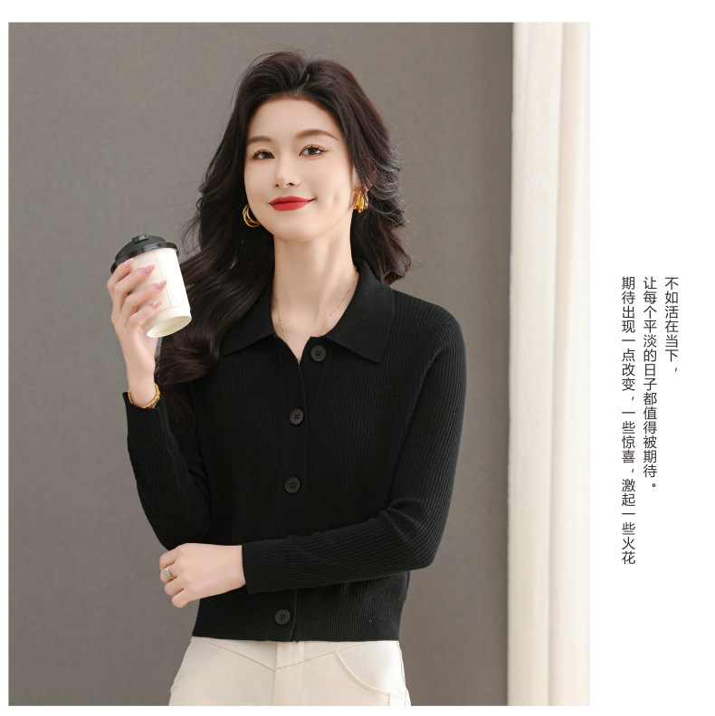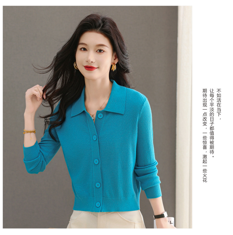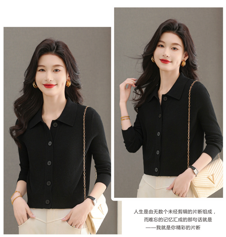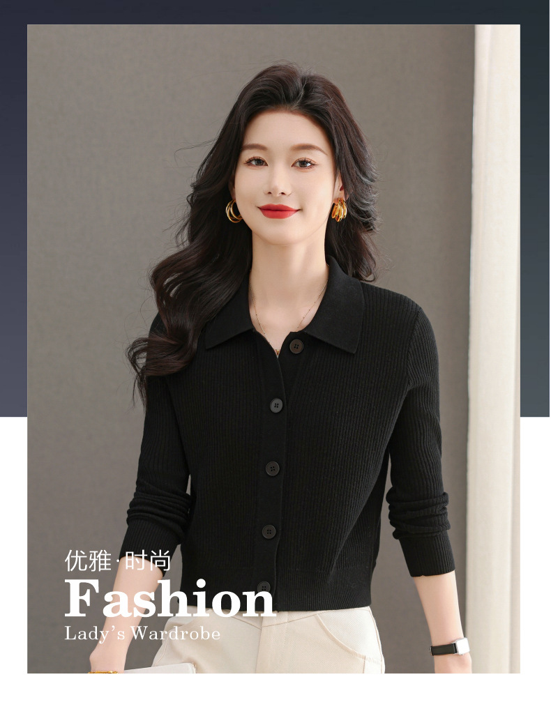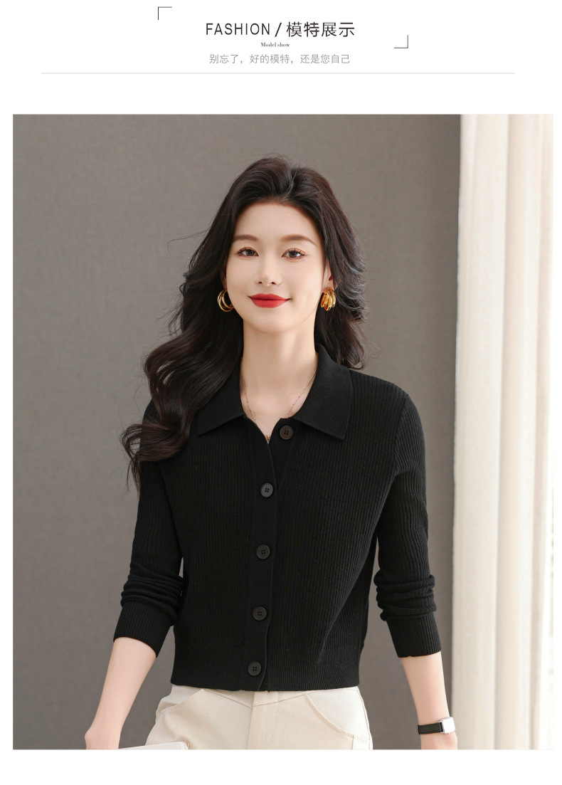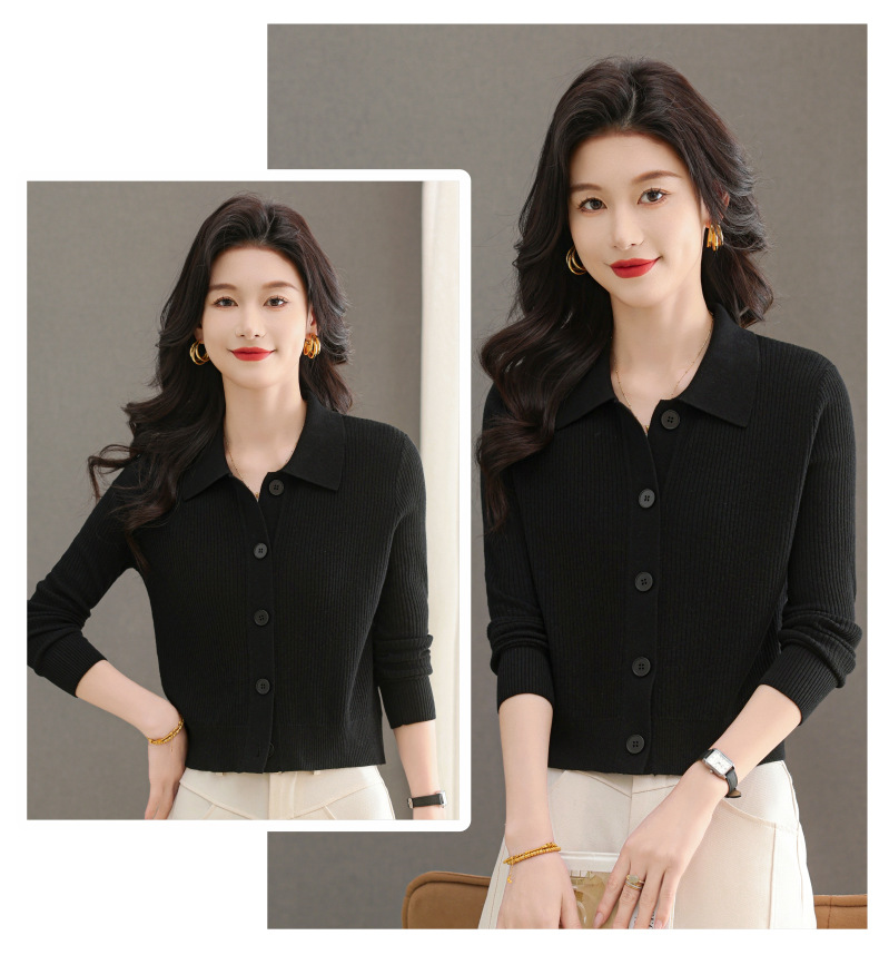 CC-103-A18102小个子针织开衫女士春秋季上衣2025新款娃娃领宽松短款毛衣外套女
