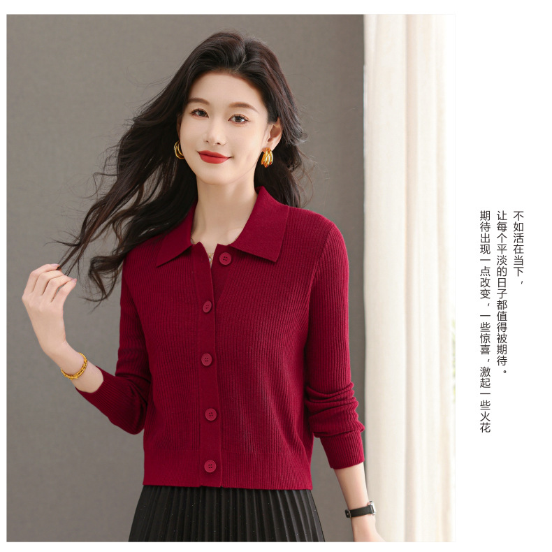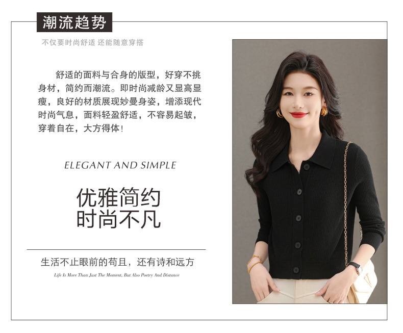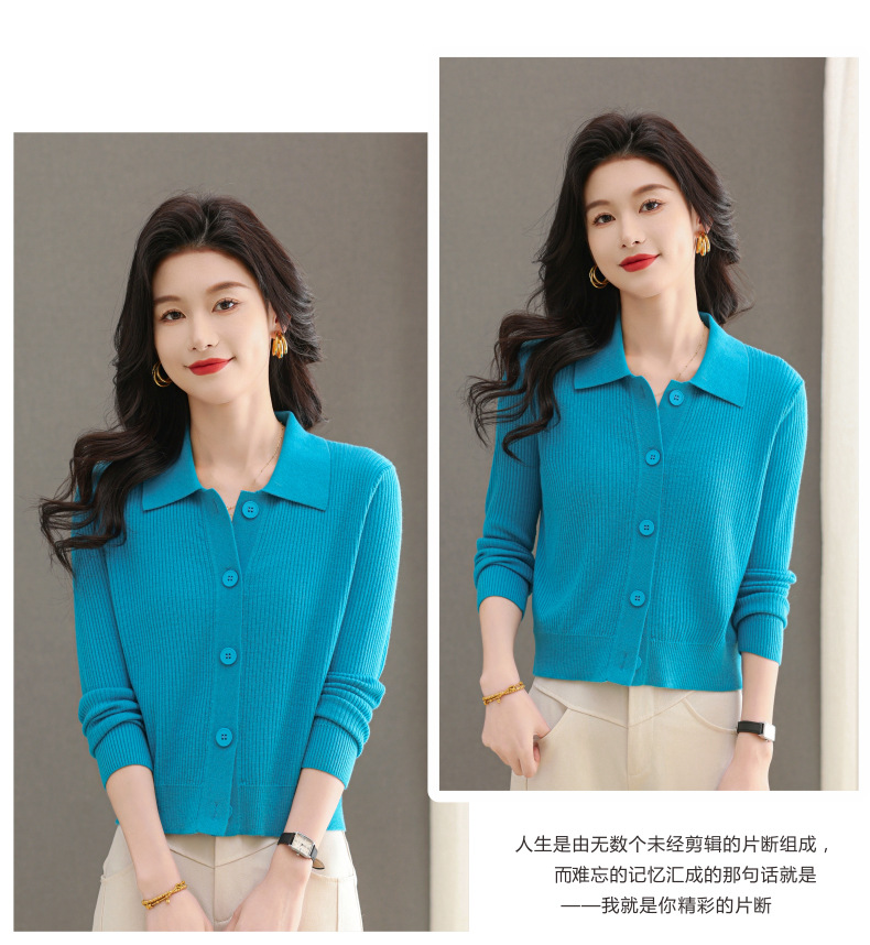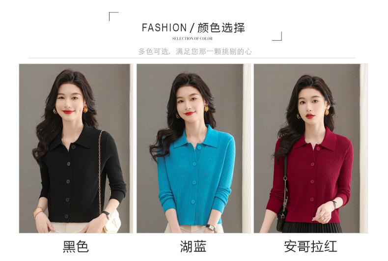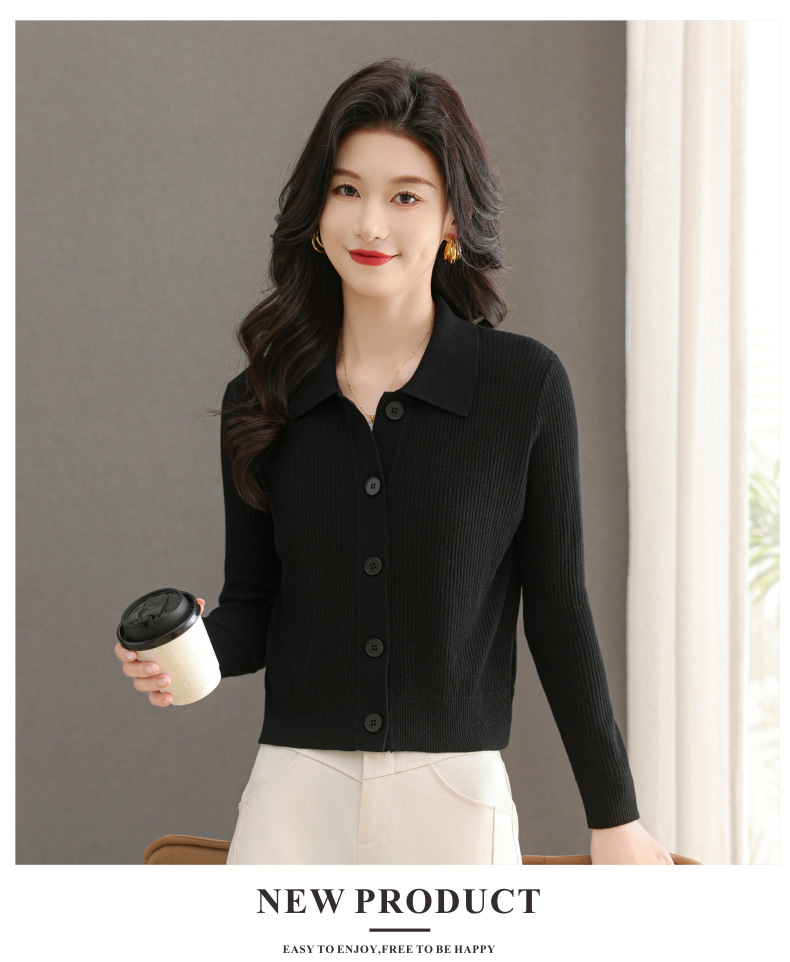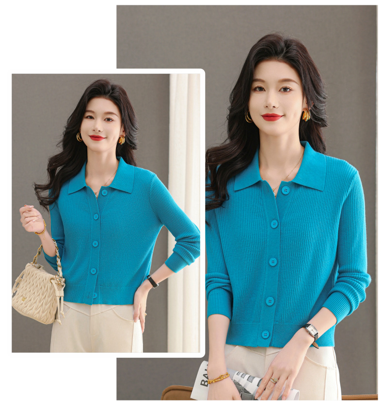 CC-103-A18102小个子针织开衫女士春秋季上衣2025新款娃娃领宽松短款毛衣外套女