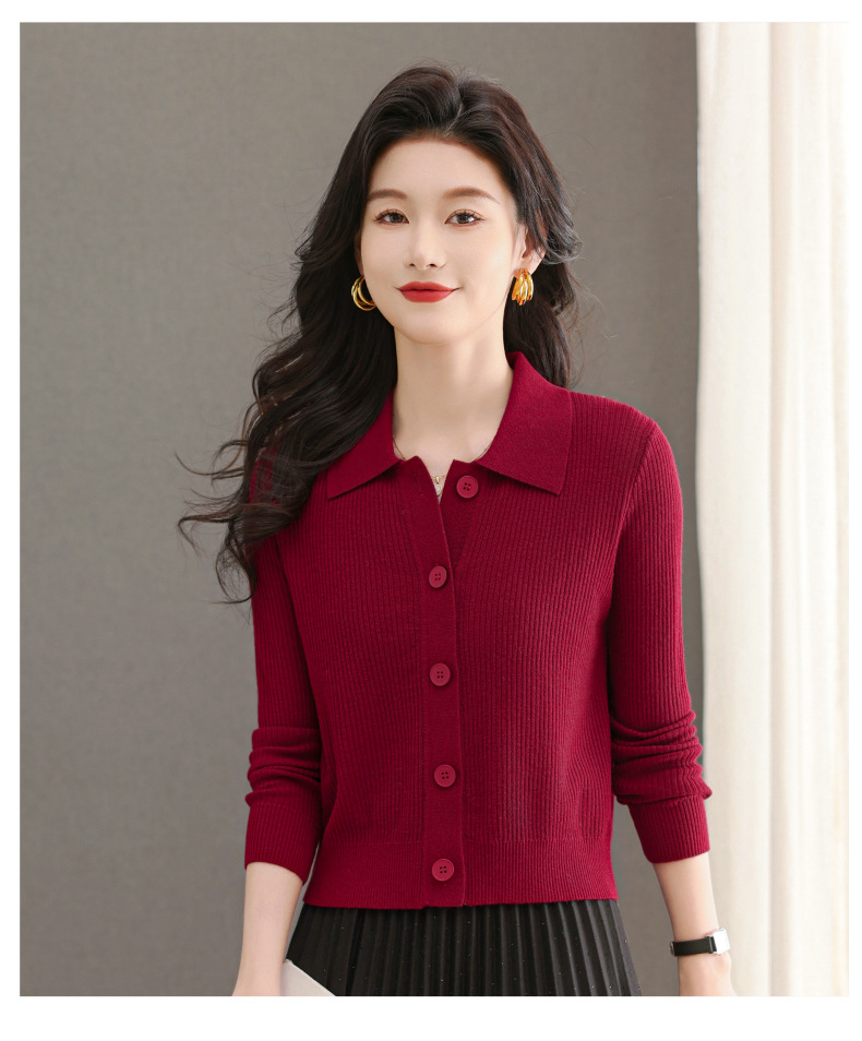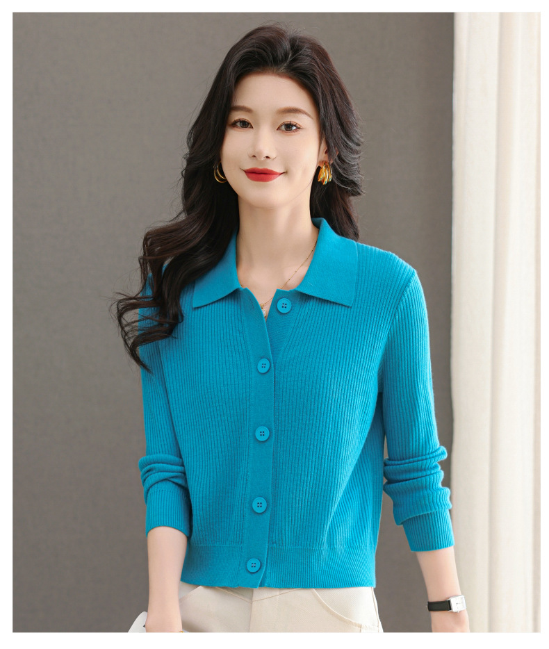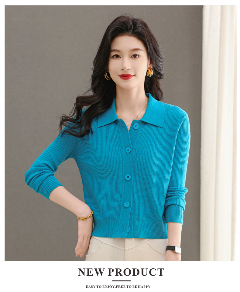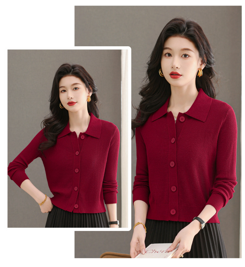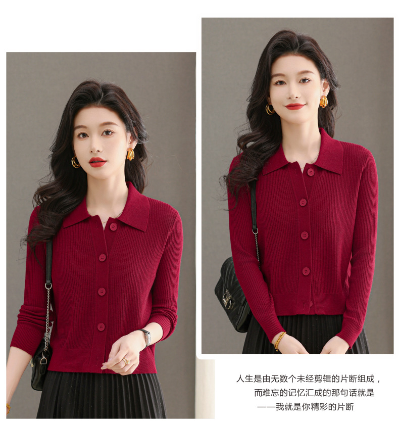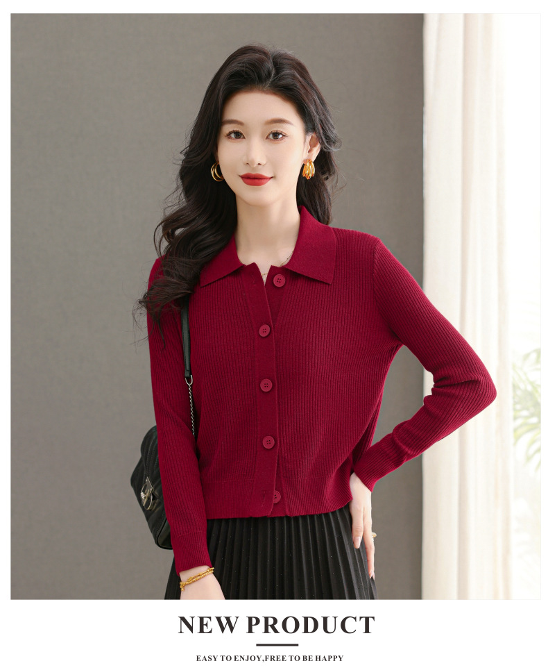 CC-103-A18102小个子针织开衫女士春秋季上衣2025新款娃娃领宽松短款毛衣外套女