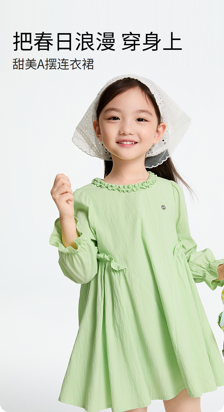 女童长袖连衣裙春季新款安奈儿童装实体店同款XG513513