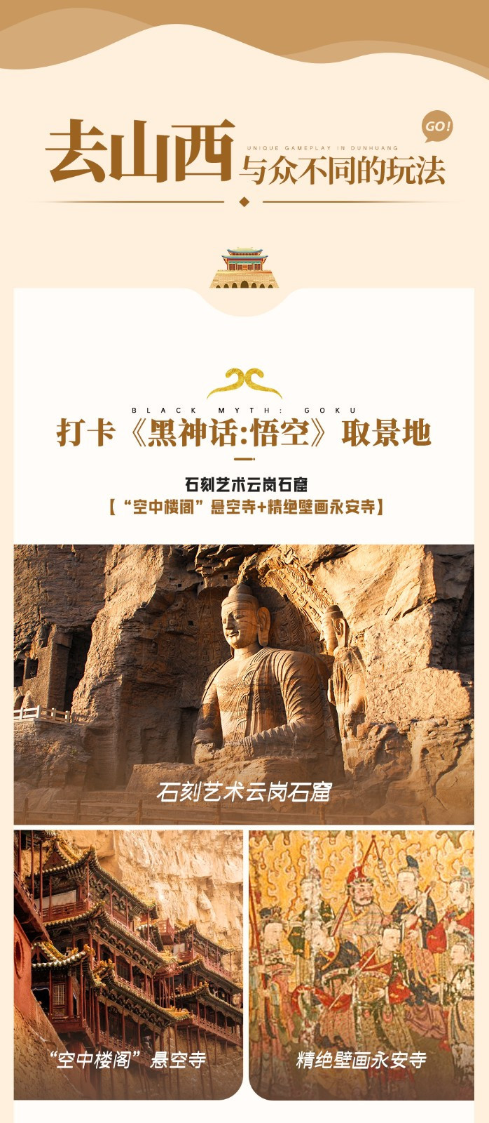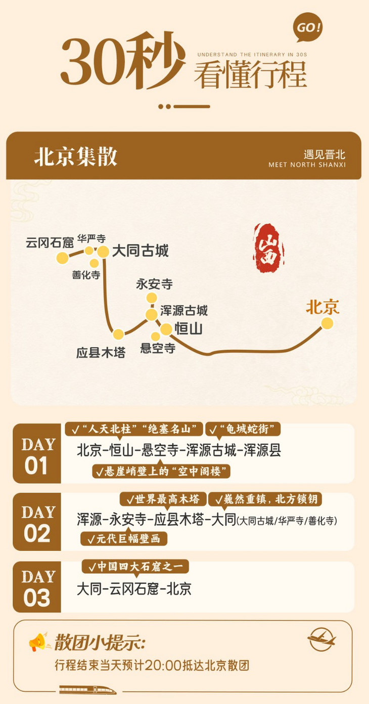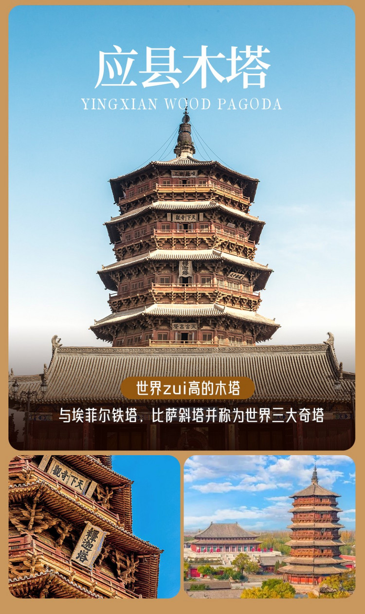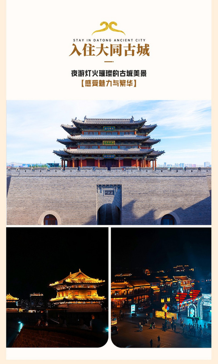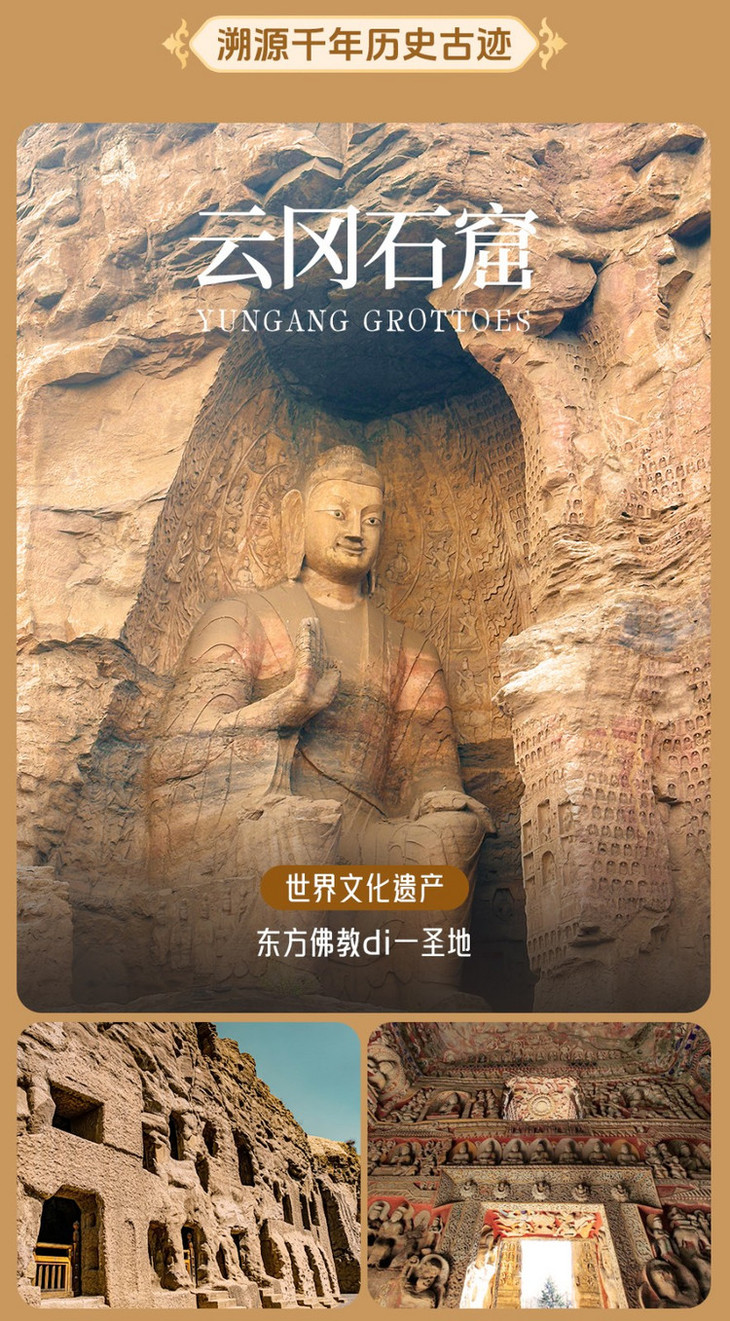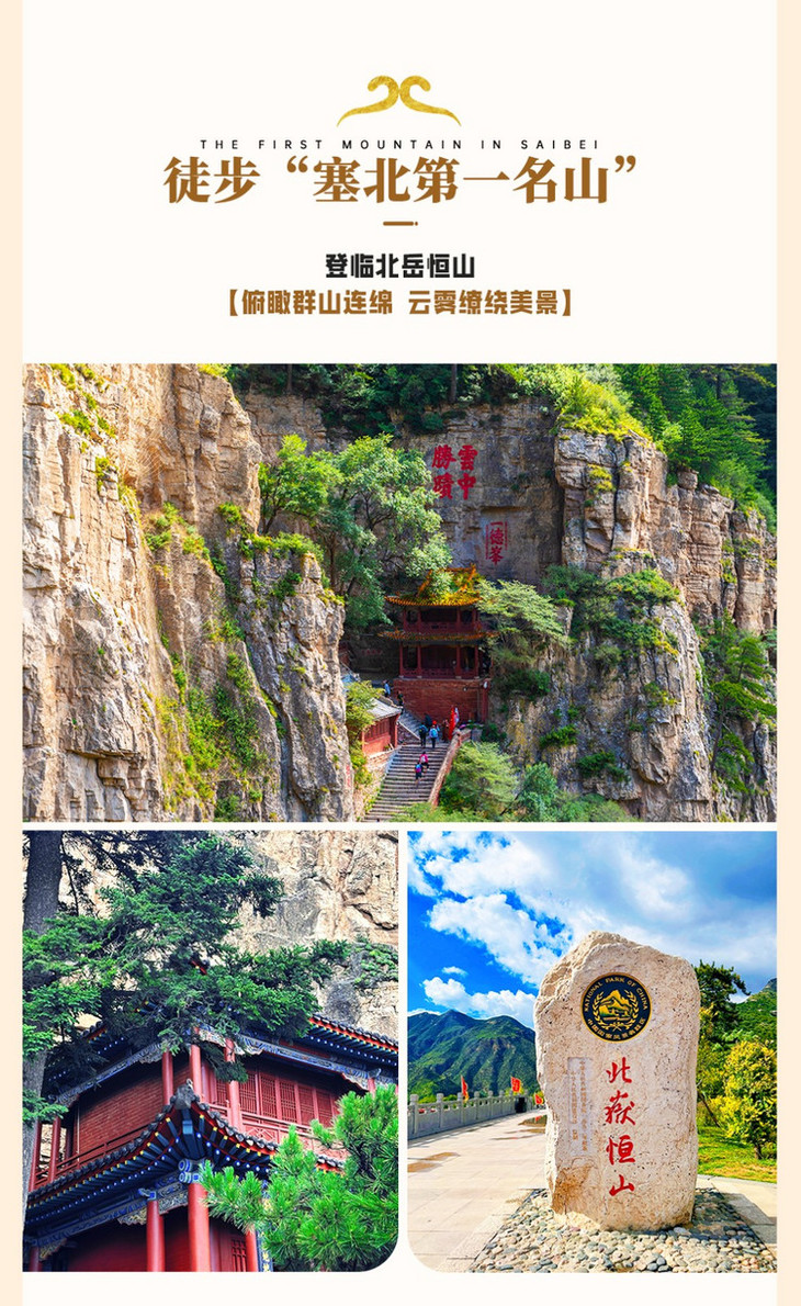 【门票】:云冈石窟首道门票120元、悬空寺首道门票15元、恒山门票45元+往返景交车20元、应县木塔50元、永安寺20元(自行提前景区微信公众号预约门票)可根据需求自愿选择