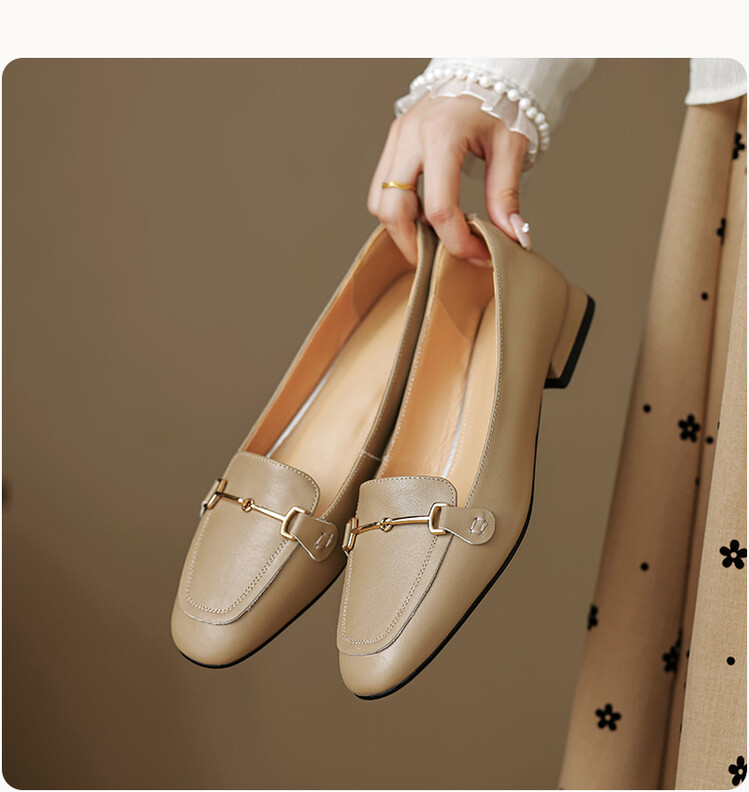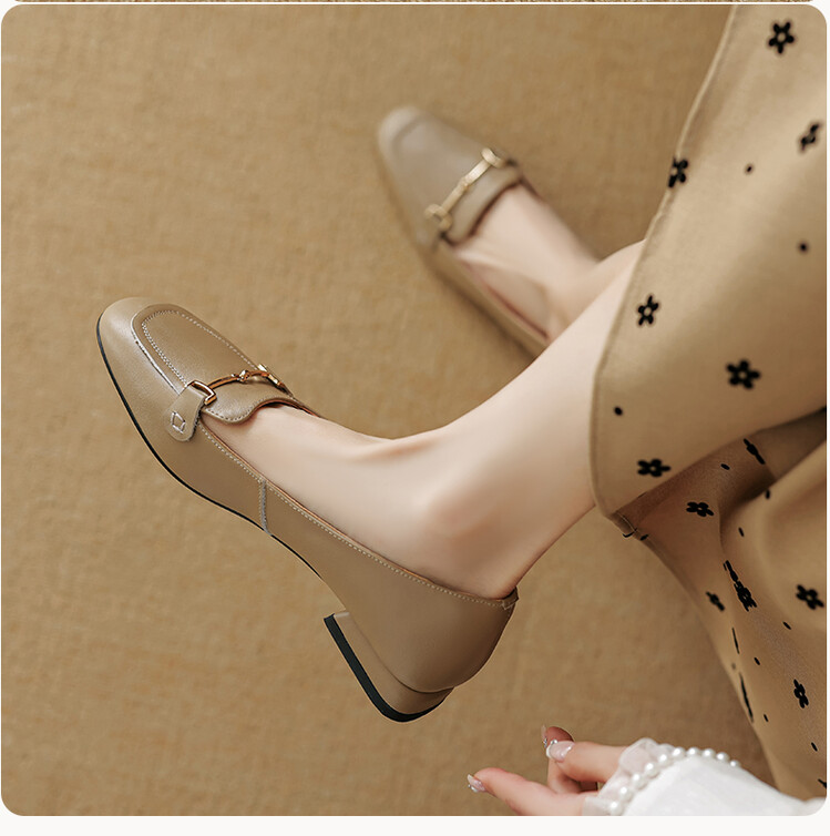 【预售5天】软皮复古单鞋圆头中跟鞋粗跟秋季新款女士皮鞋QCNX&78-3