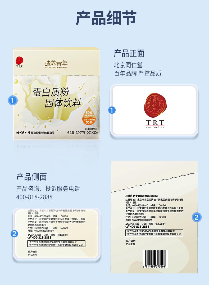 北京同仁堂 乳清蛋白质粉礼盒装600g(10g/袋*60袋) 蛋白质粉 独立小包装 SY