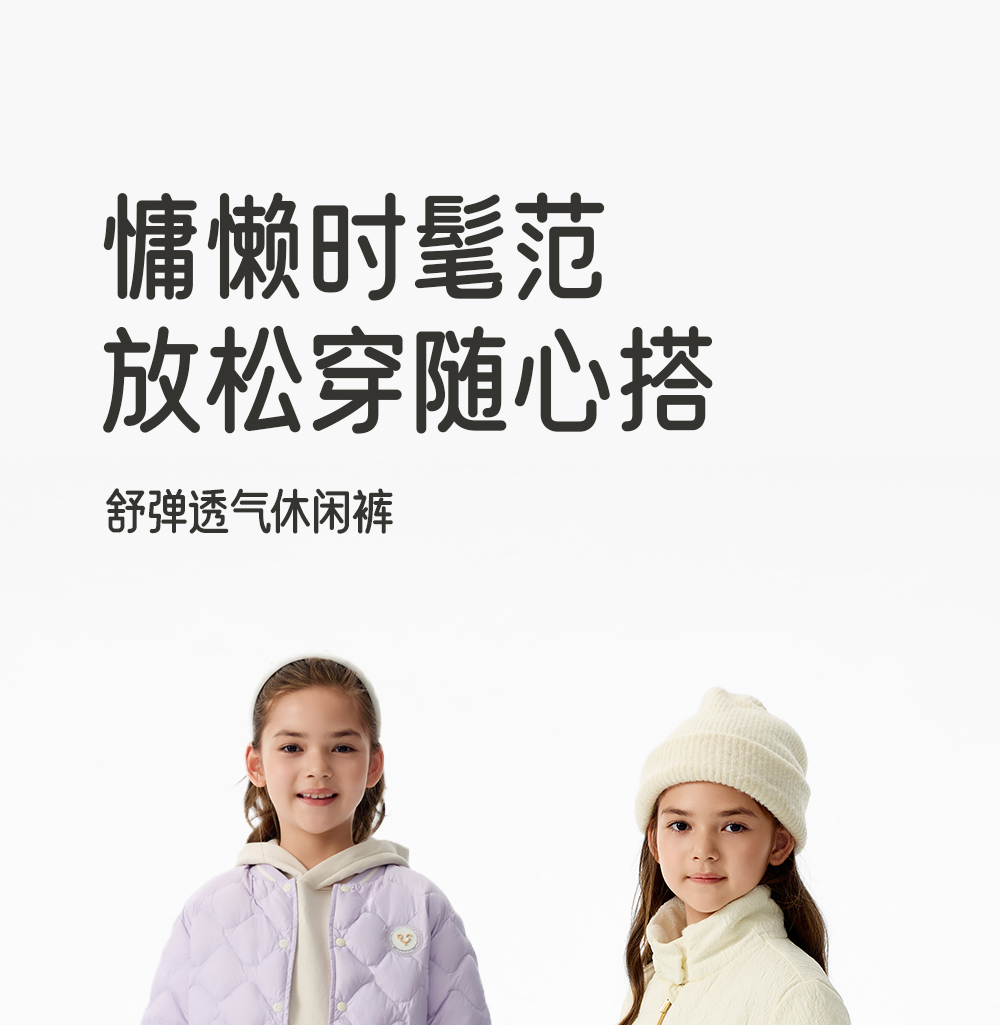 英氏儿童裤子秋冬新款女童保暖束脚裤百搭纯色中大童女生休闲卫裤
