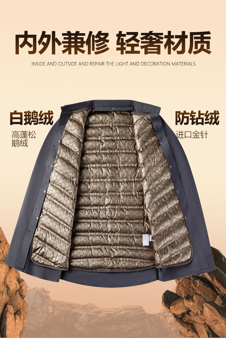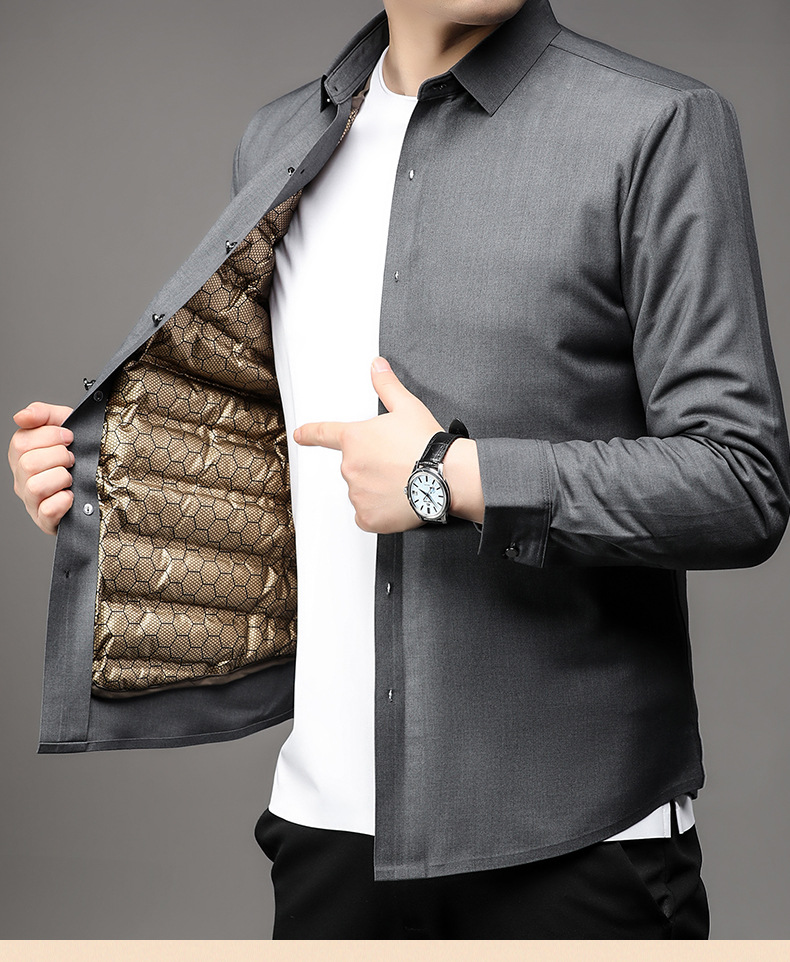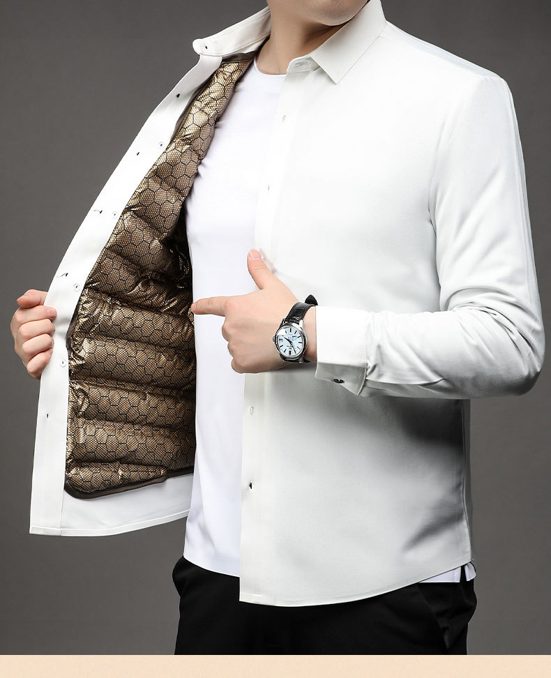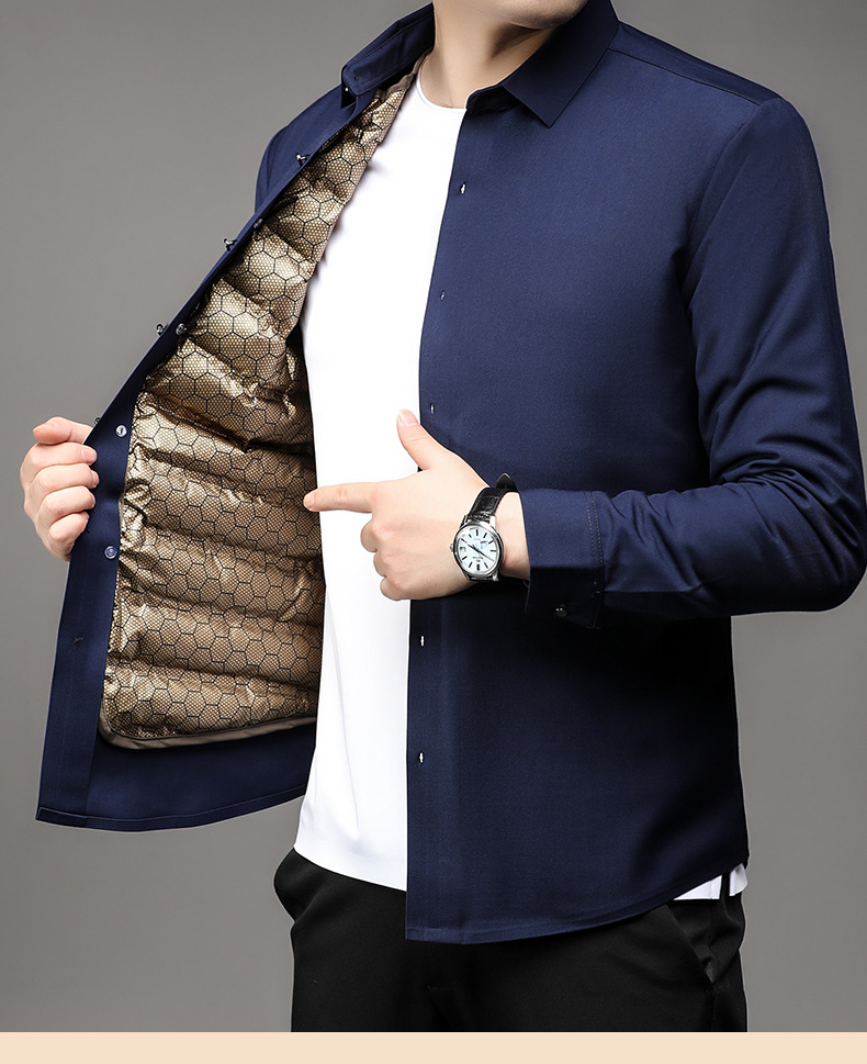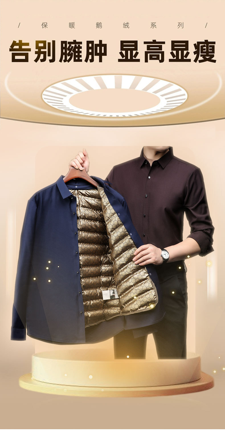 丁摩 石墨烯黑金男士白鹅绒衬衫秋冬加厚保暖可拆卸内胆羽绒衬衣5ZF-11224