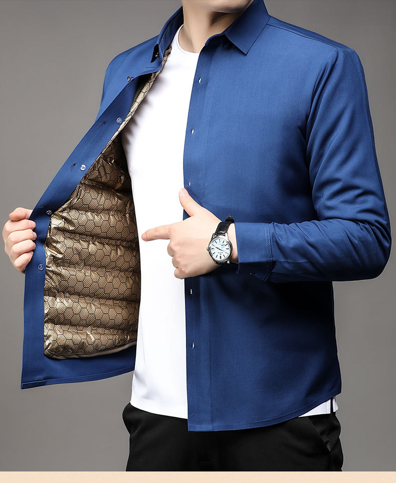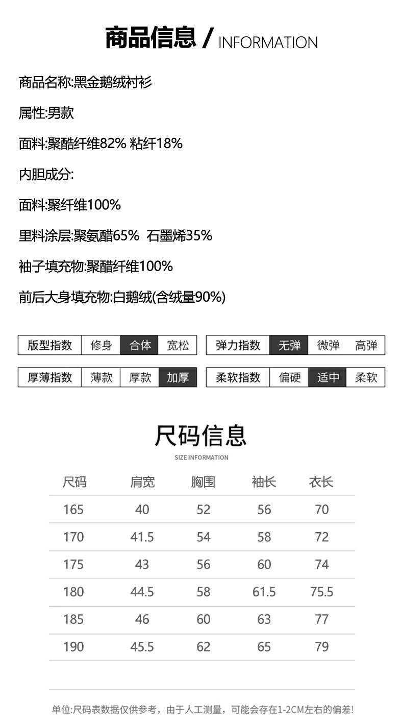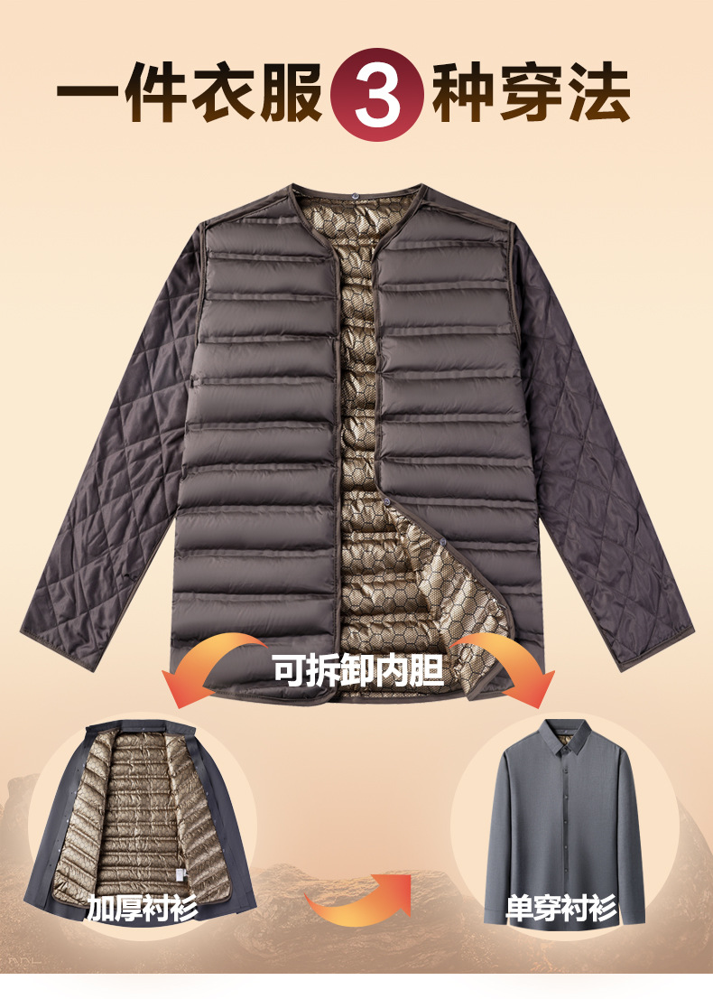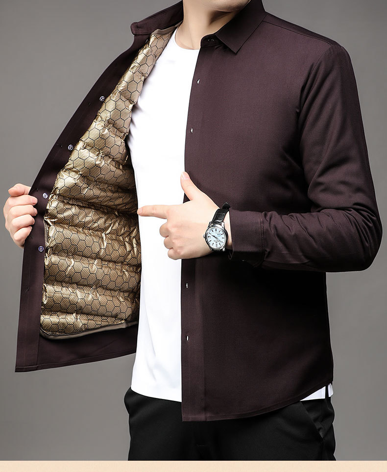 丁摩 石墨烯黑金男士白鹅绒衬衫秋冬加厚保暖可拆卸内胆羽绒衬衣5ZF-11224