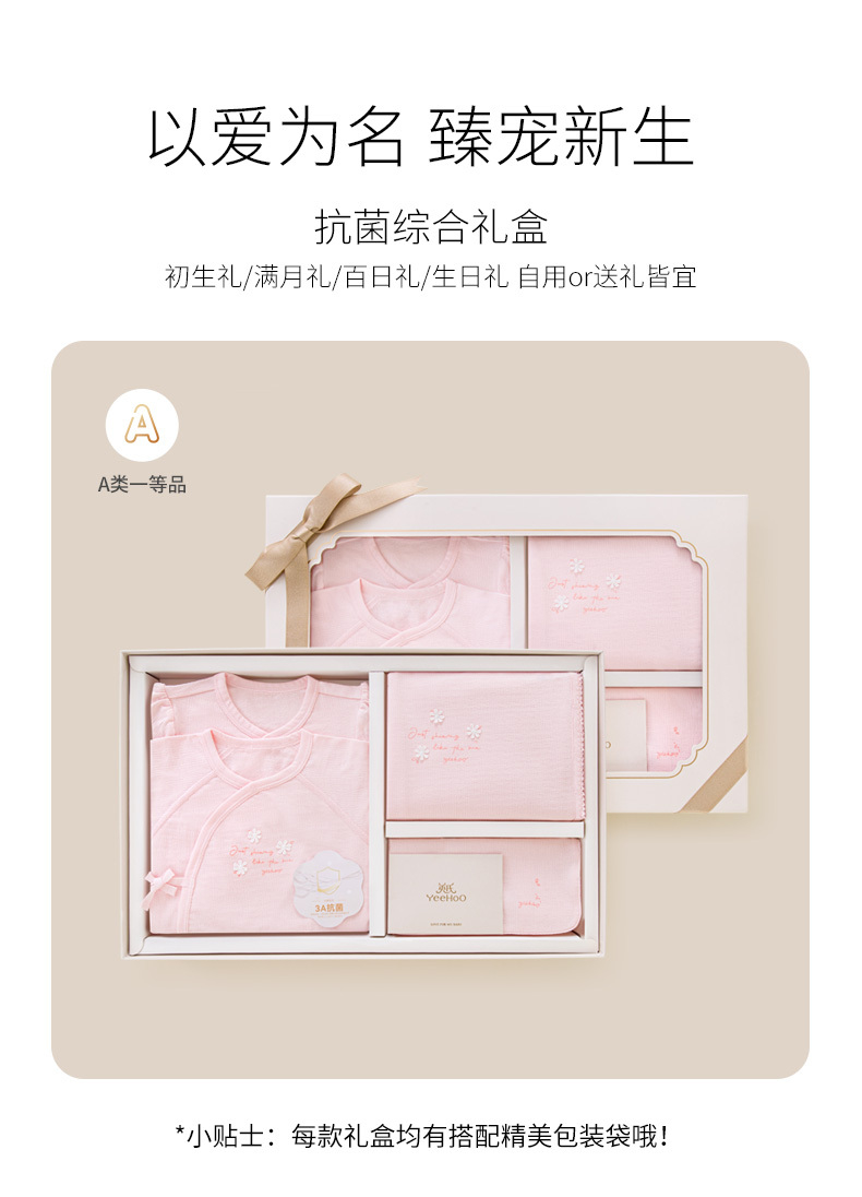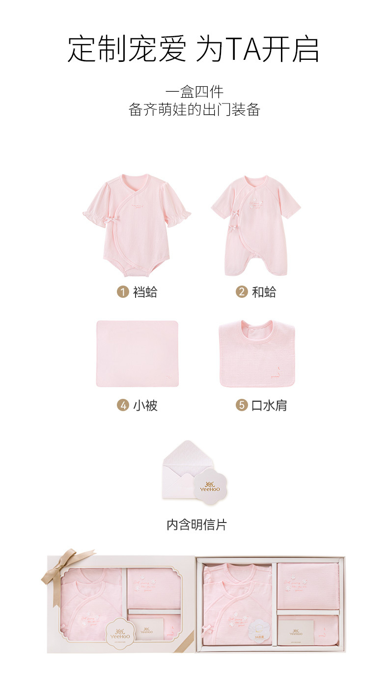 【商场同款】英氏新生婴儿礼盒满月初生衣服送礼高档礼盒4件套