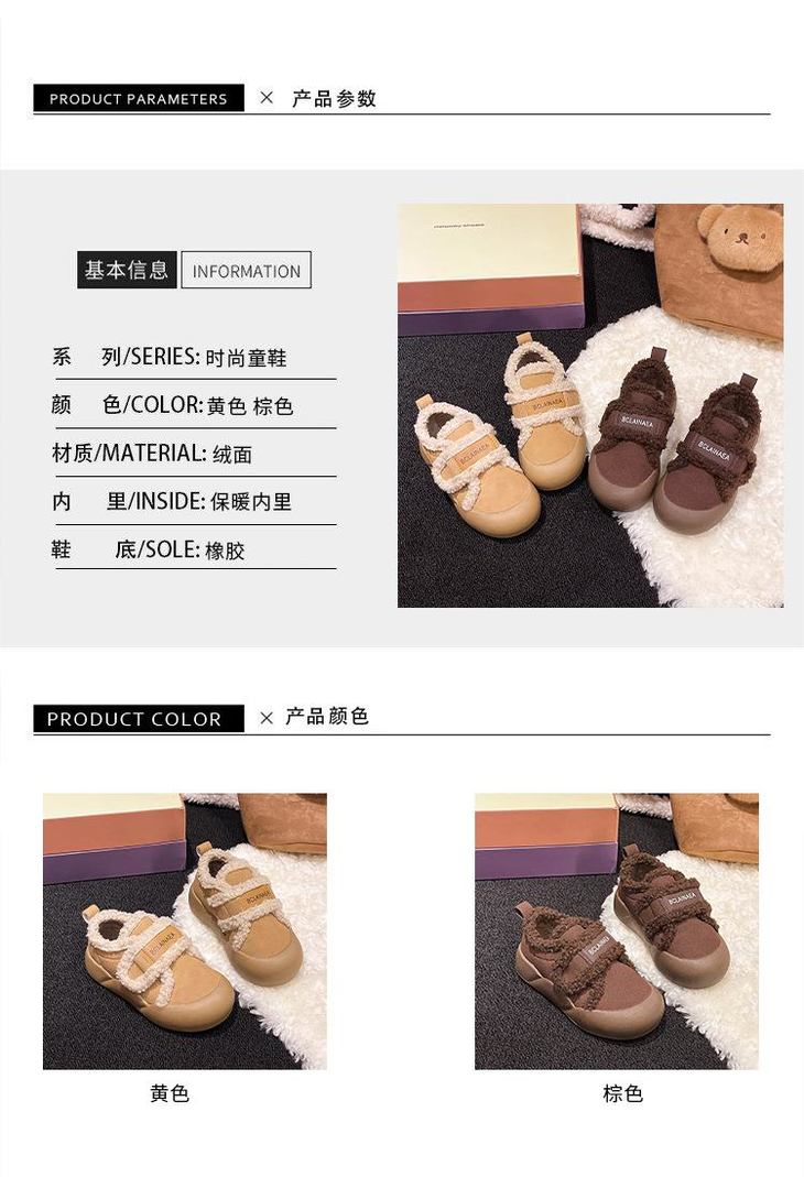 九峰鸟女童二棉鞋冬季新款儿童棉鞋秋冬鞋子加绒鞋冬款雪地靴毛毛鞋22-36