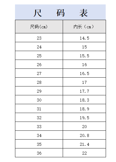 | 尺码: | 22-3 6详见尺码表 | |
