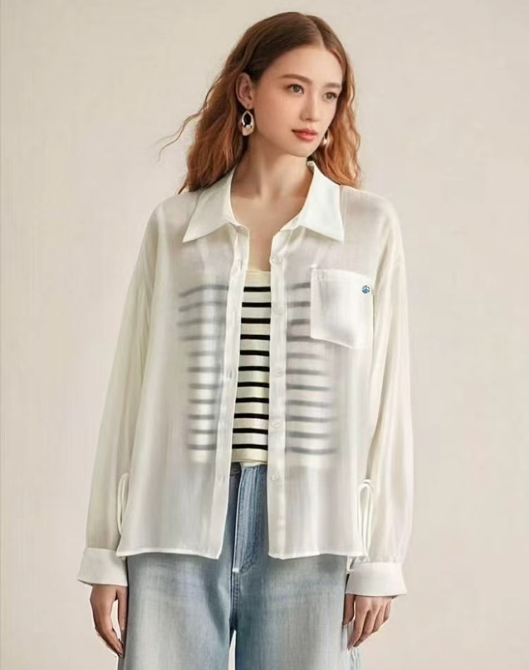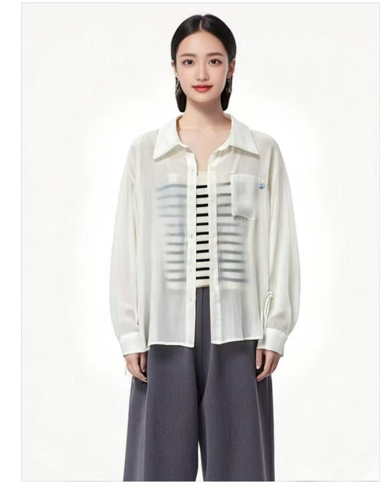 赠送吊带【时装系列】80%天丝侧边绑带夏季薄款衬衫防晒衫-喜出
