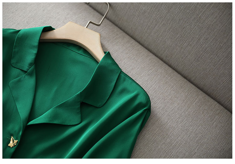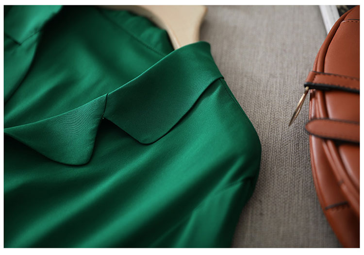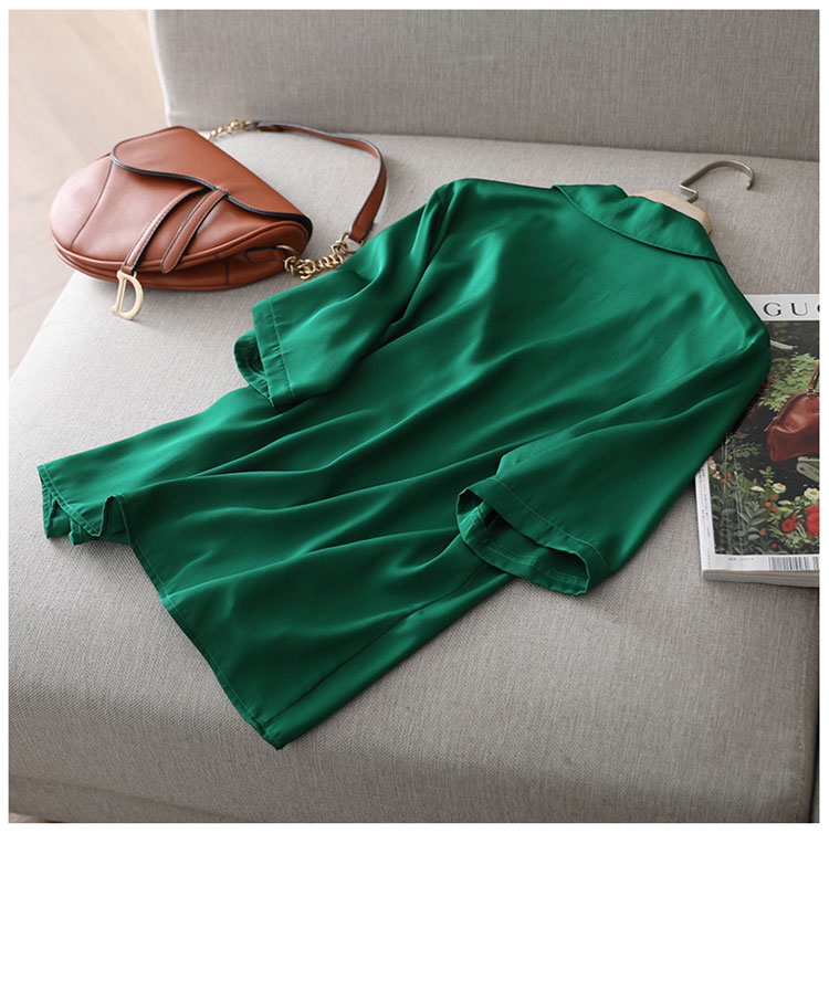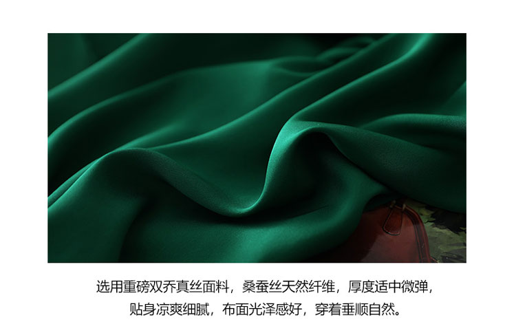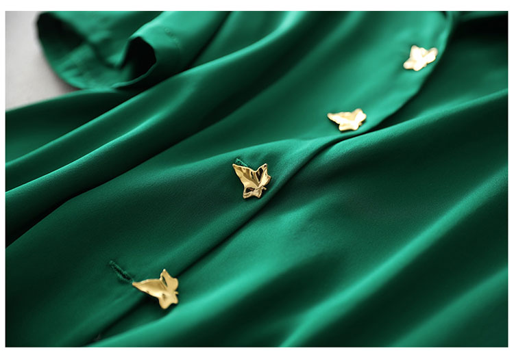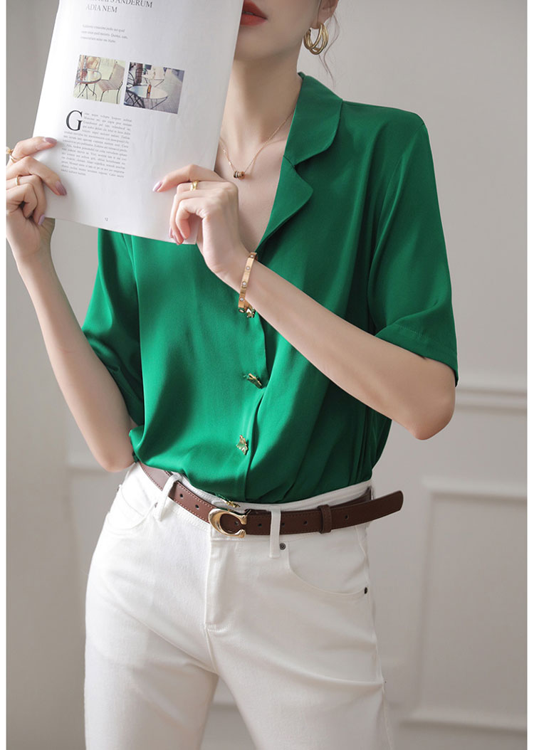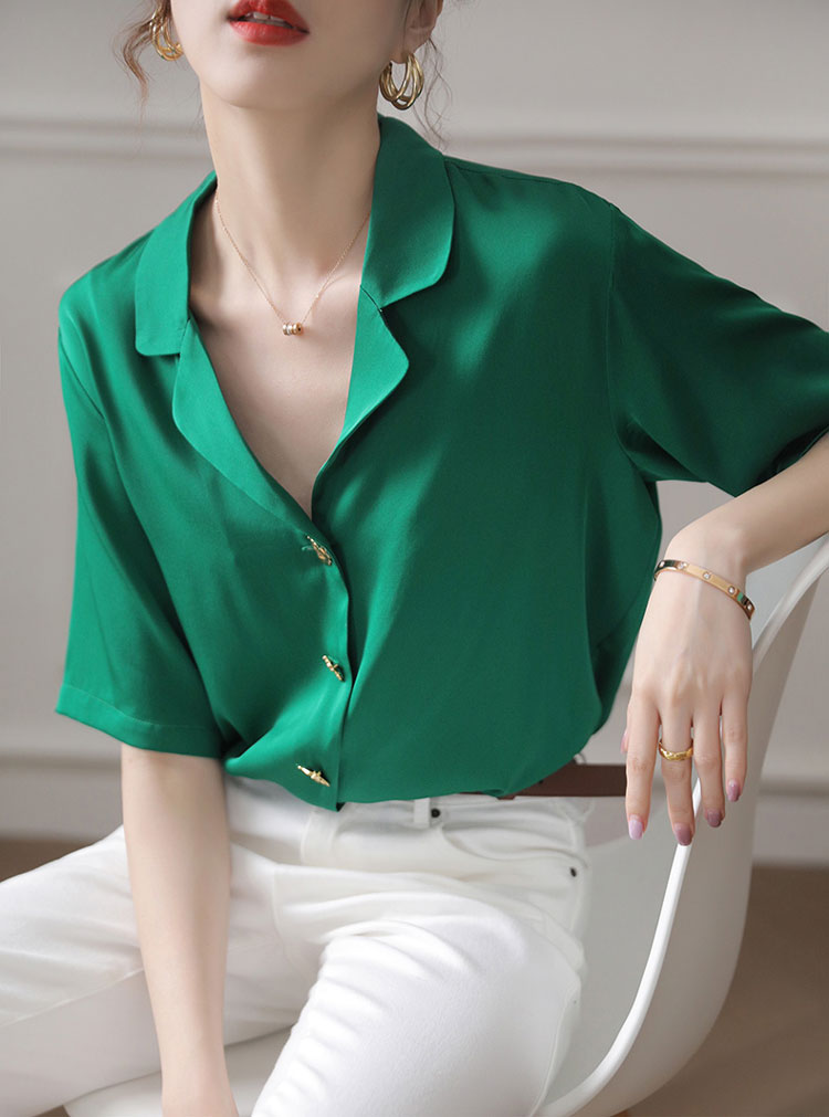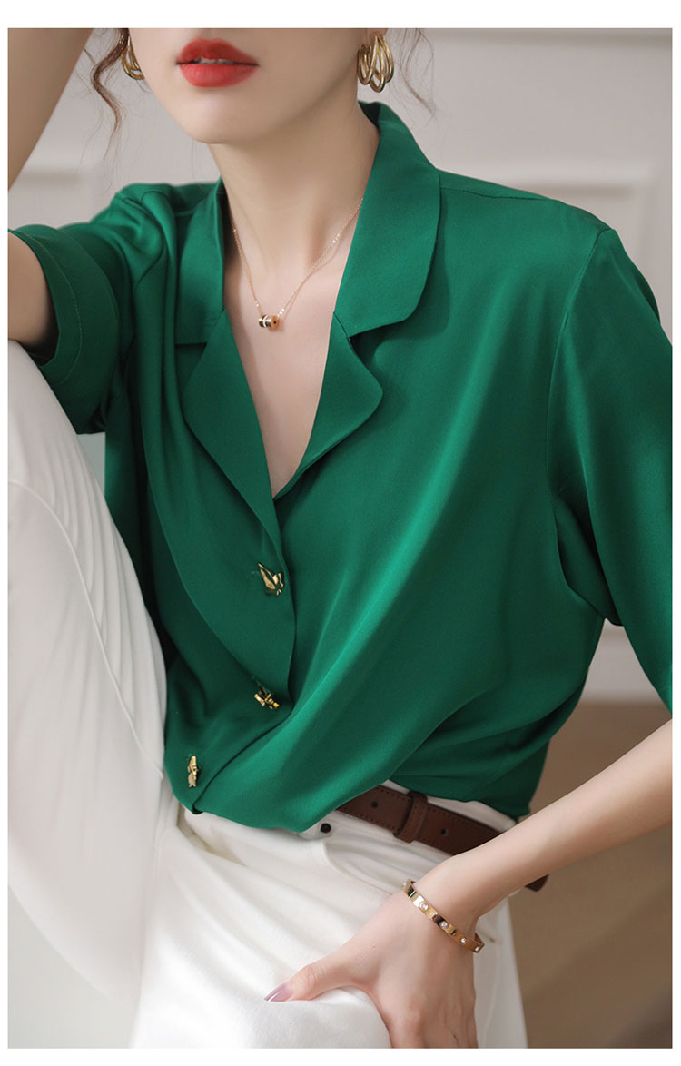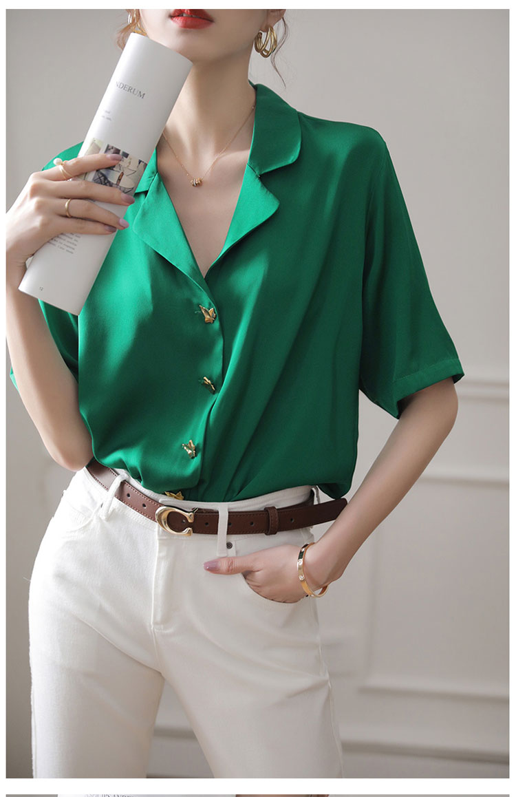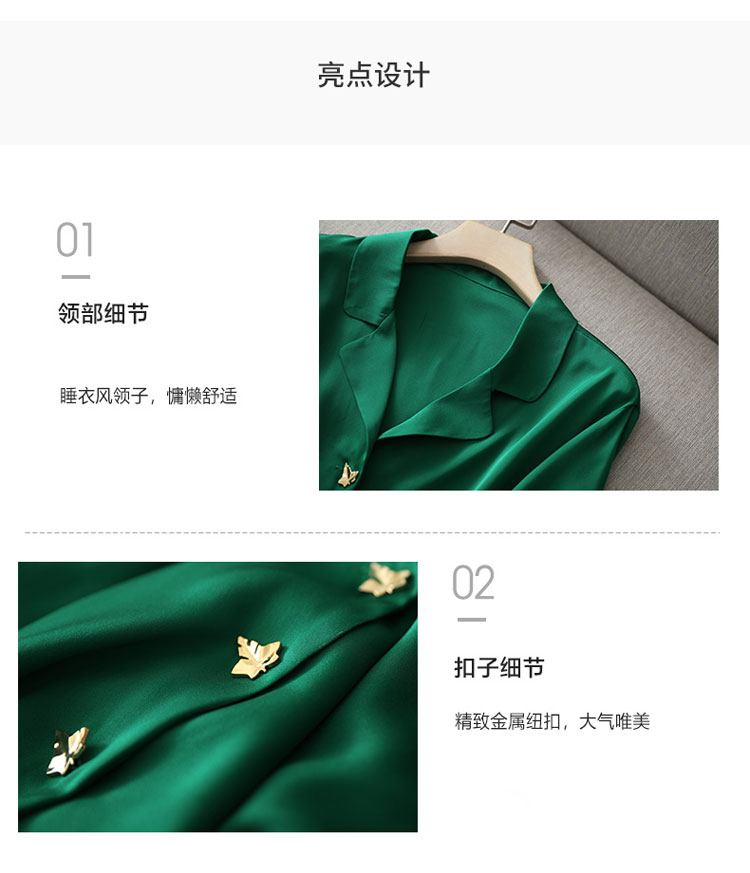 丁摩 真丝衬衫洋气时尚法式短袖绿色桑蚕丝衬衣上衣开衫Q122034