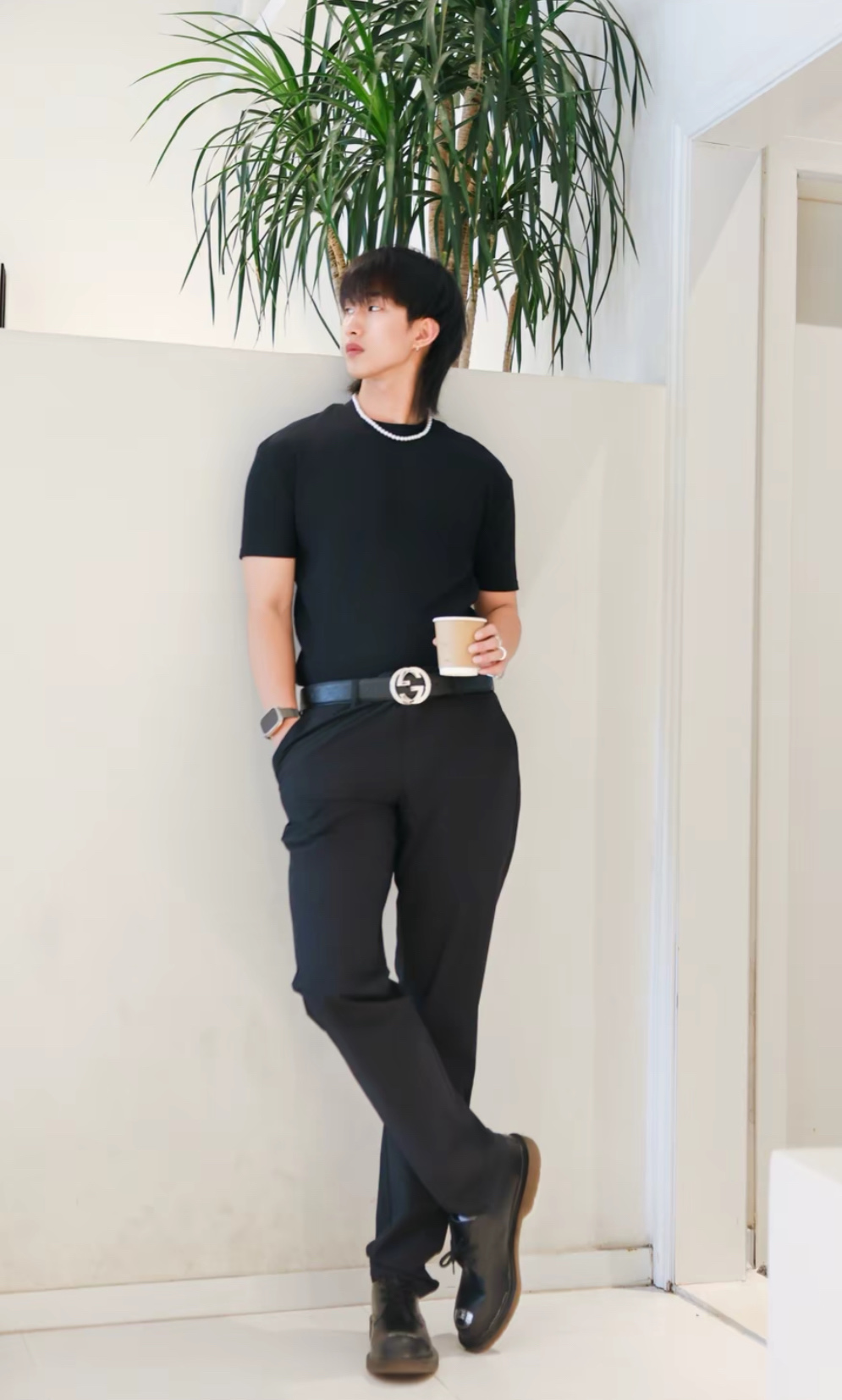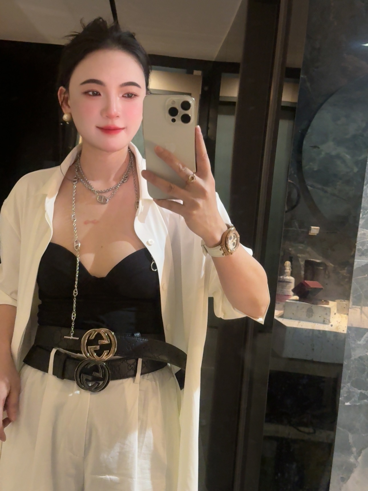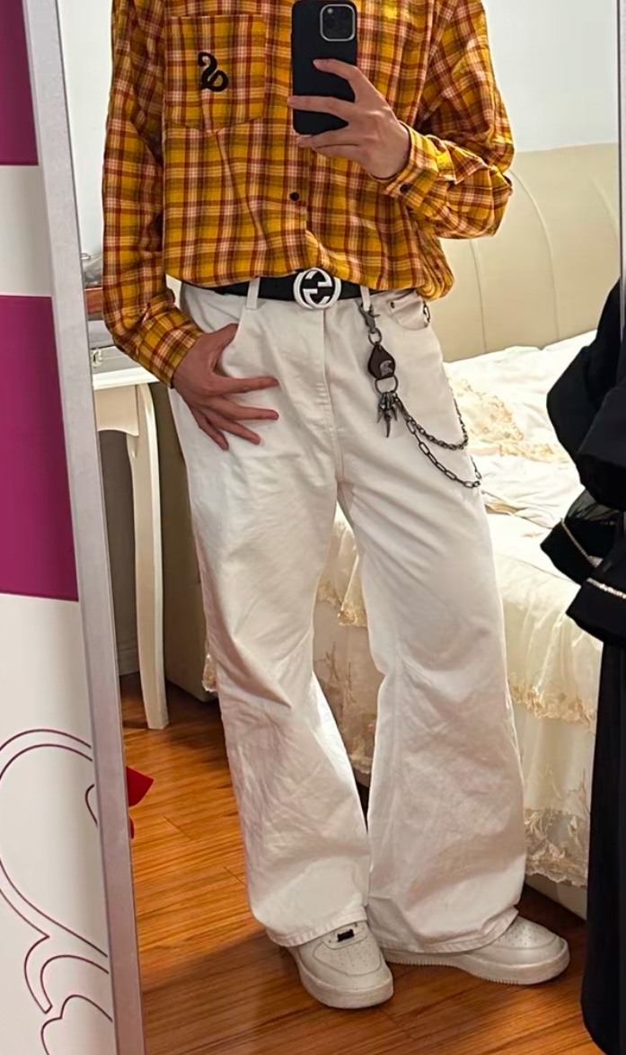 软而不塌的版型,裹在西装腰头不会皱成一团,系在毛衣外面也能撑得起轮廓,连裤装的松弛感都能被它“拎”出精致度~ 重点夸这两个扣头!