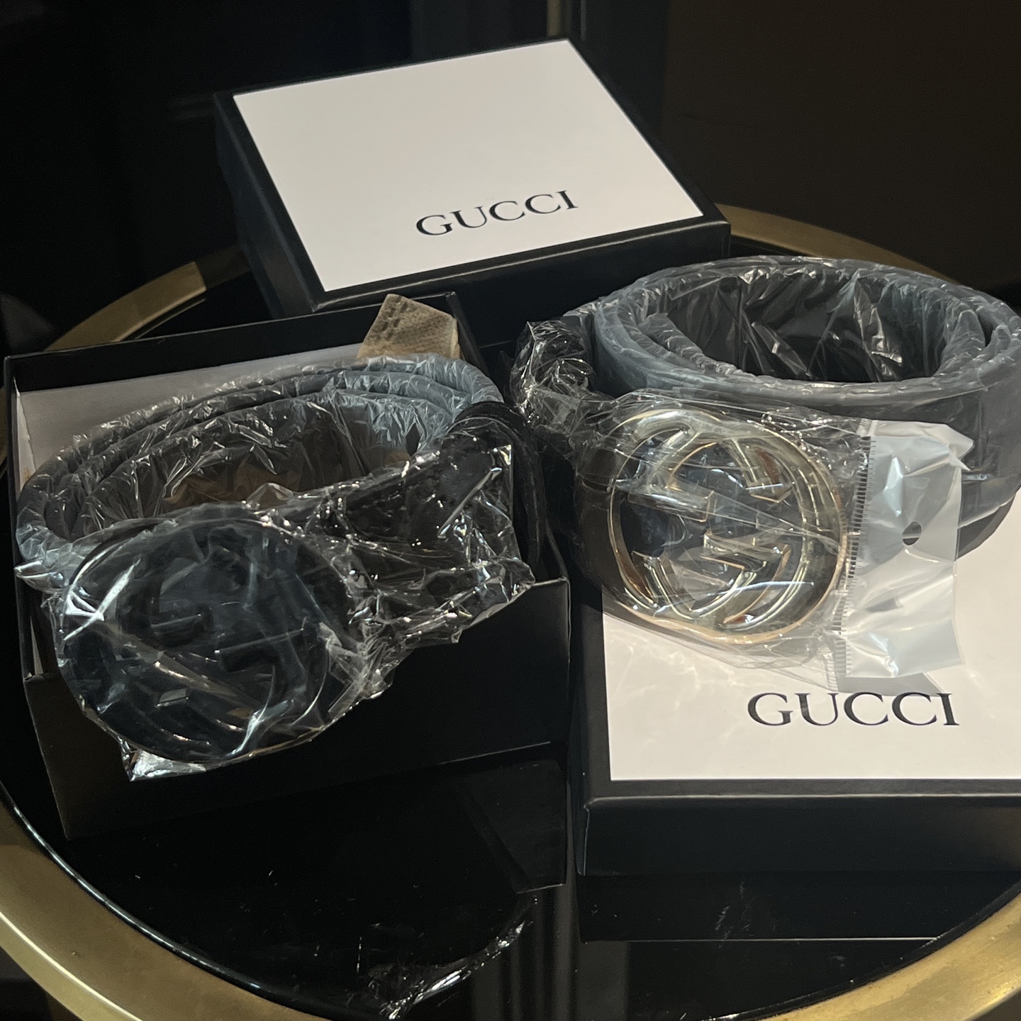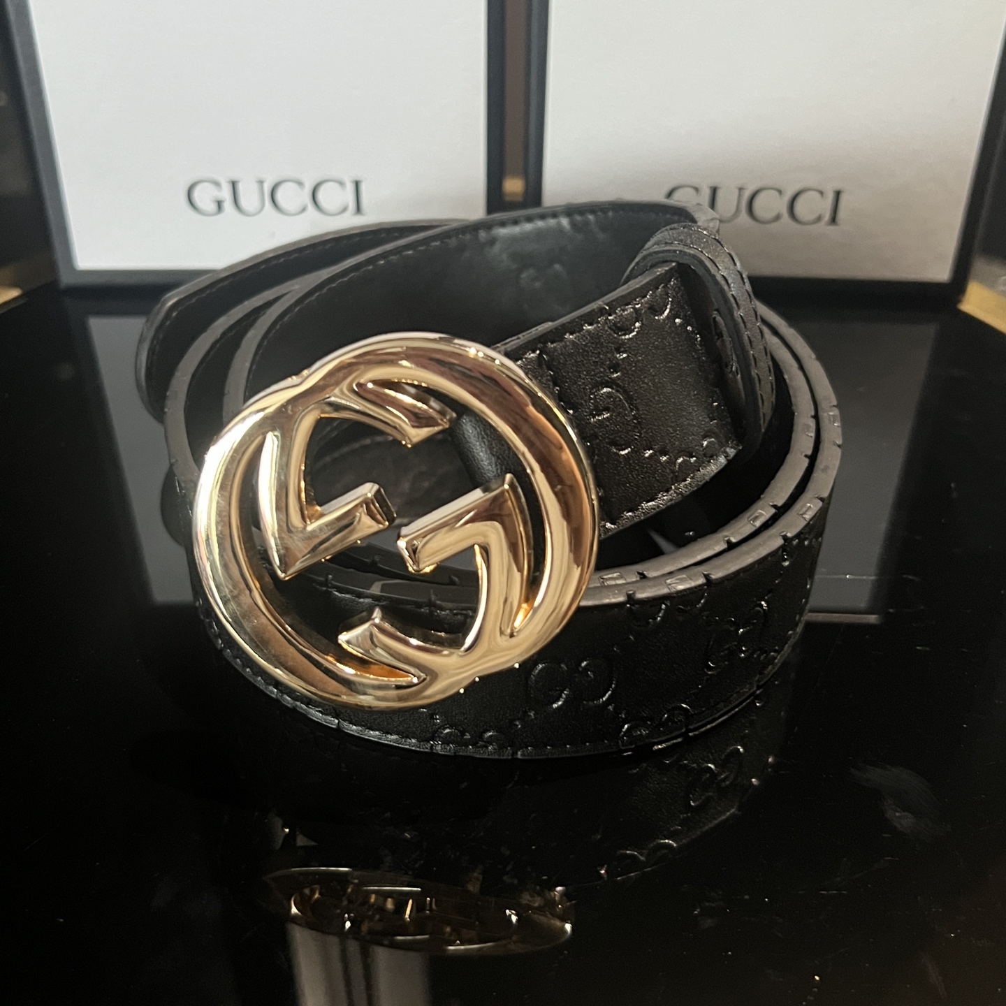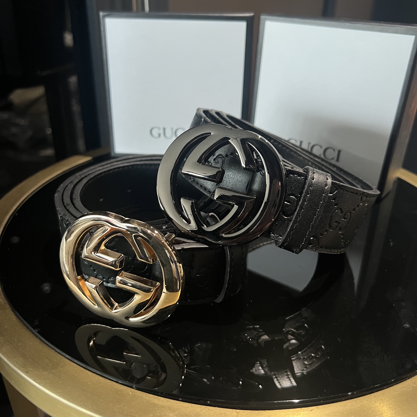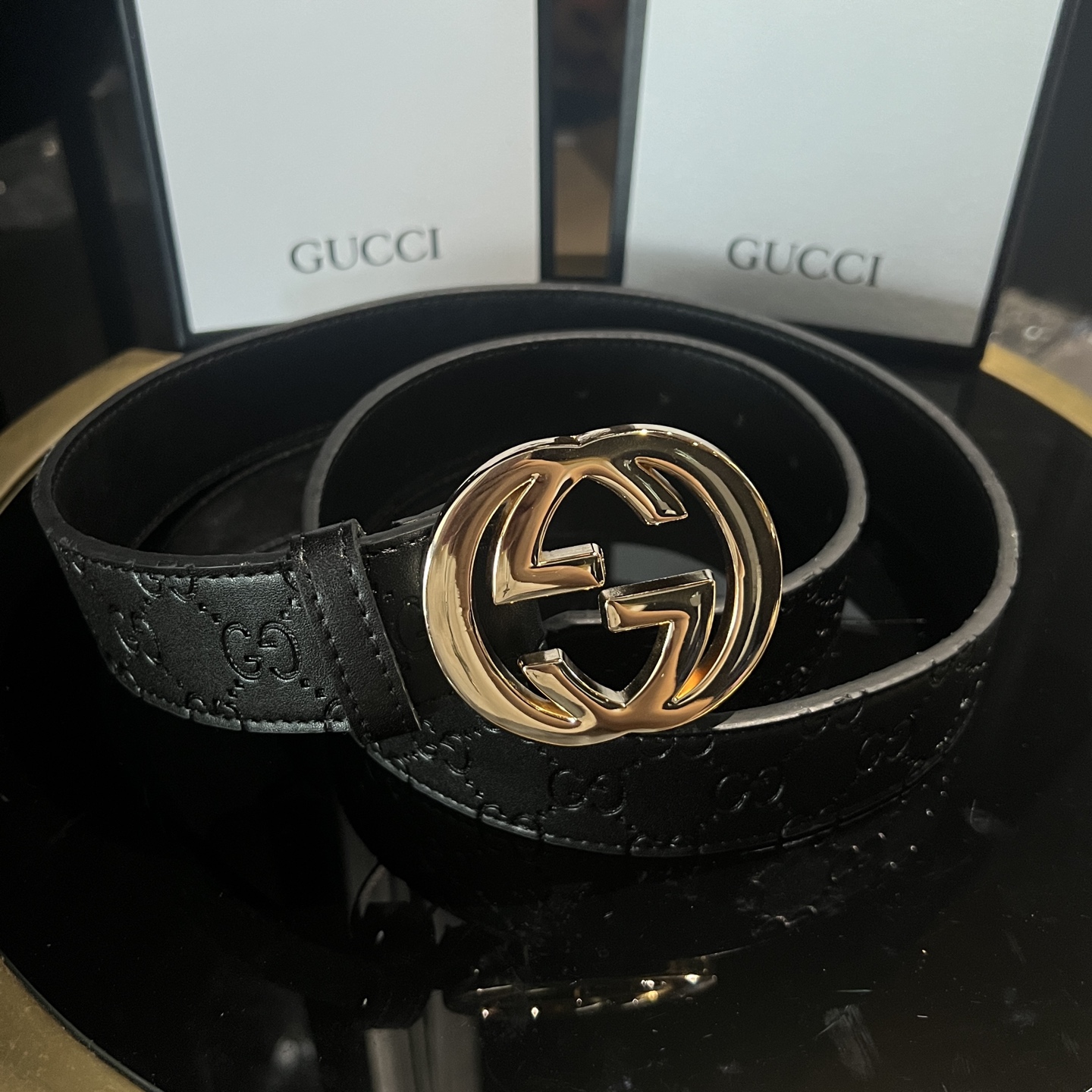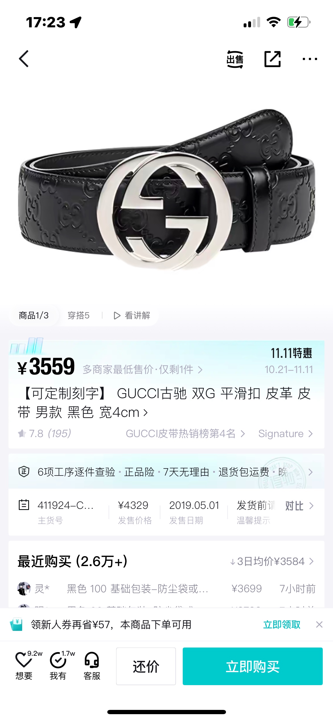 扣头的双G互扣设计是立体浮雕的,不是那种轻飘飘的平面款,拿在手里能摸到沉甸甸的质感,细节处全是大牌的底气~ 腰带内侧的刻印也很戳我——