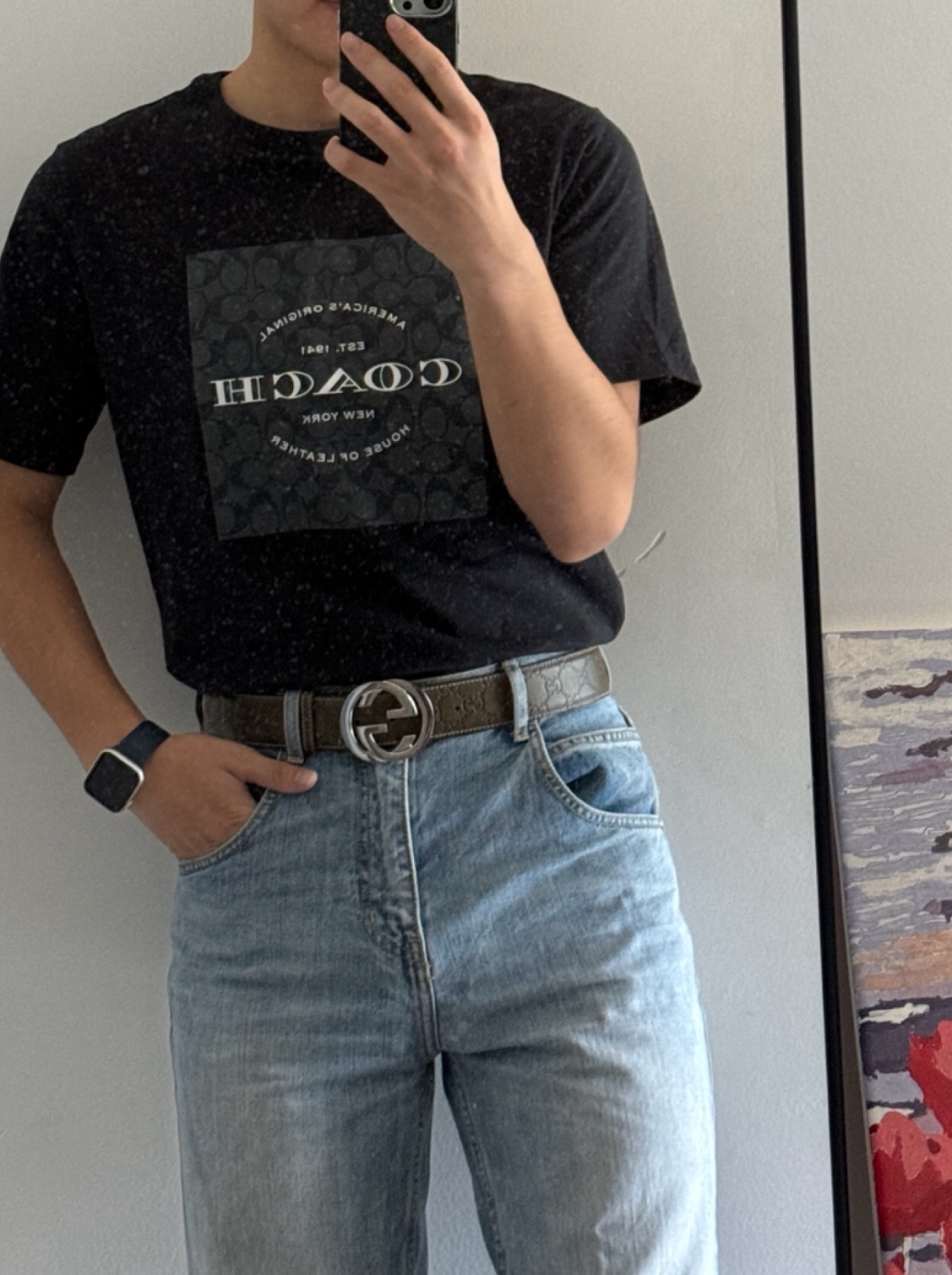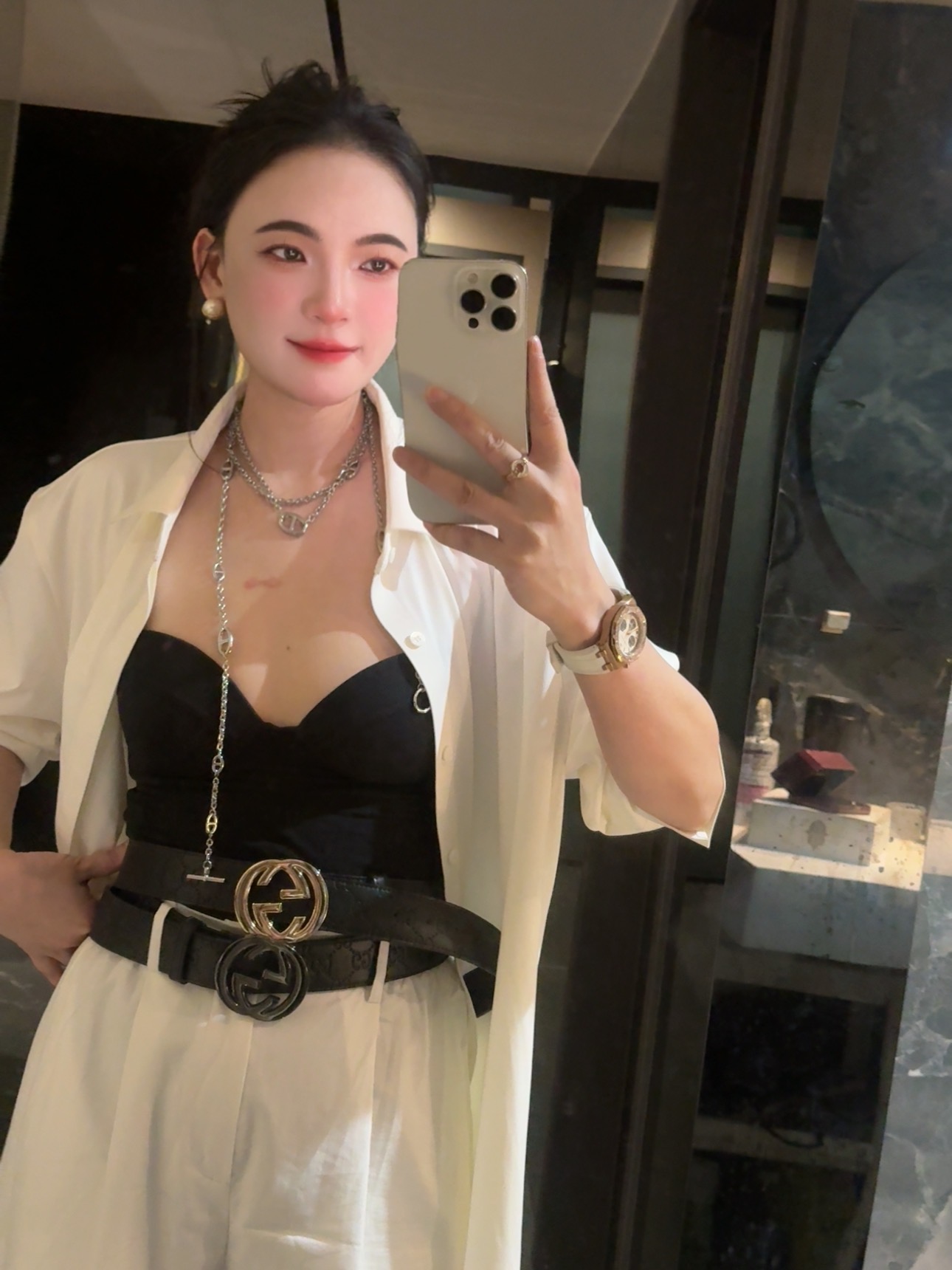 最牛平替!配礼盒🎁 这条腰带一到手,直接把我秋冬穿搭的“贵气阈值”拉满了黑底上若隐若现的暗纹双G,低调得像在偷偷炫耀质感✨
