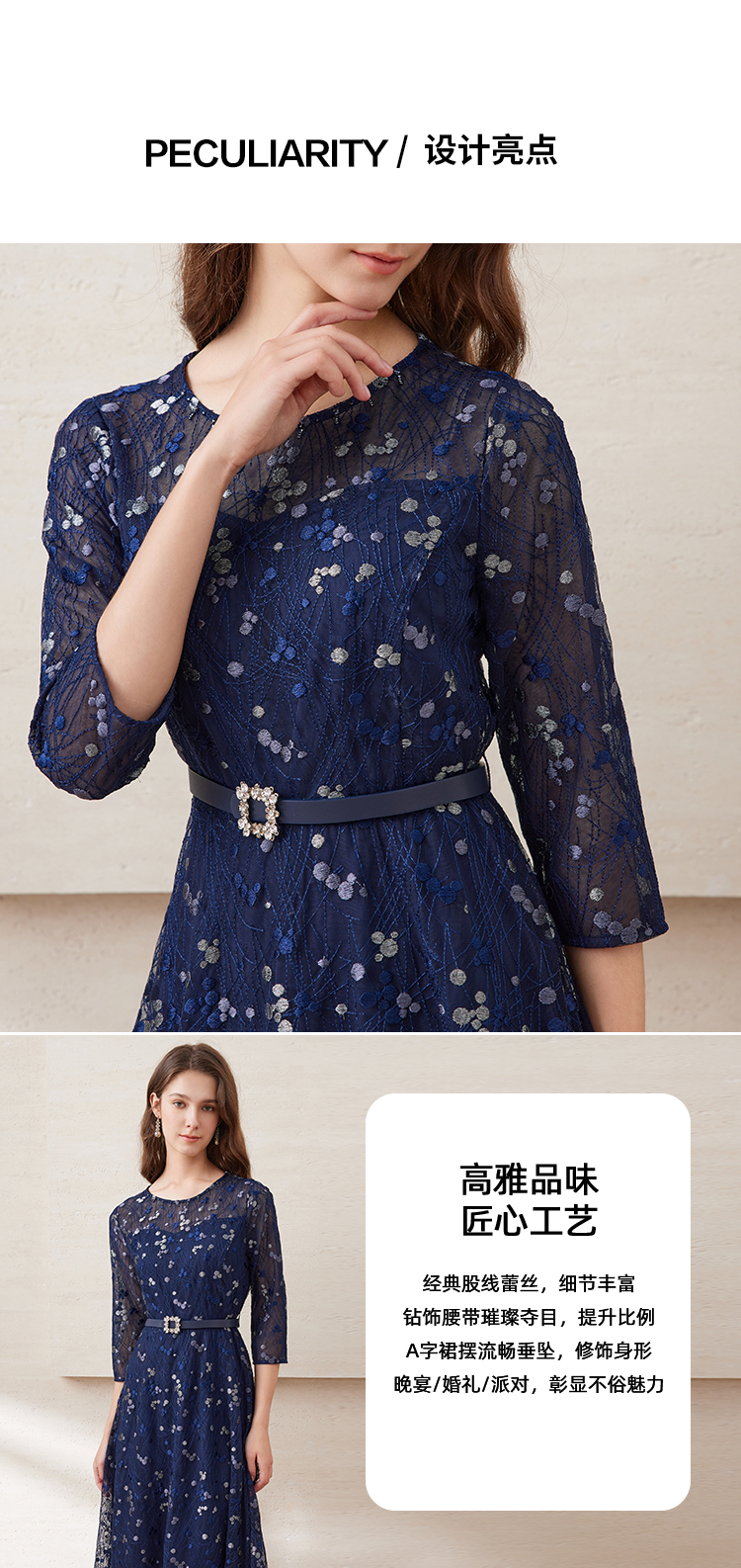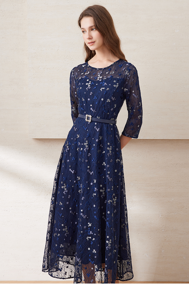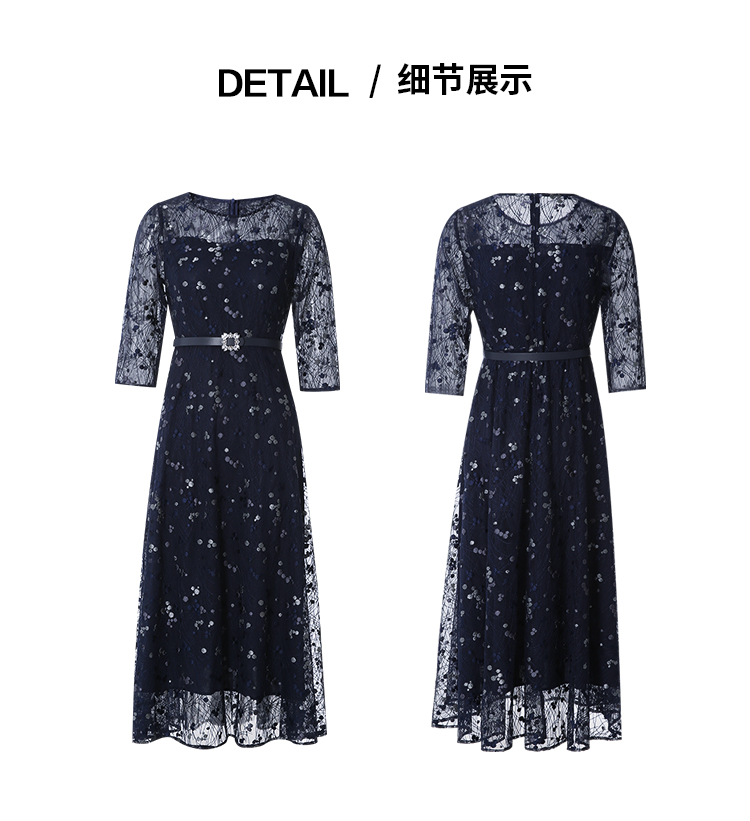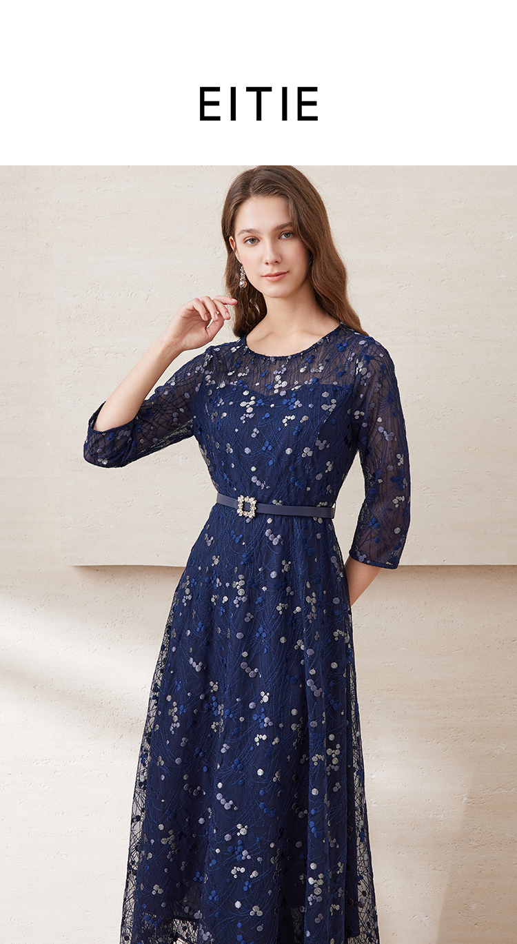 EITIE爱特爱夏季新款薄纱透视修身显瘦蕾丝礼服连衣裙7877509